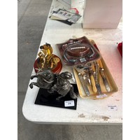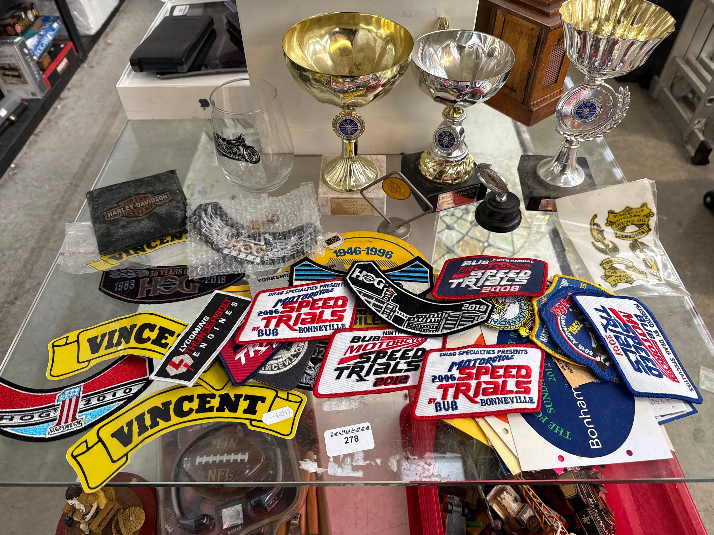 Lot inc fabric sports badges, sports trophies, etc