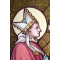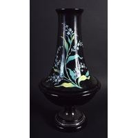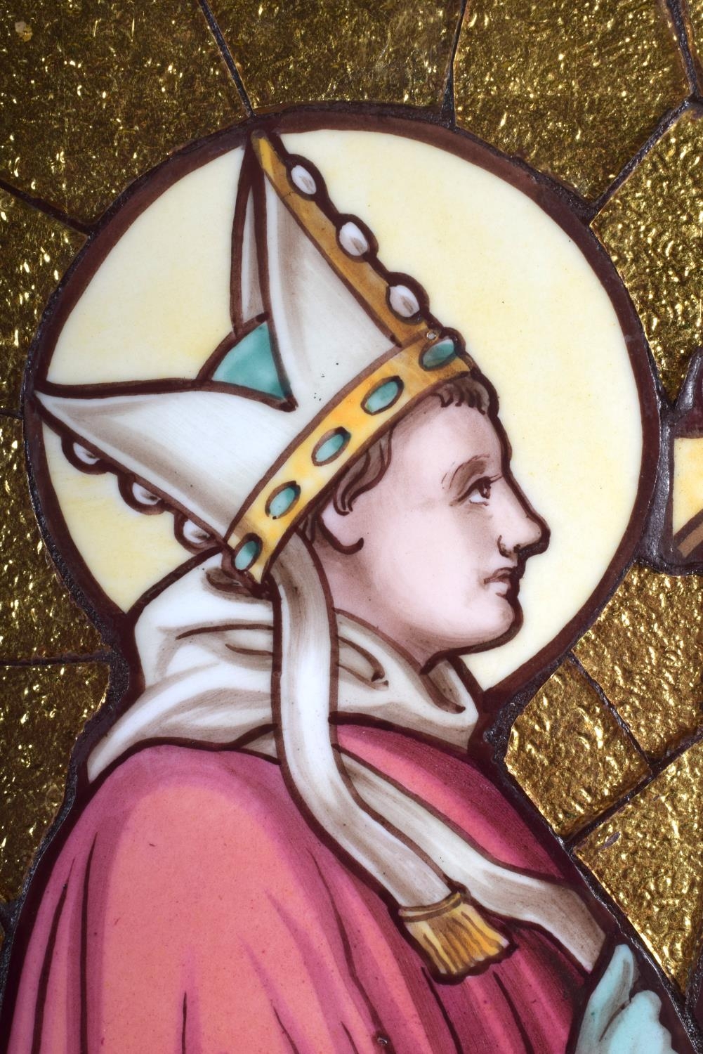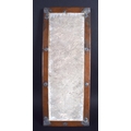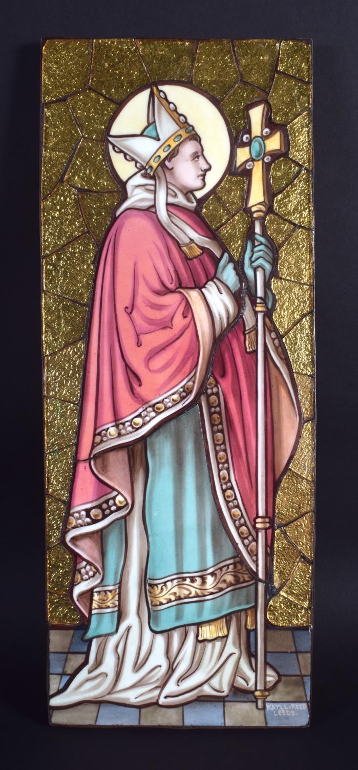 A VERY RARE ARTS AND CRAFTS ENAMELLED GLASS AND GOLD LEAF PLAQUE signed Kayl Lereed Leeds. 15 cm x 38 cm.