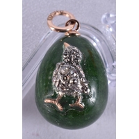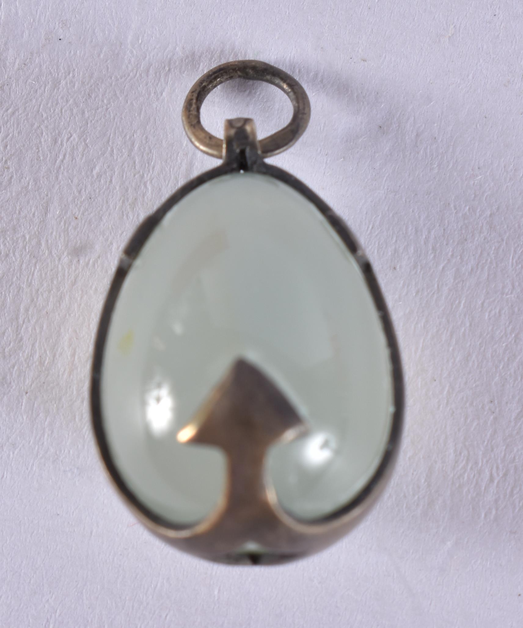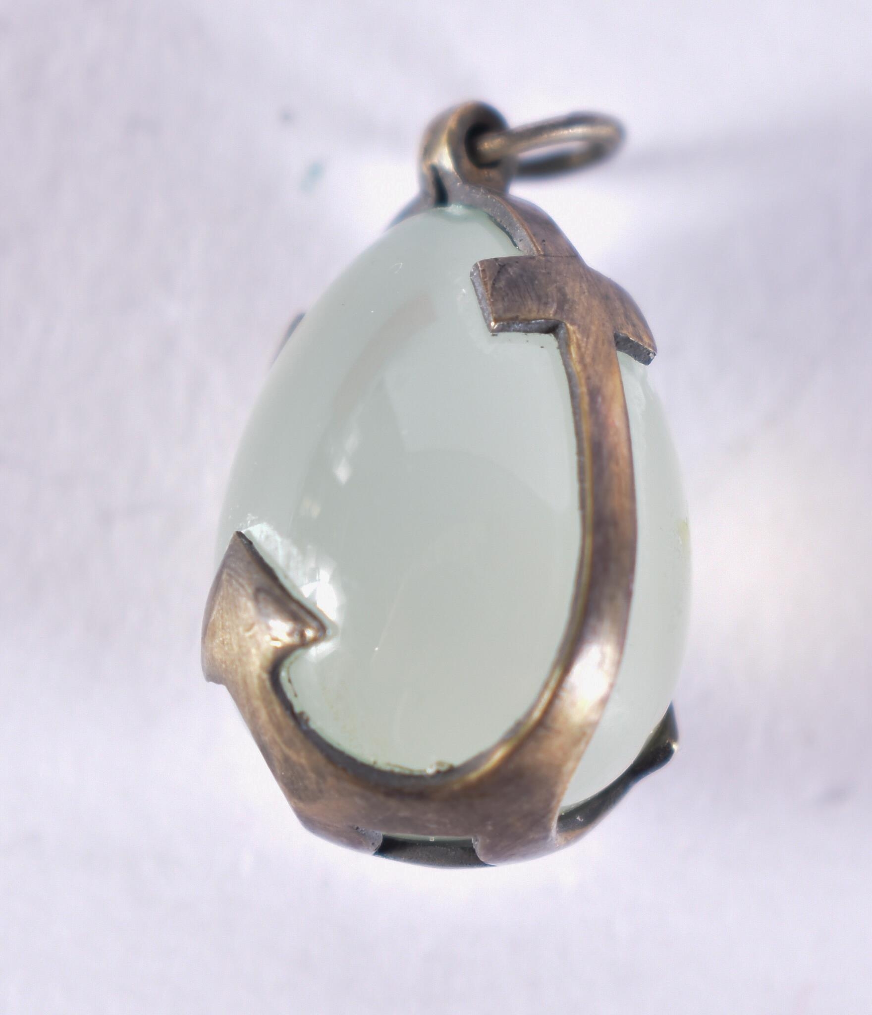 A Continental Silver Mounted Jade Egg Pendant. Stamped 84. 2.3cm x 1.3cm, weight 4.1g