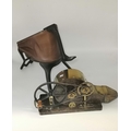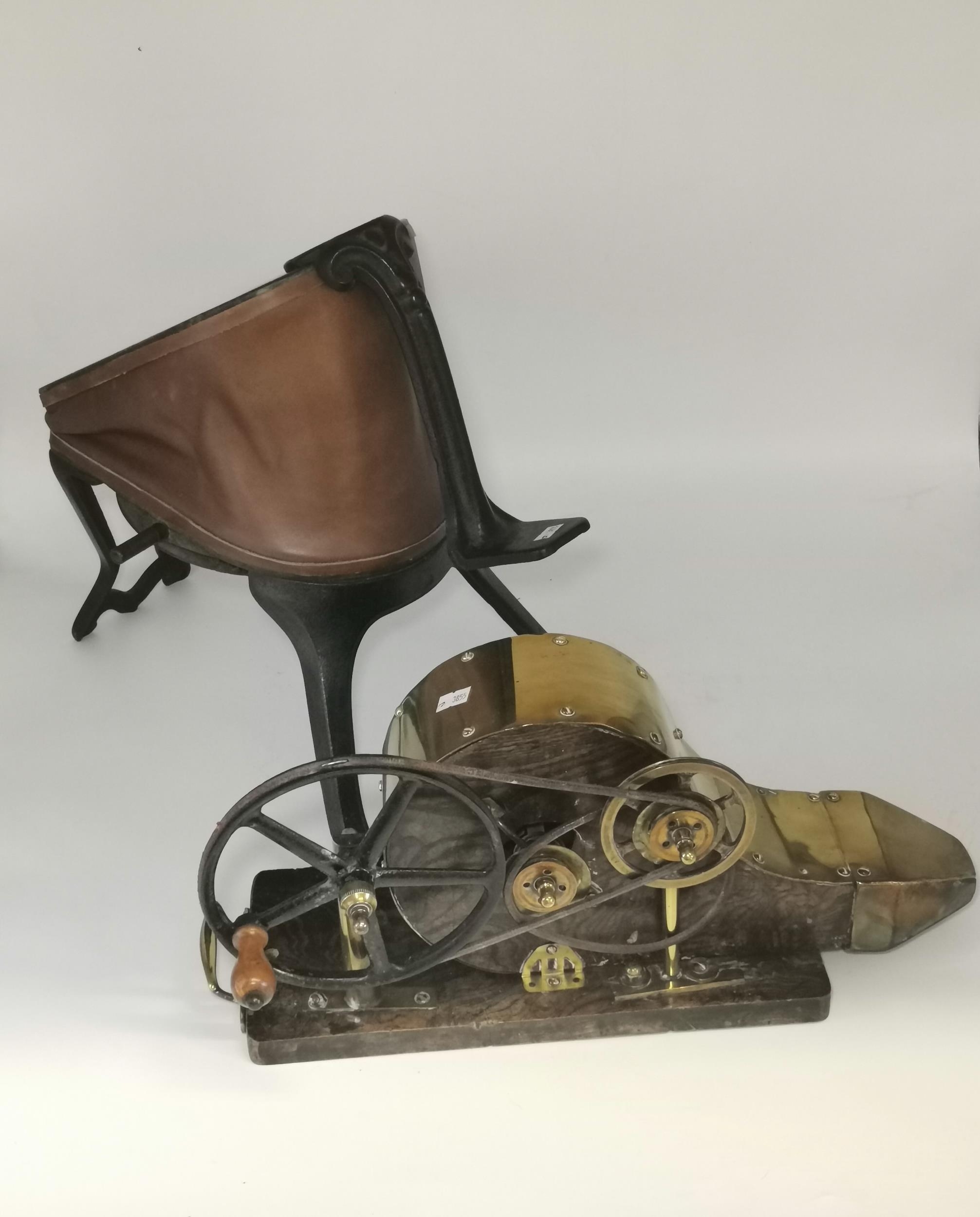 Antique vintage Dentist foot operated Gas Bellows plus an antique mechanical peat bellows made from Oak with brass and steel fittings