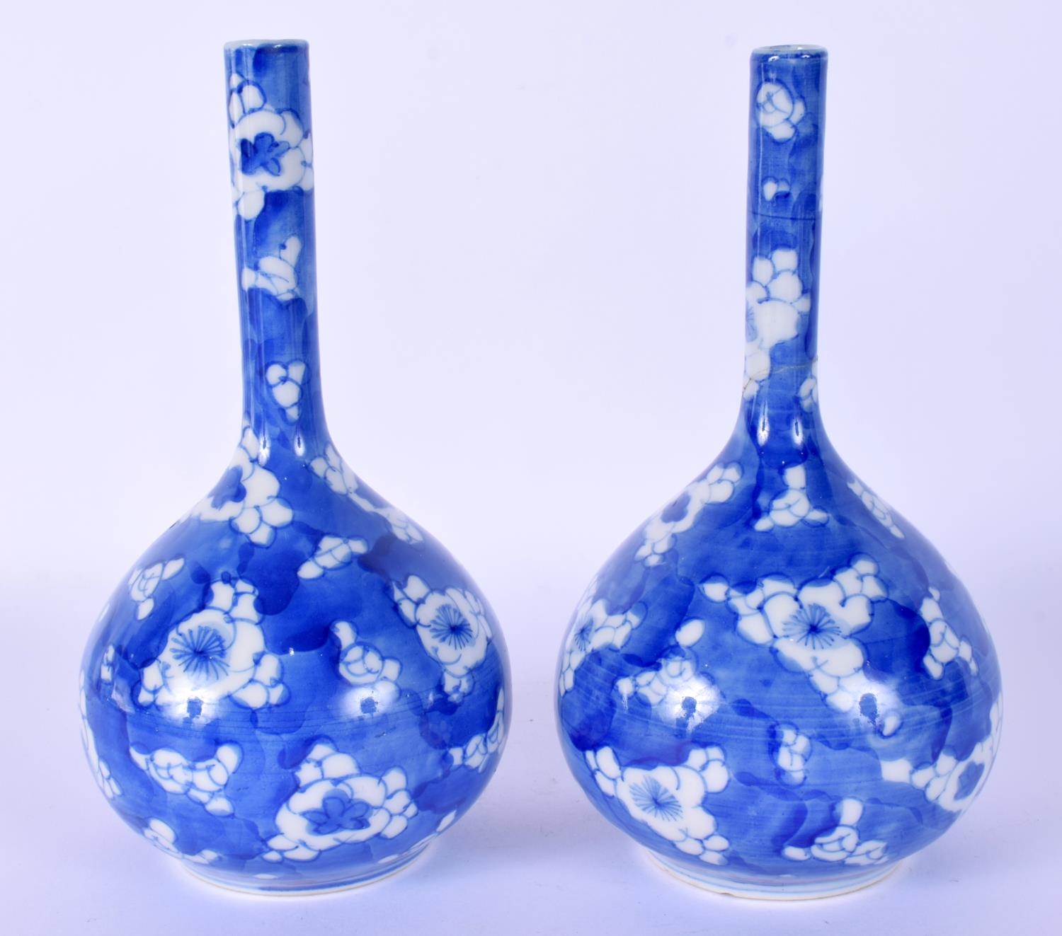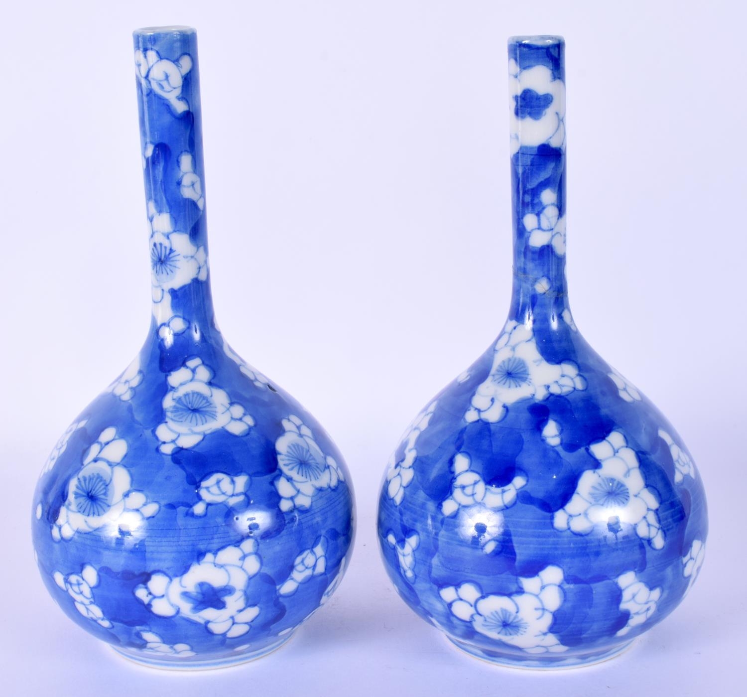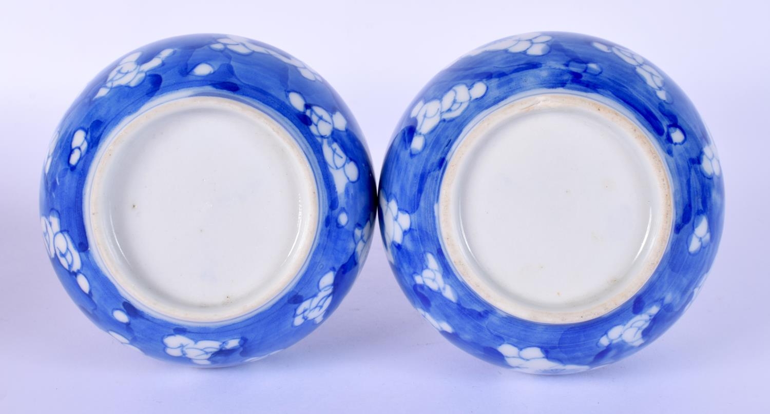 A PAIR OF LATE 19TH CENTURY JAPANESE MEIJI PERIOD BLUE AND WHITE VASES painted with flowers. 16.5 cm high.