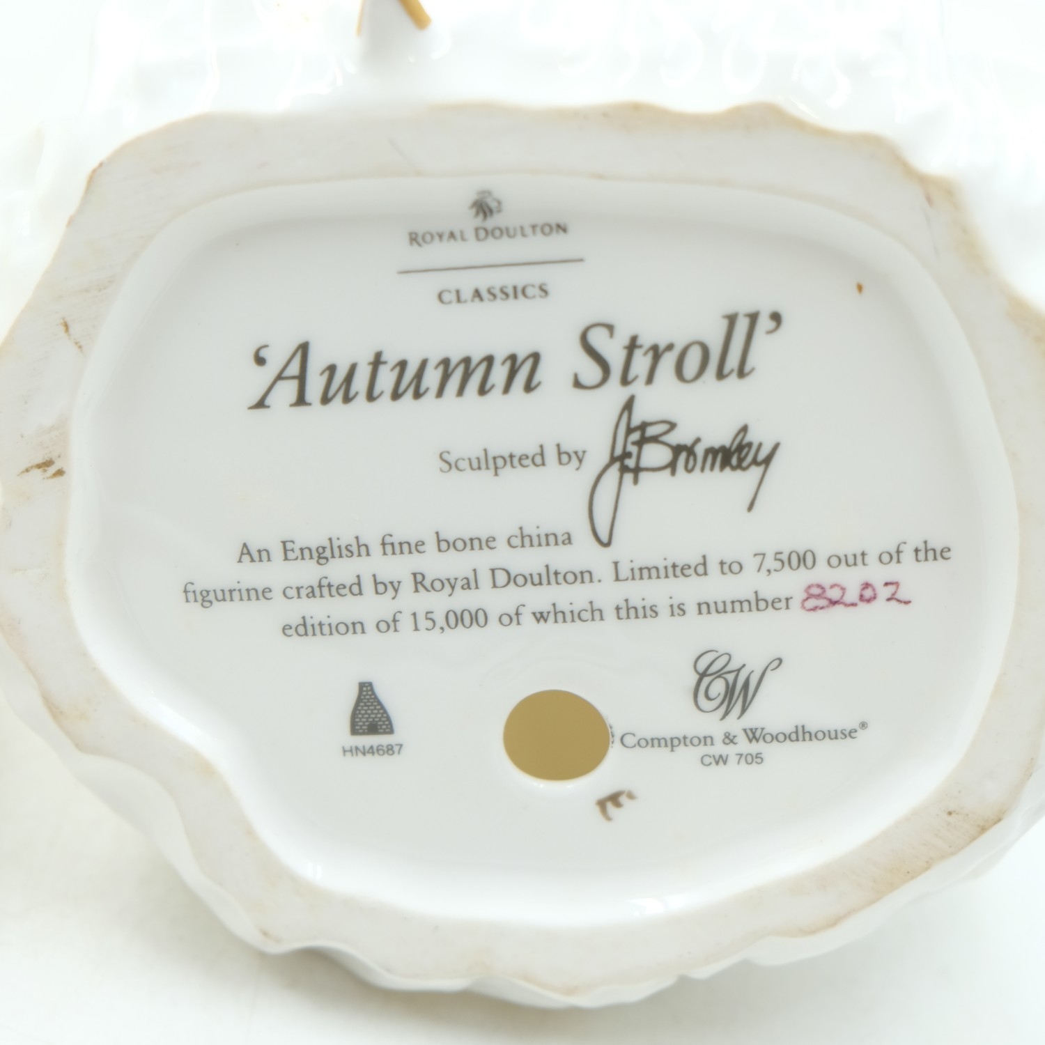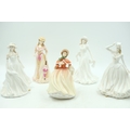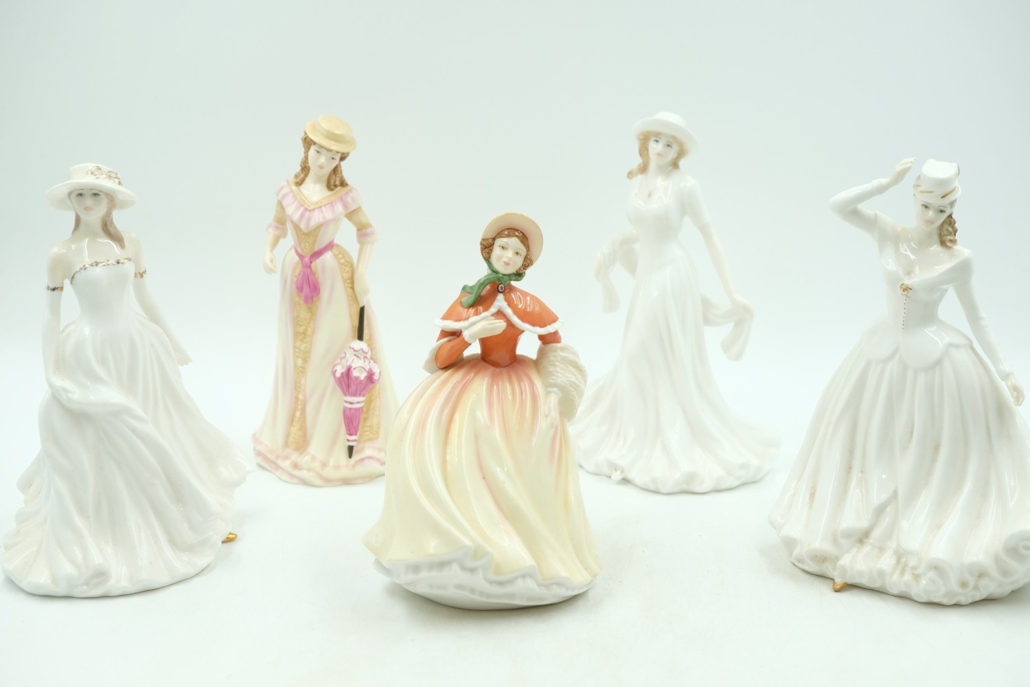 Five Royal Doulton figurines Autumn stroll, Summer, Spring, Easter Parade and Summer Breeze, largest H: 24 cm. UK P&P Group 3 (£35+VAT for the first lot and £10+VAT for subsequent lots)