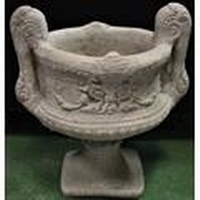 LARGE DECORATIVE 2 HANDLED STONEWORK URN (IN 2 PIECES)