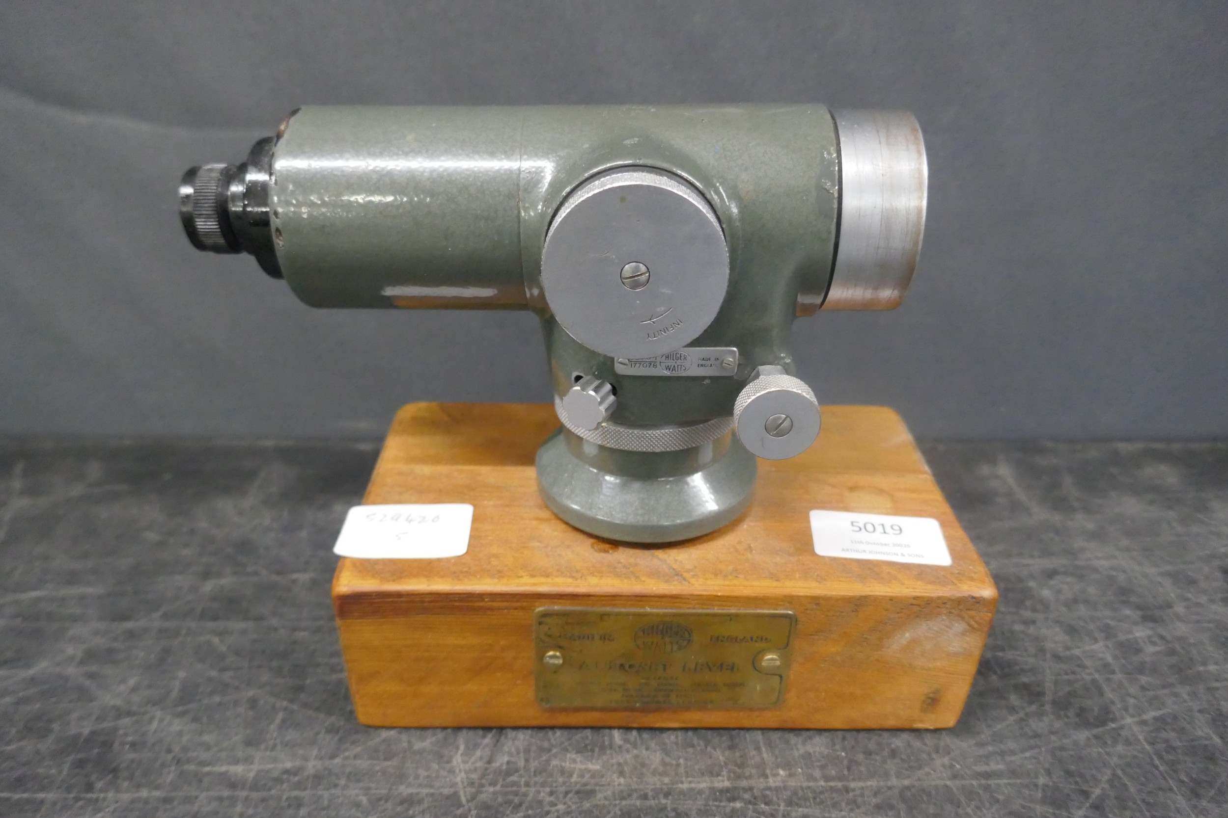 A Higher and Watts auto level on display stand