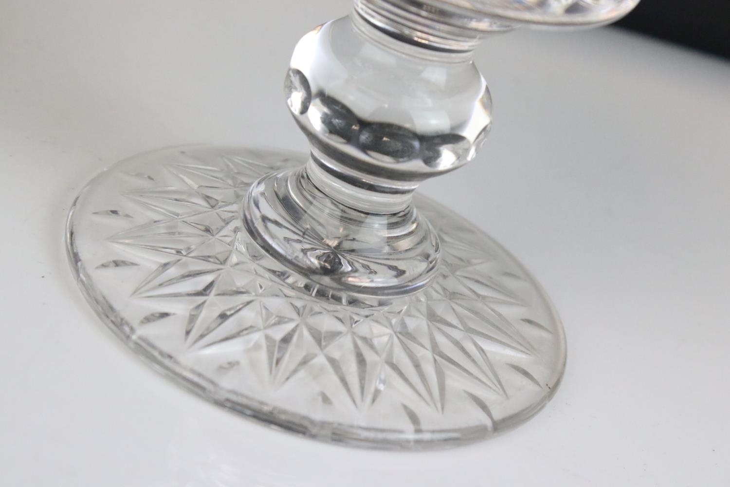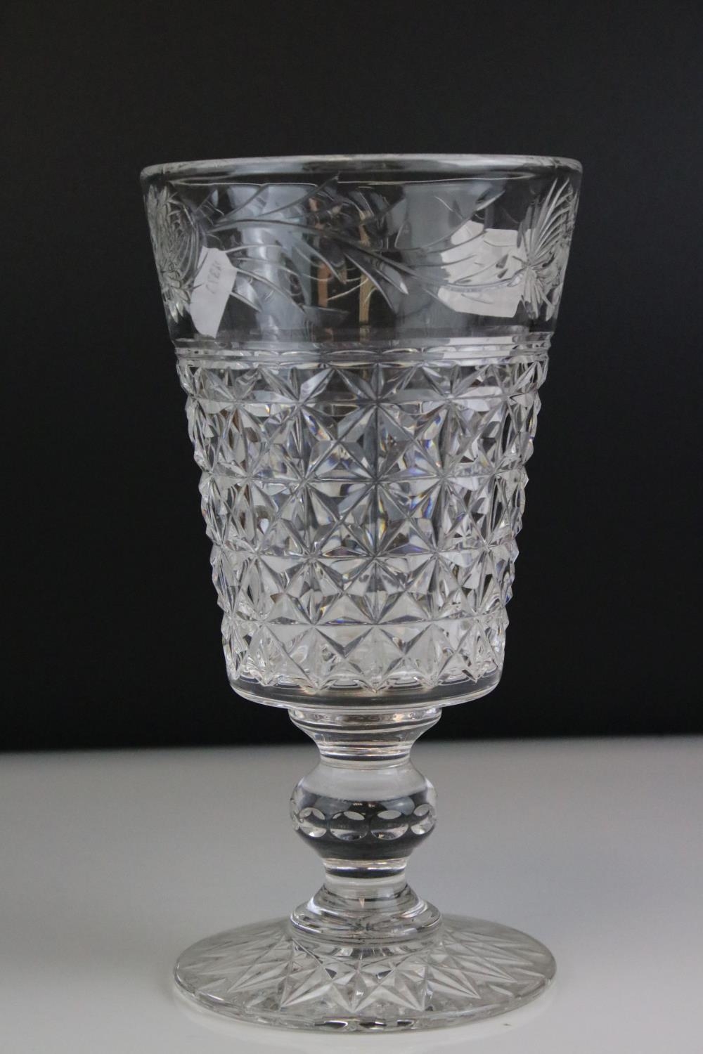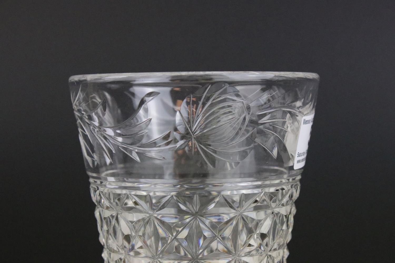 A Stuart Crystal cut glass trumpet vase with floral decoration to rim.