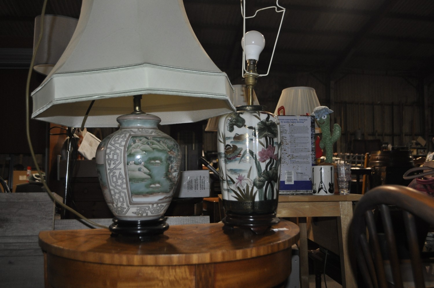 TWO ORIENTAL TABLE LAMPS, ONE WITH A SHADE