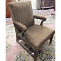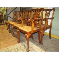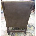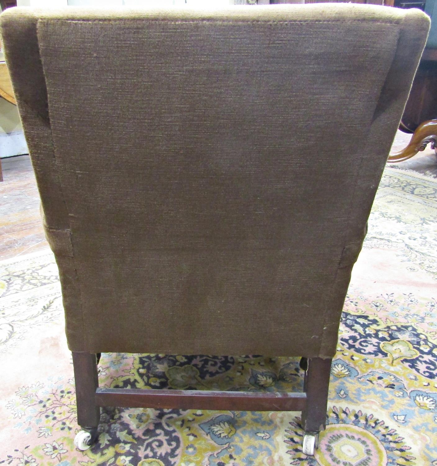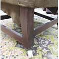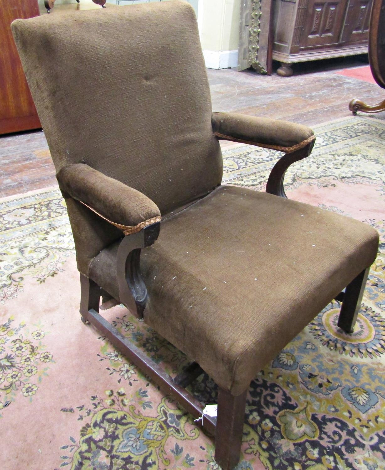 A late 18th century Gainsborough style open elbow chair with carved and moulded detail, raised on square cut supports and rails