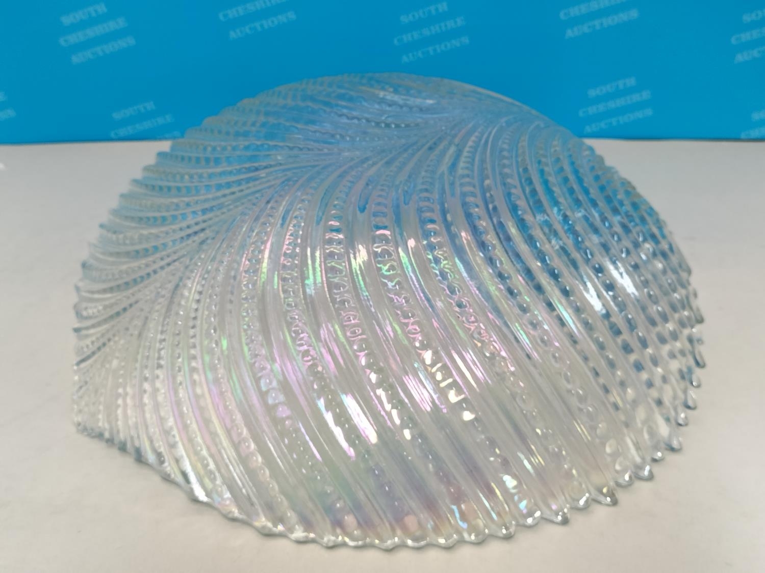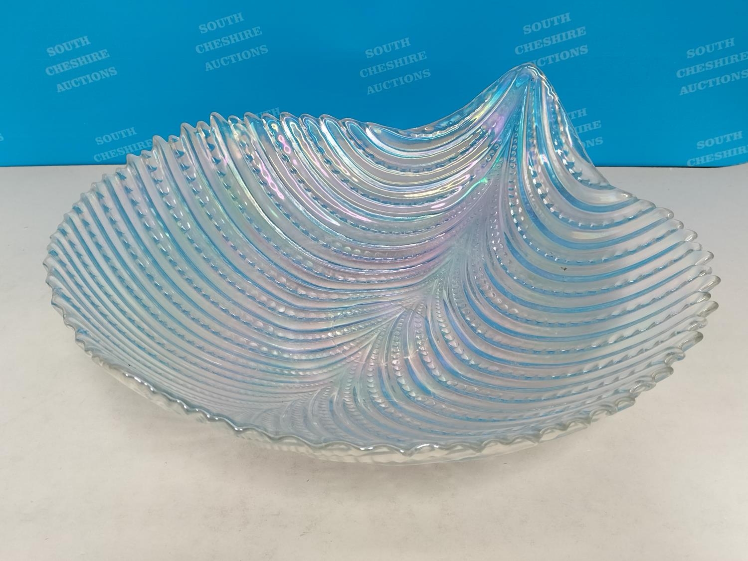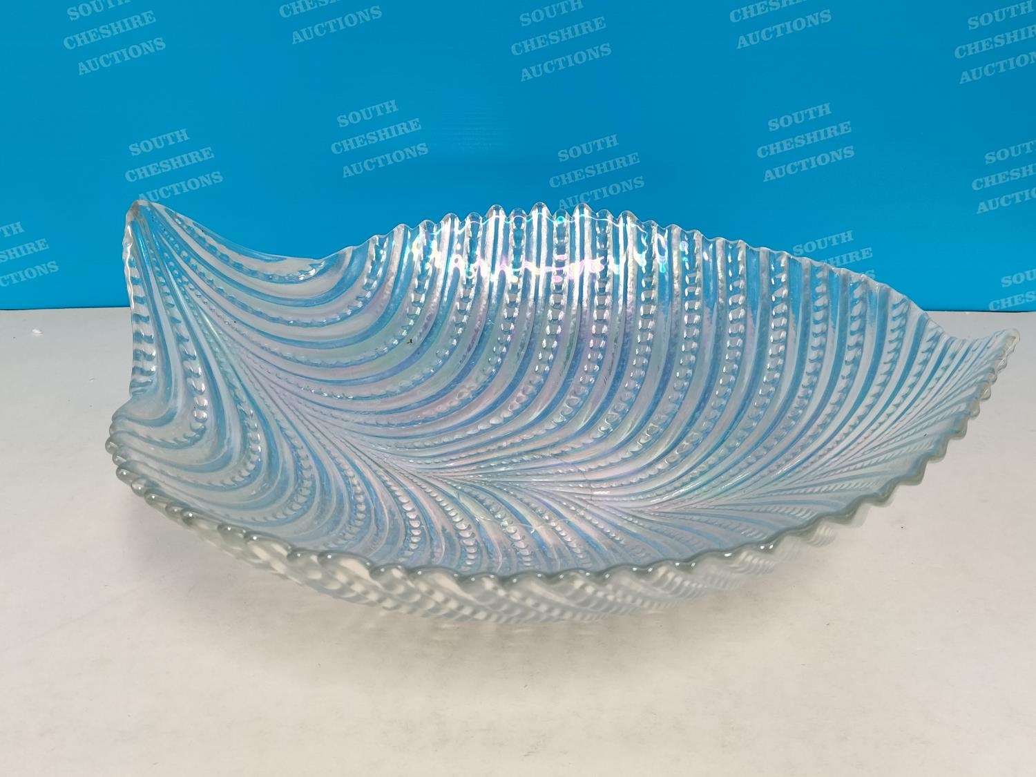 Iridescent Glass Leaf Shaped Centrepiece Bowl. 13cm High, 38cm x 37cm.