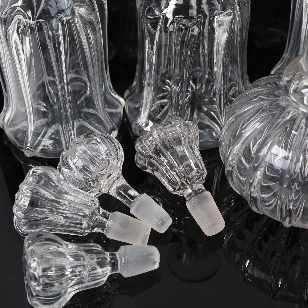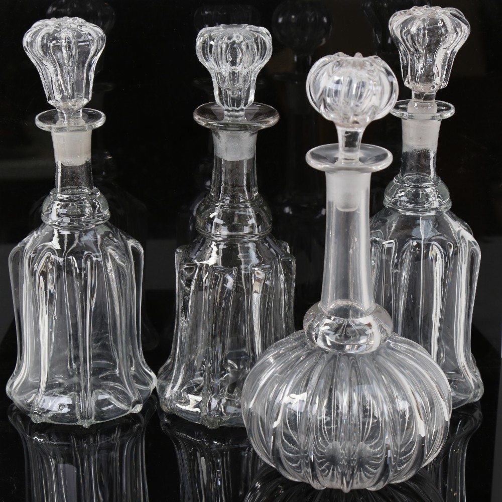4 glass decanters and stoppers, including mallet design, height 30cm (4)