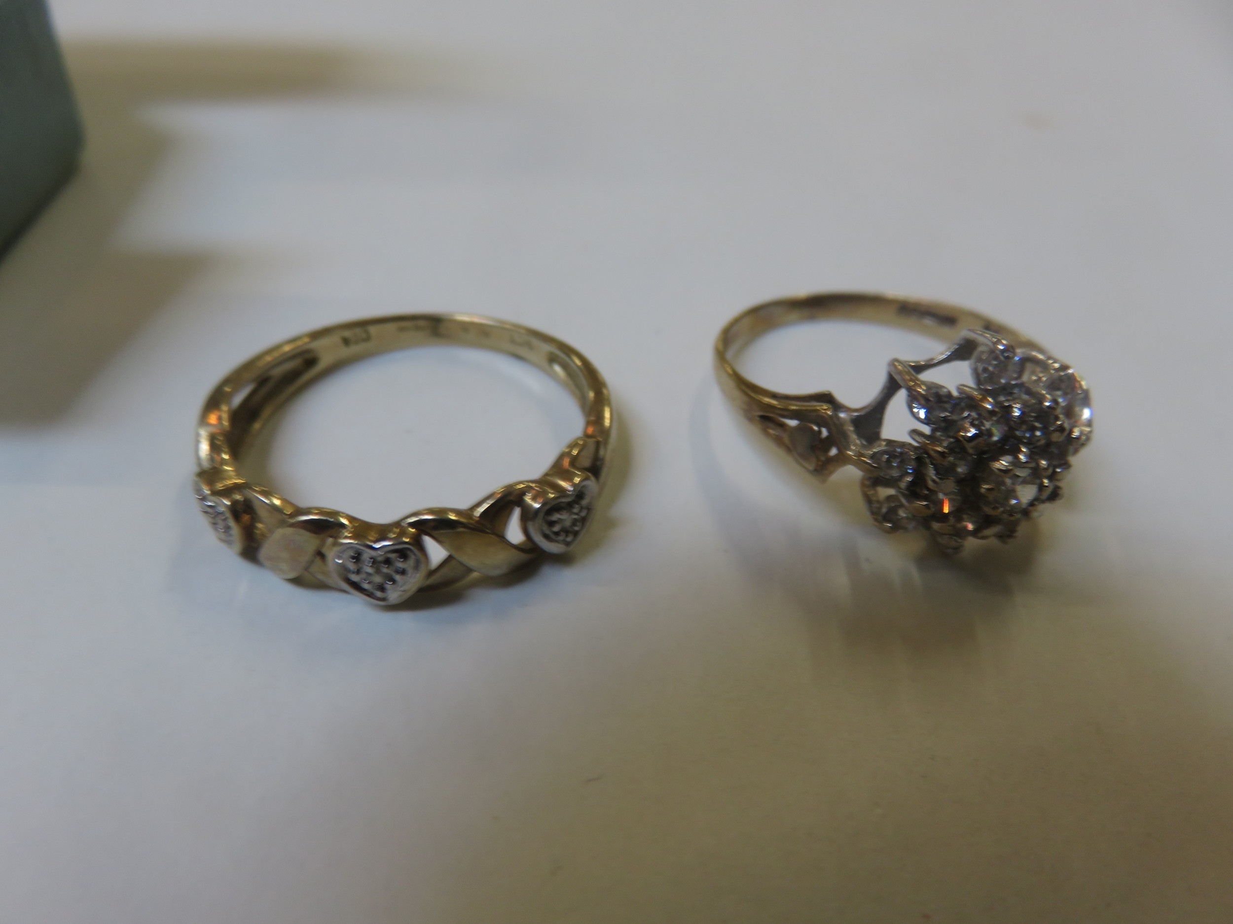Two Dress Rings - 9ct Gold, Marcasite and White Stone - 3.8g