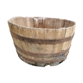 Late 19th C. wooden and metal bound planter of large proportions {63 cm H x 109 cm Dia.}.