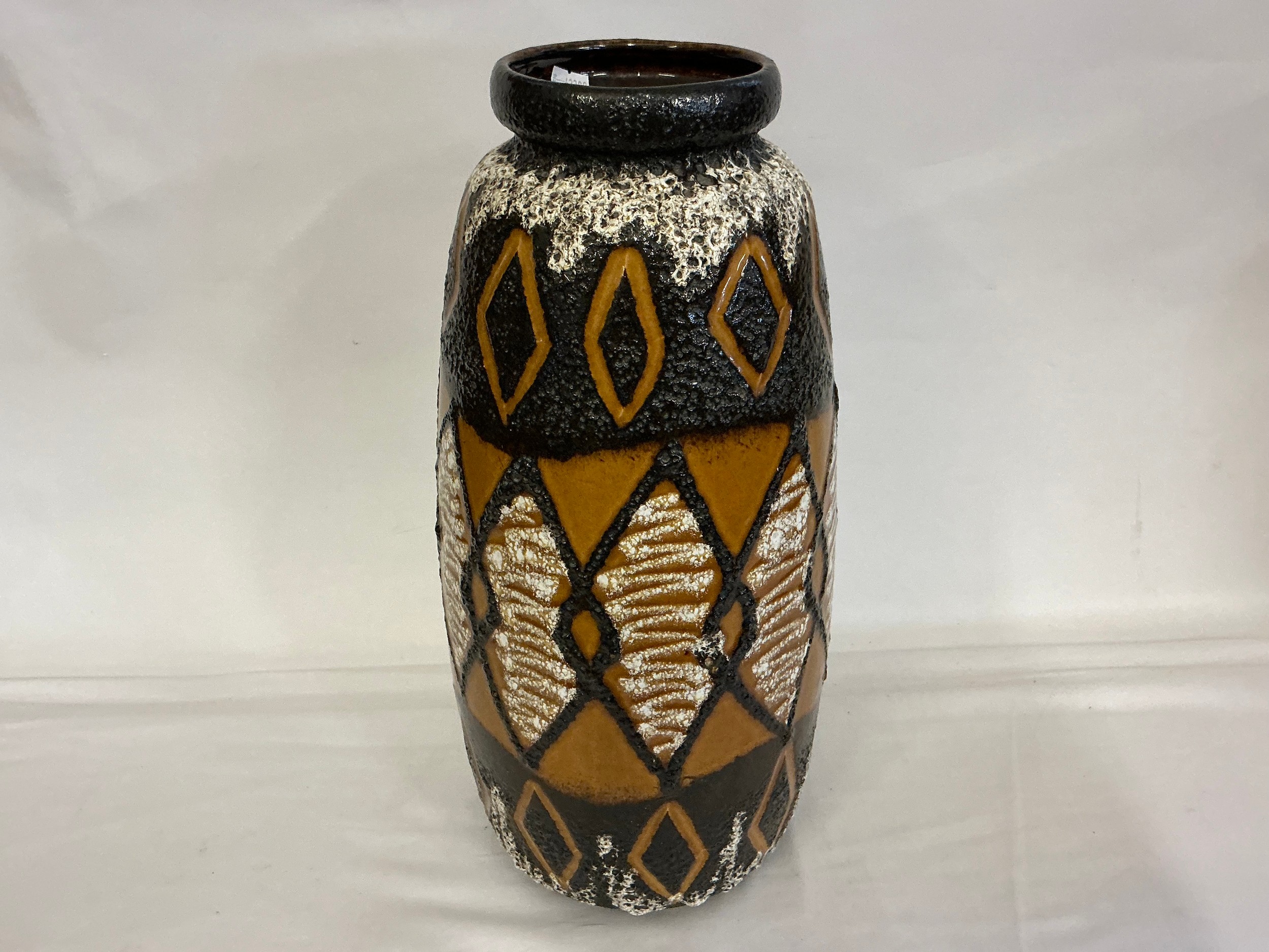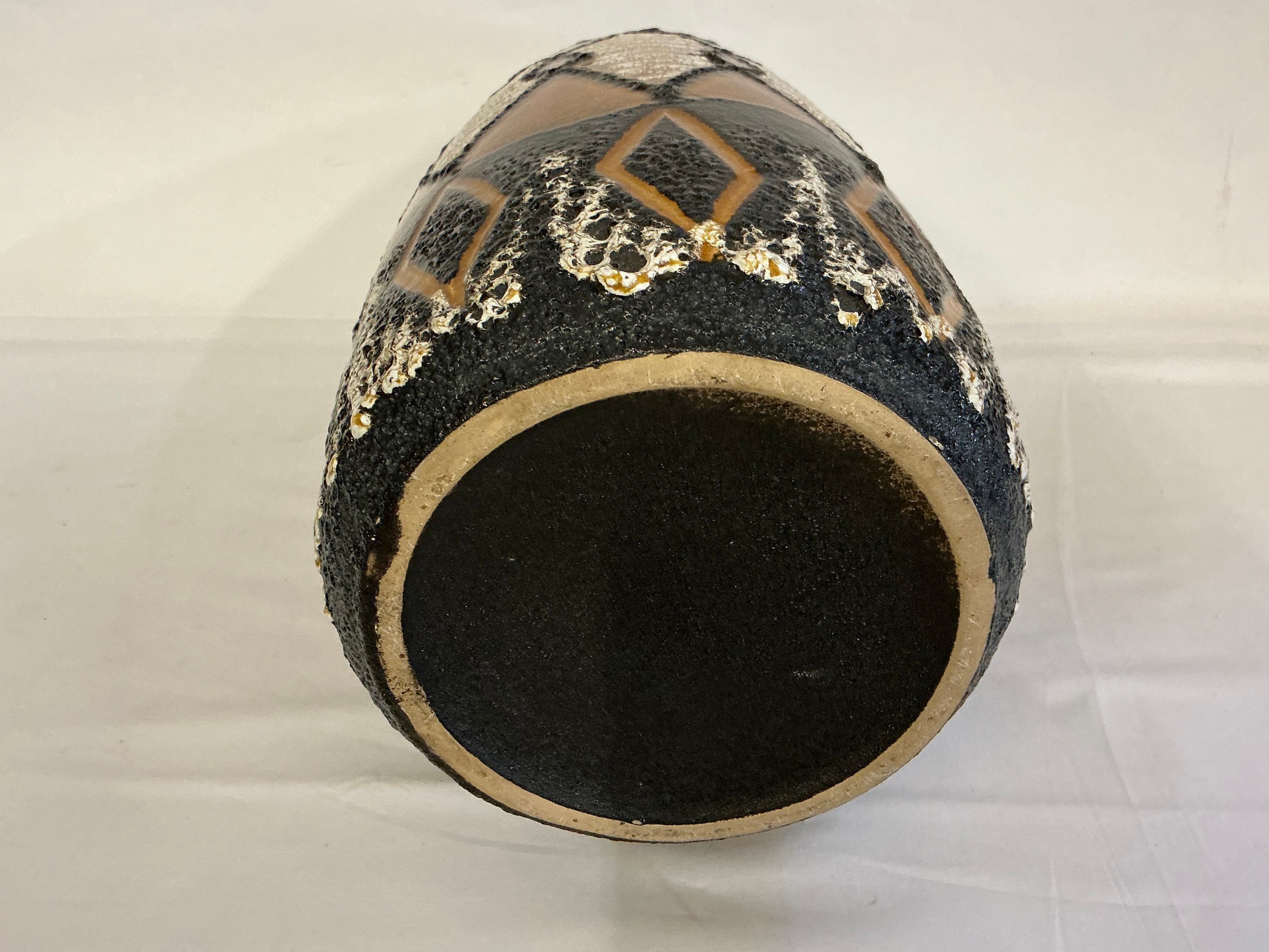A Fat Lava German Lava Glazed African Stool pattern Vase. Measuring: 48cms High.