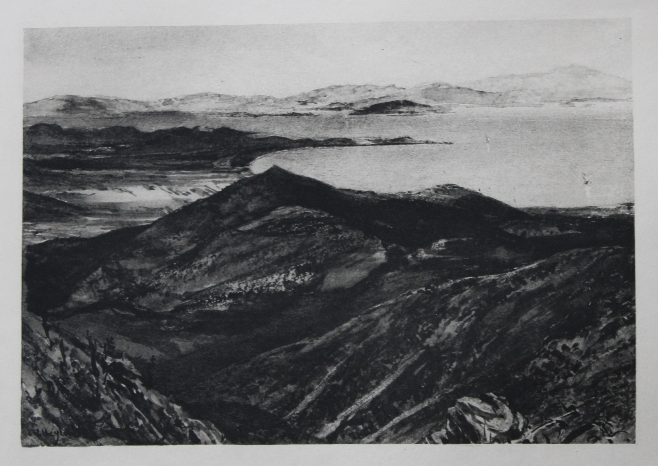 John Fulleylove 1897 - Etching of Bay of Marathon. This superb etching is from Pictures of Classic Greek Landscapes and Architecture by John Fulleylove RI. Published by JM Dent & Co, London 1897.