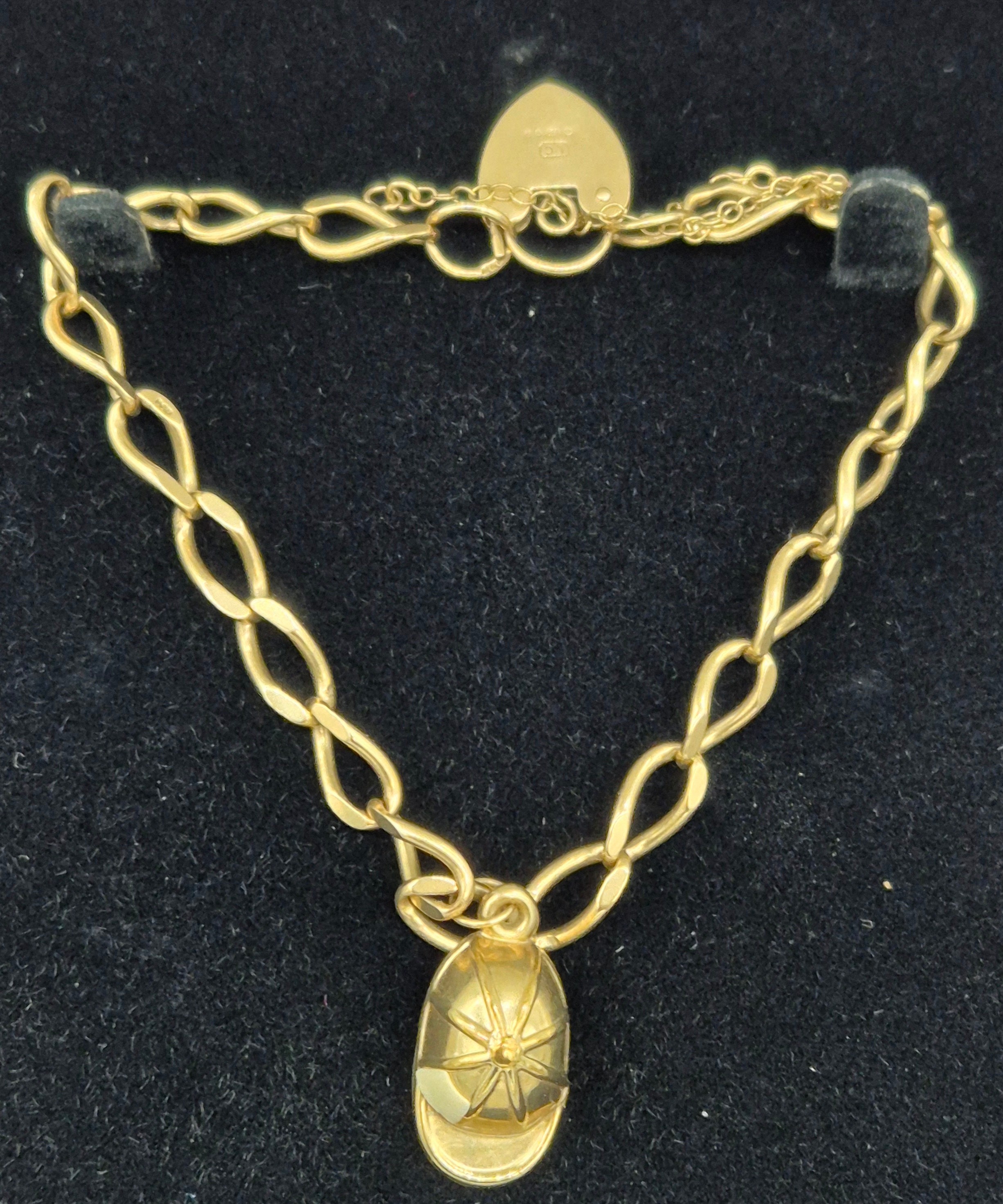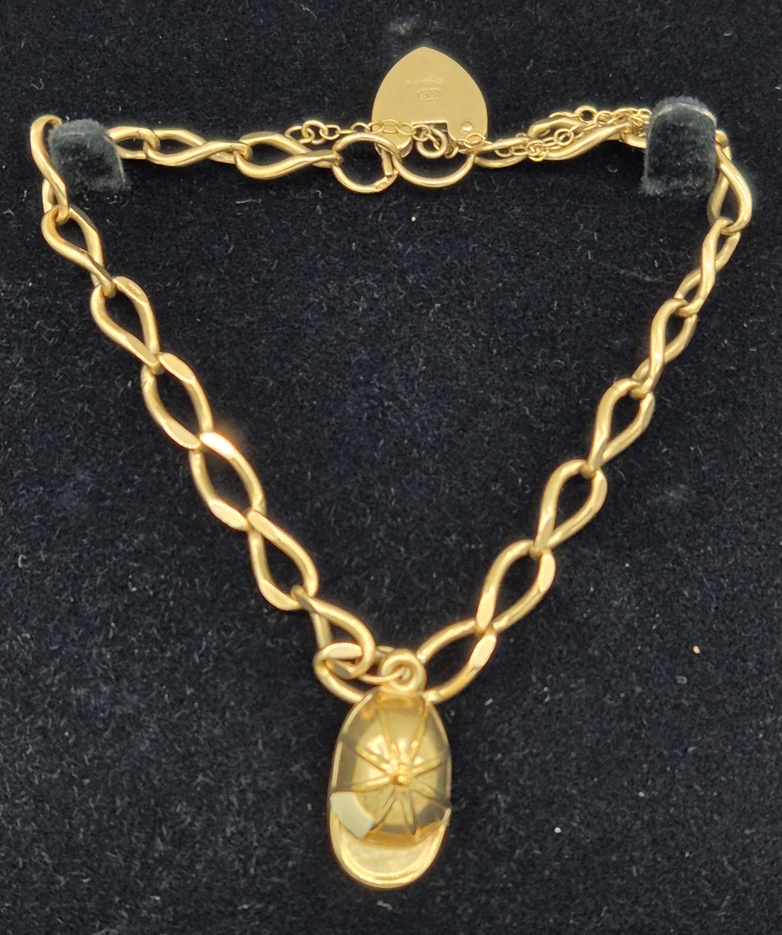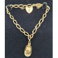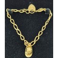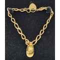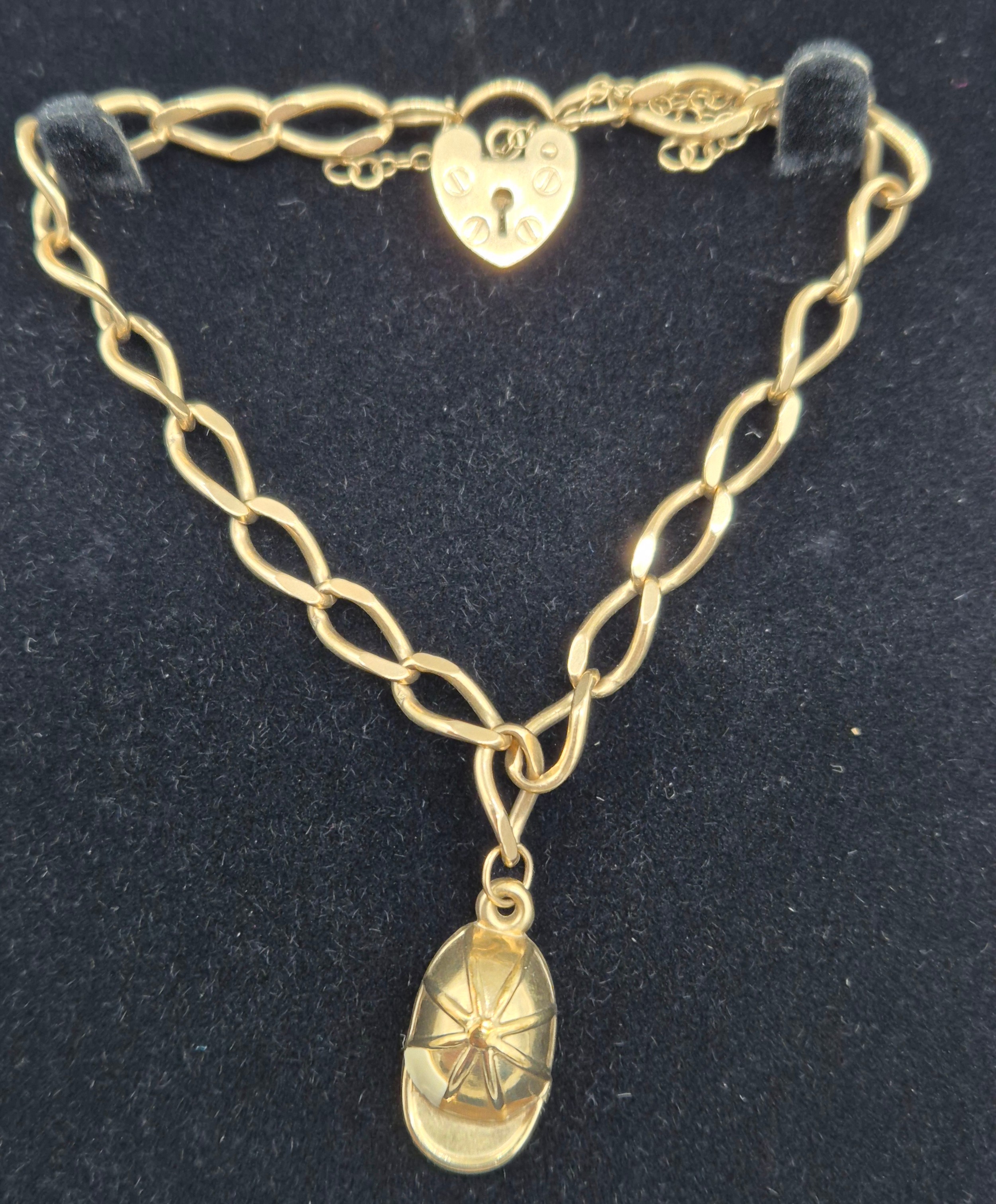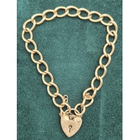 9ct yellow gold bracelet fitted with cap charm and heart lock. [9.08grams]