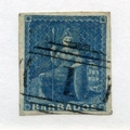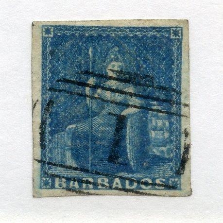 BARBADOS 1852 - 55 1d blue 4 margined vfu. SG 3. Cat £190.