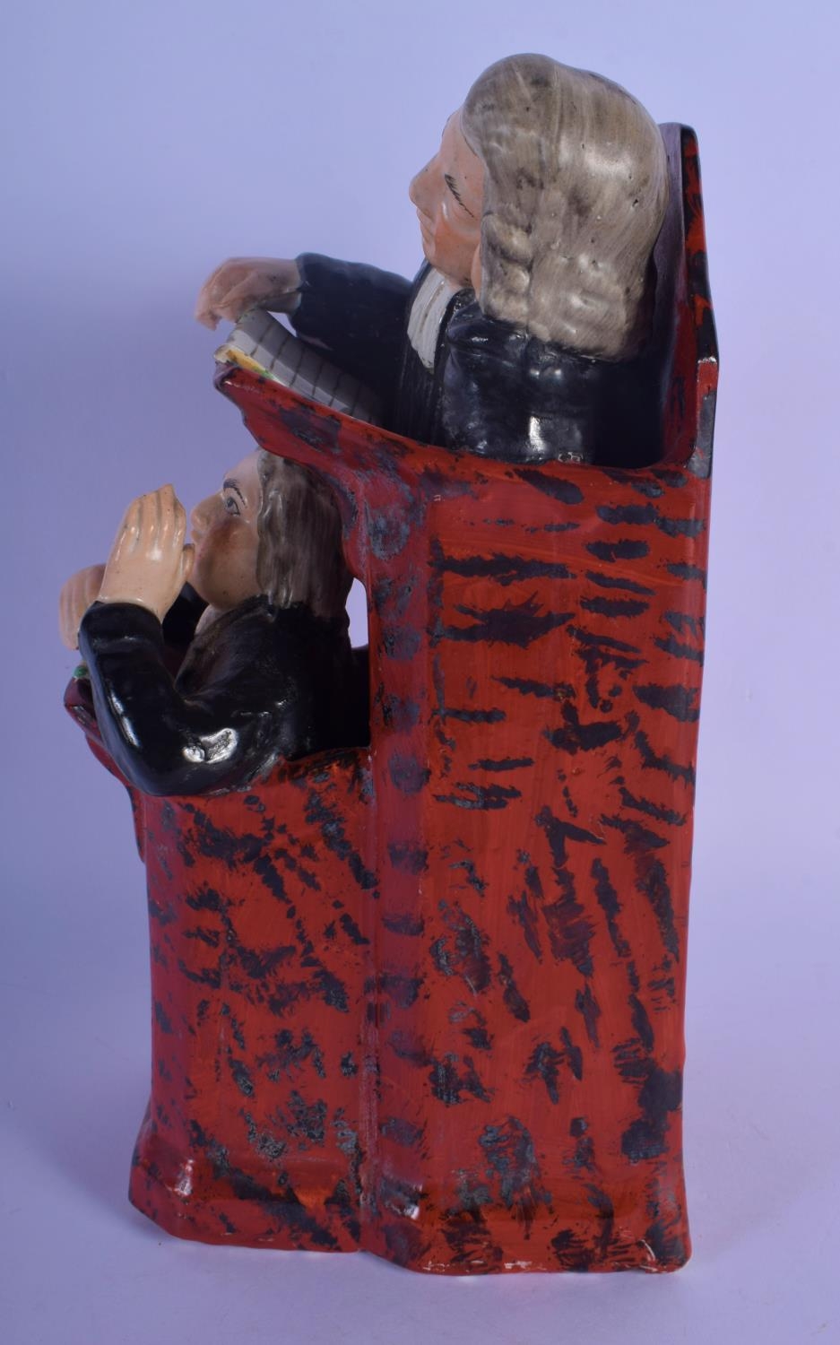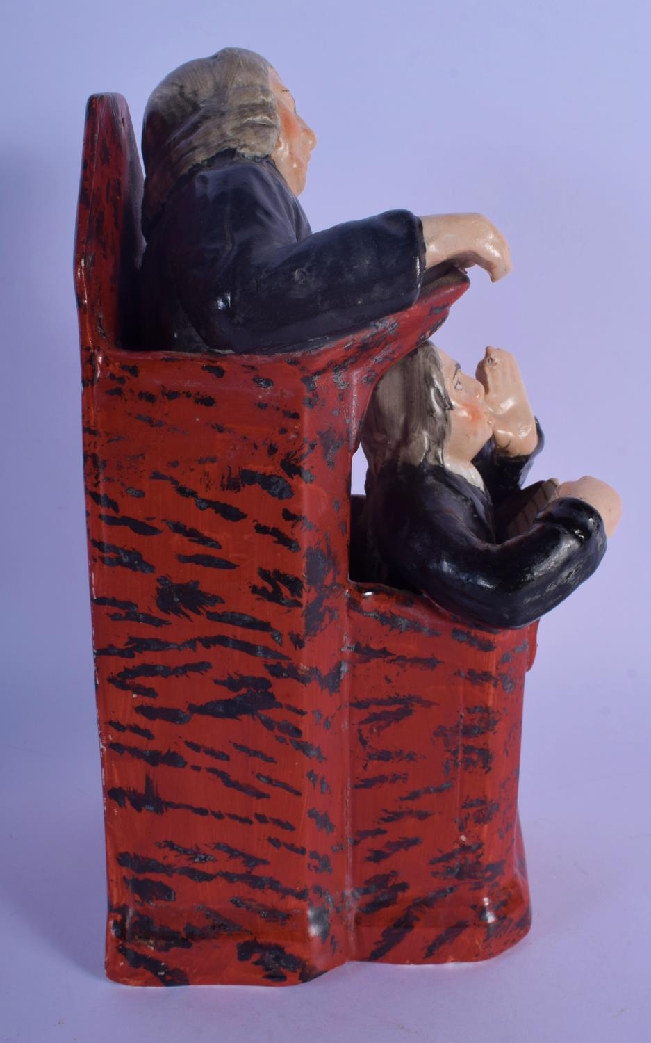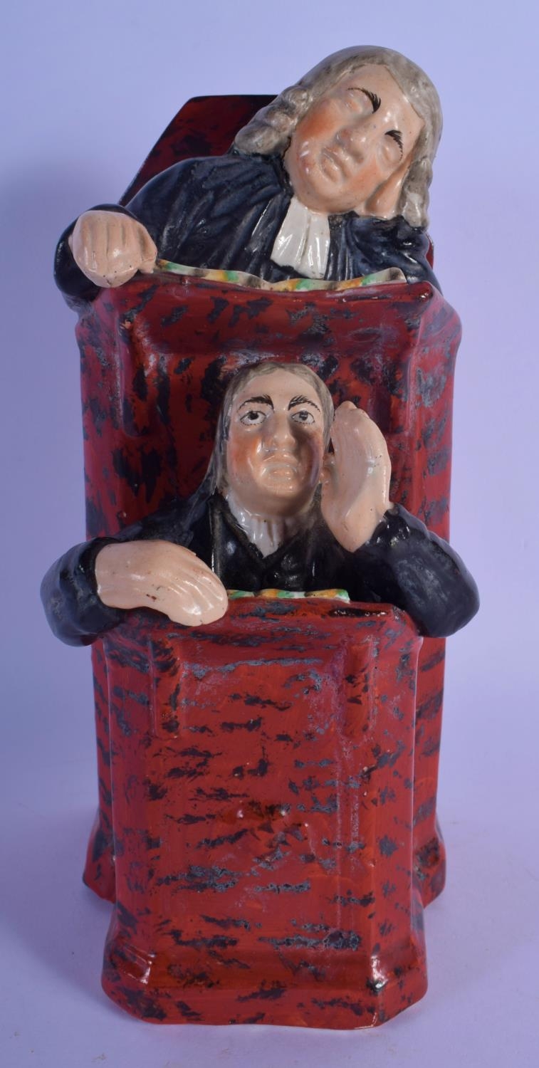 AN EARLY 19TH CENTURY ENGLISH PEARLWARE FIGURE OF THE SLEEPING JUDGE in the manner of Ralph Wood. 25 cm high.