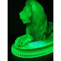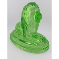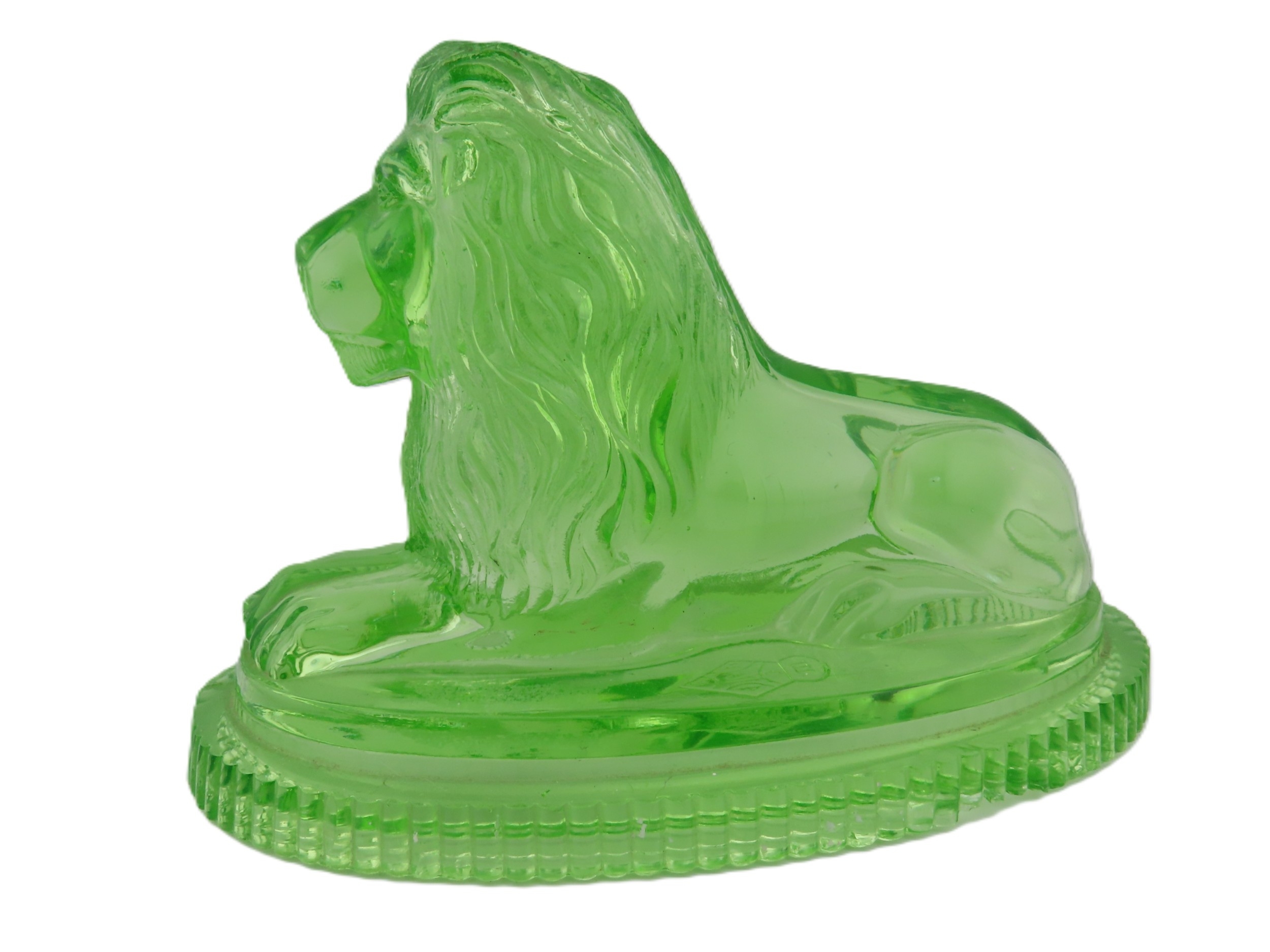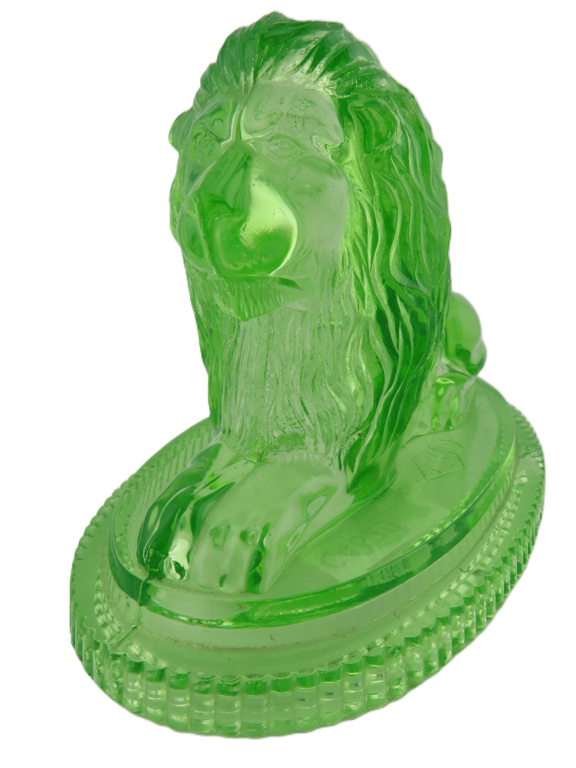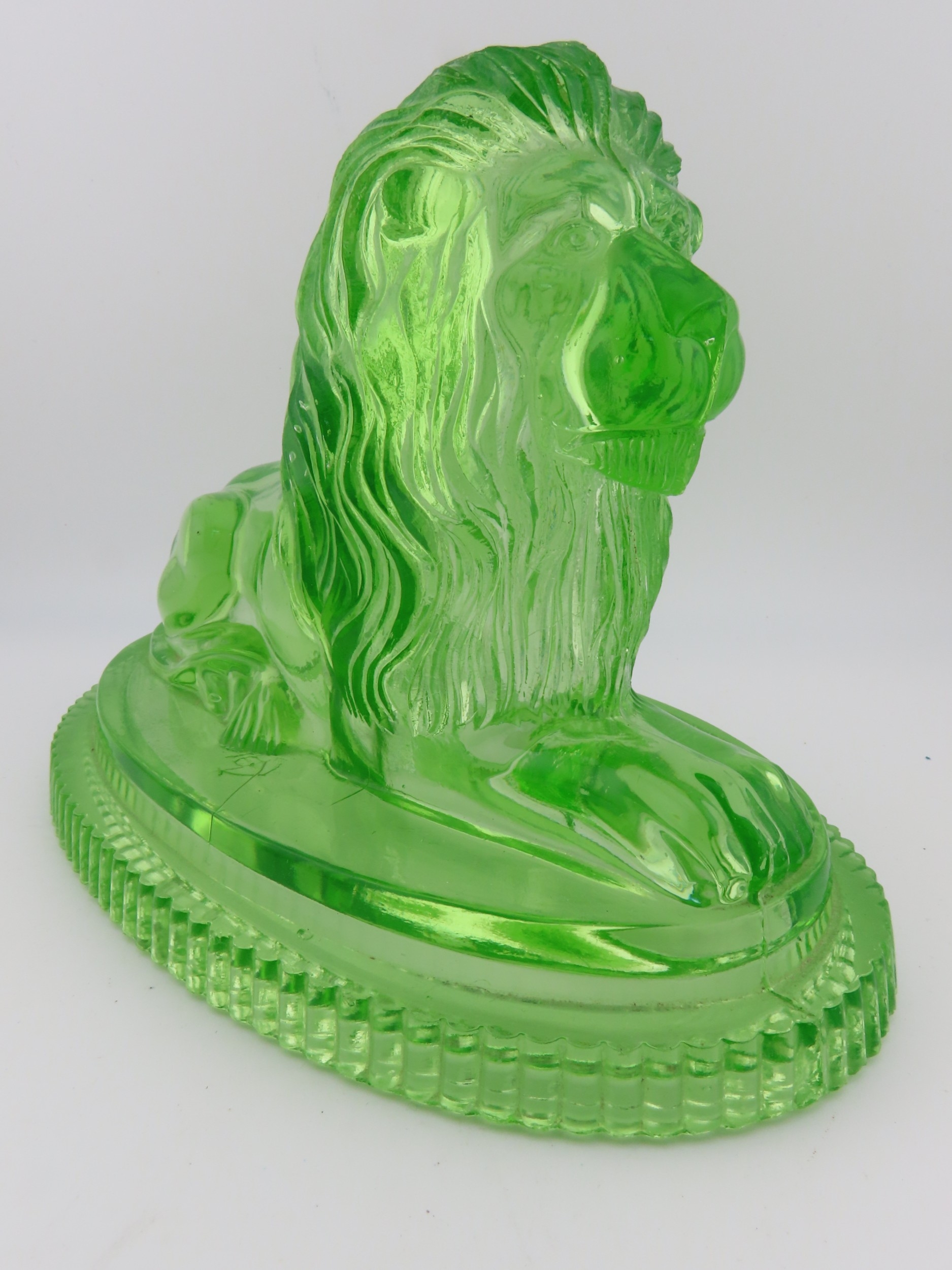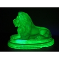 Victorian John Derbyshire moulded Uranium glass lion with registration lozenger to the base. (chip to the rim)