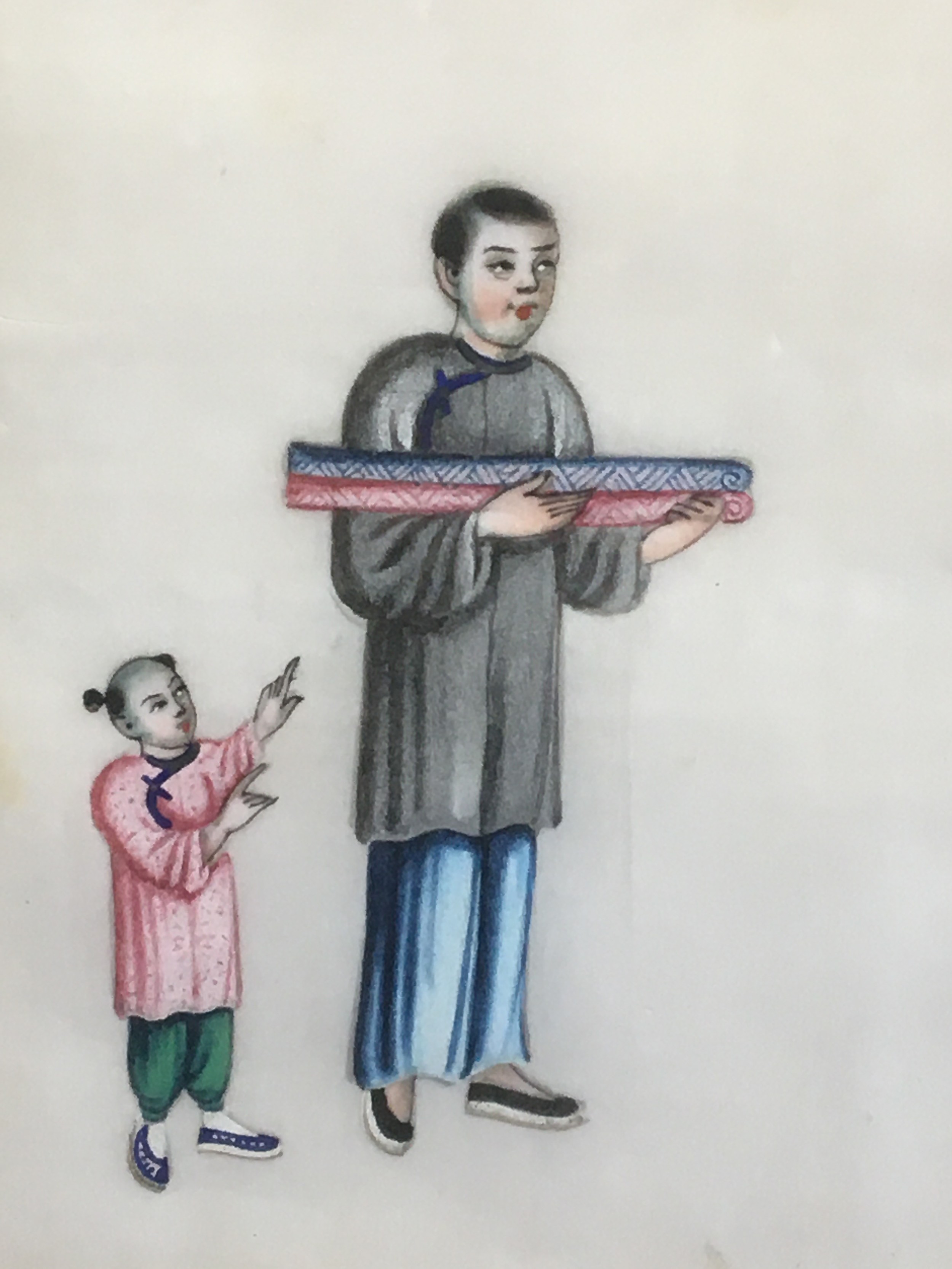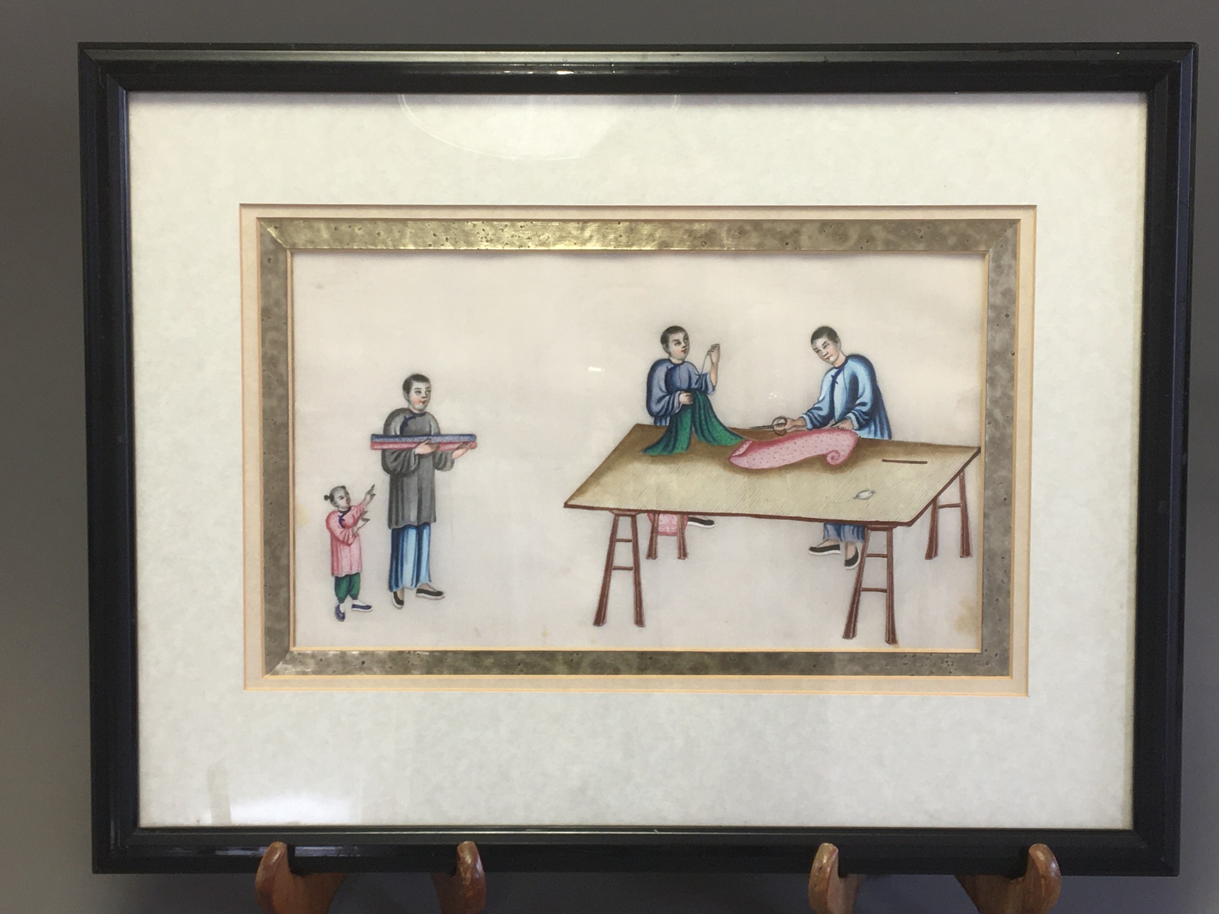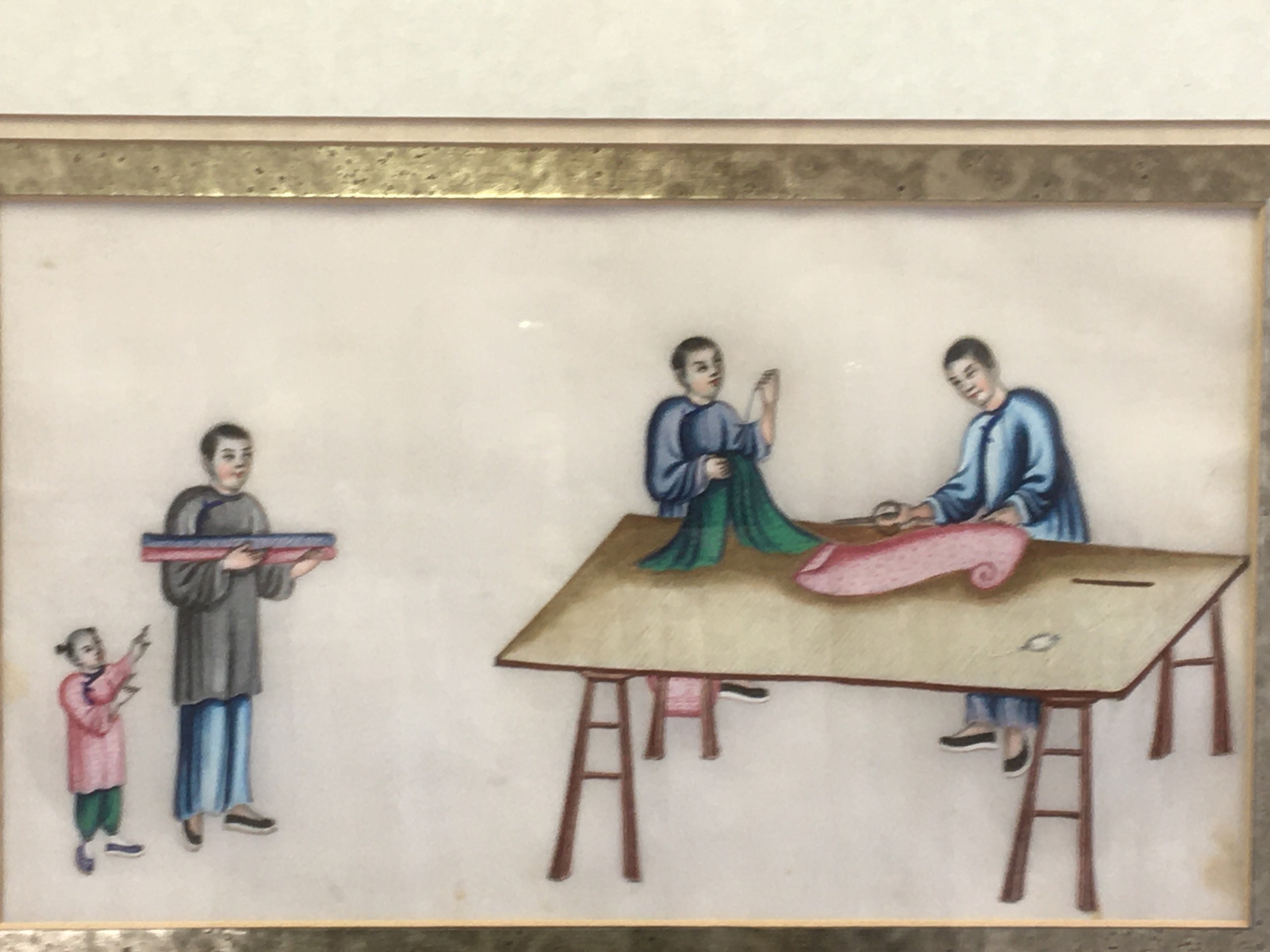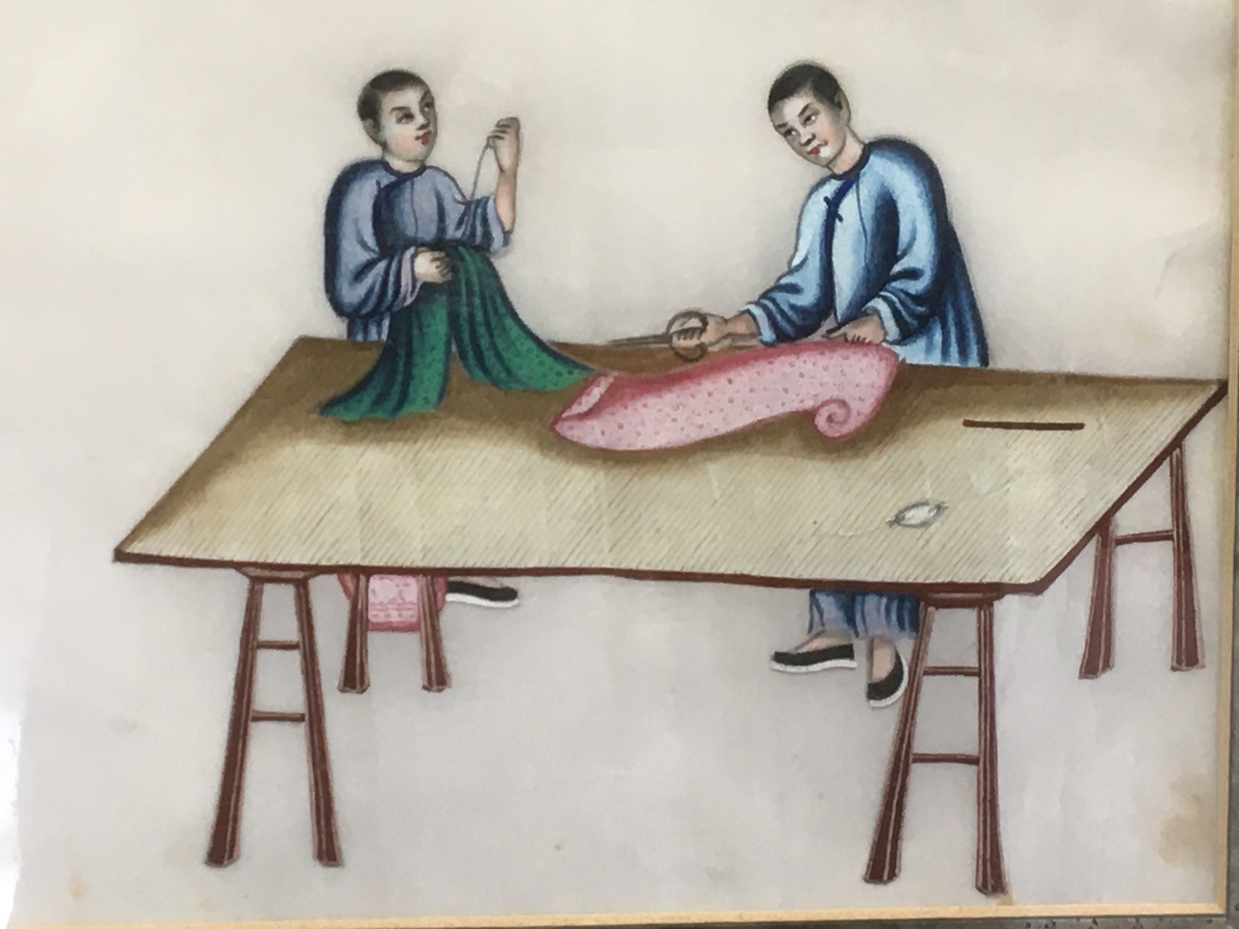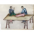 19th Century Chinese Pith Painting on Rice Paper Depicting Silk Garment Makers.