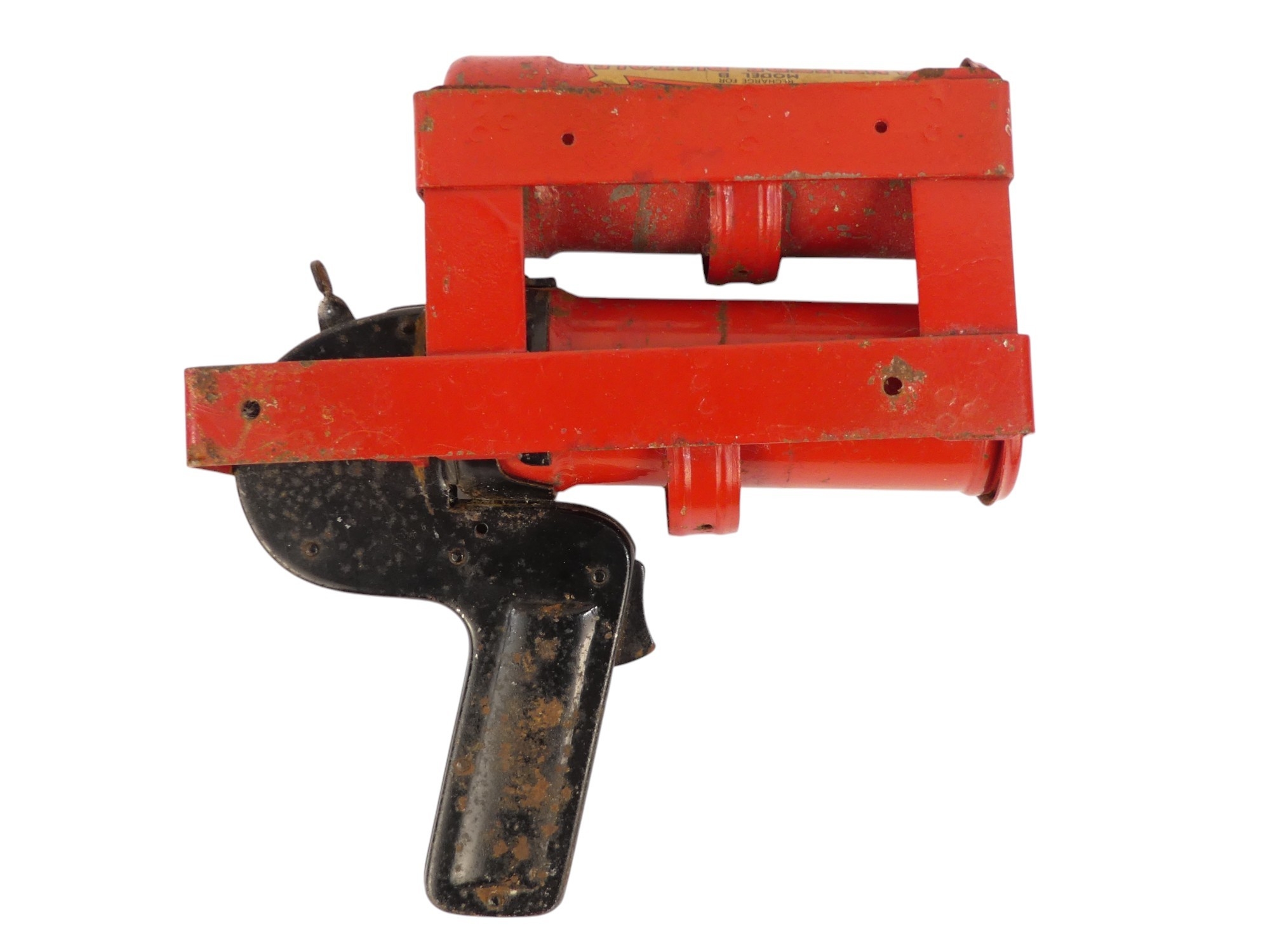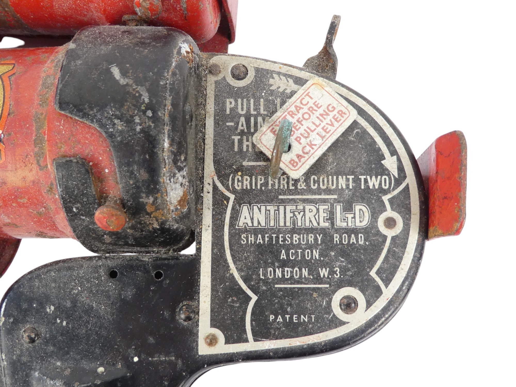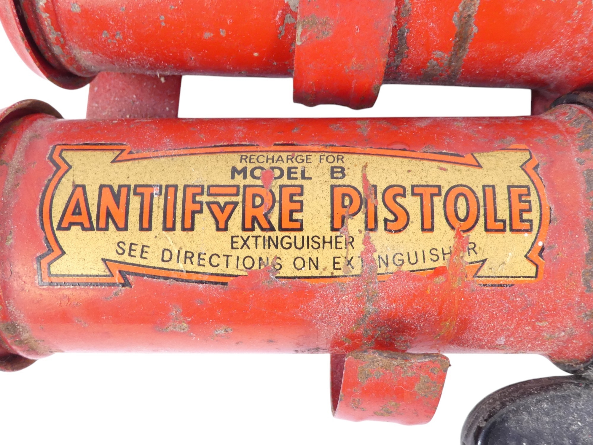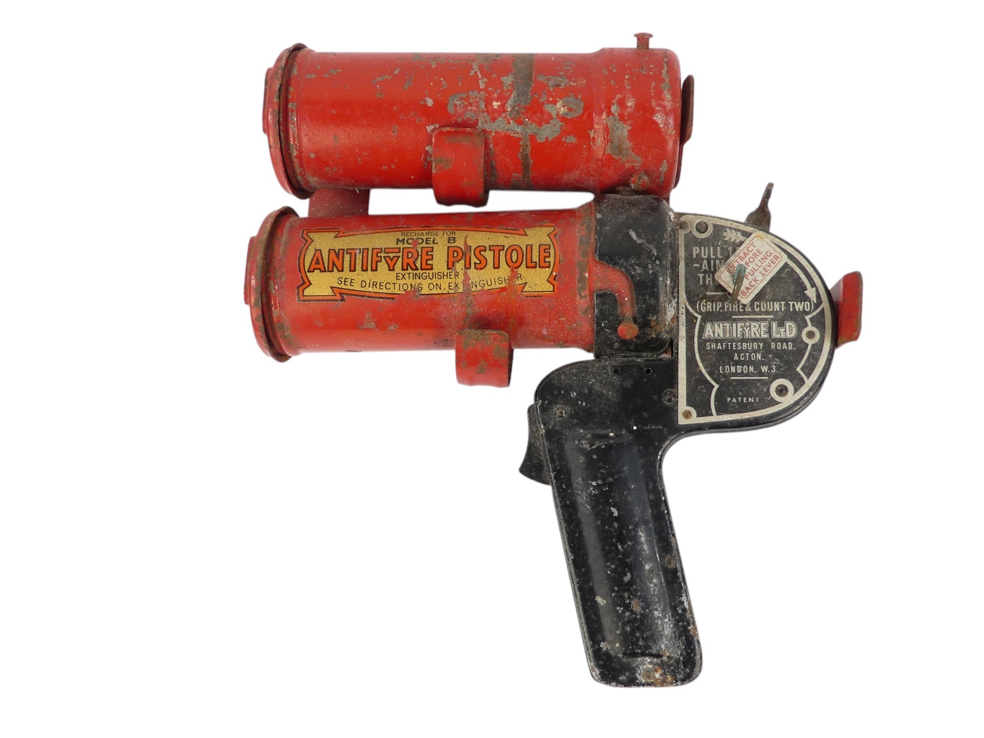 A vintage Antifyre Pistole fire extinguisher - with mounting bracket and spare canister, 22cm.
