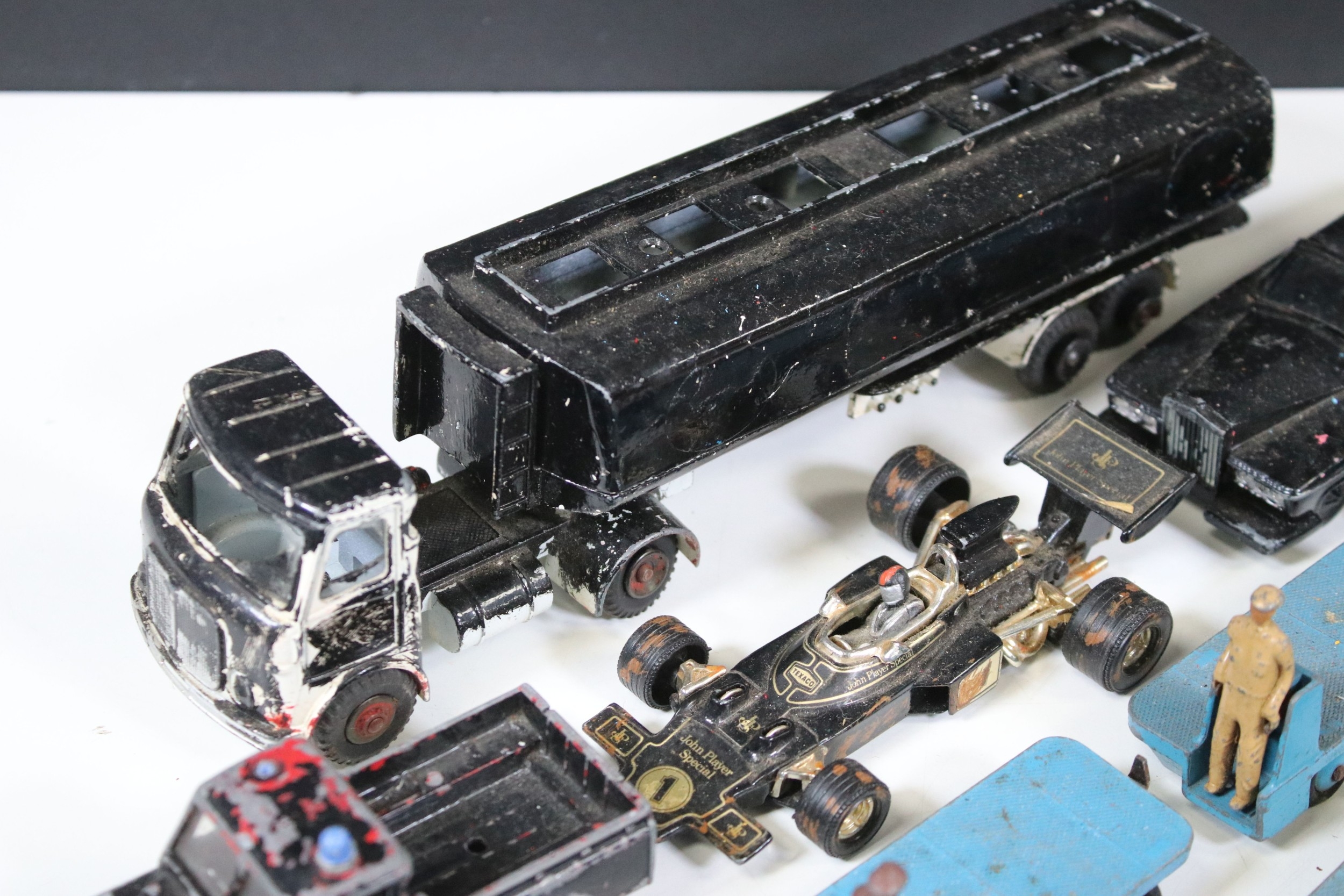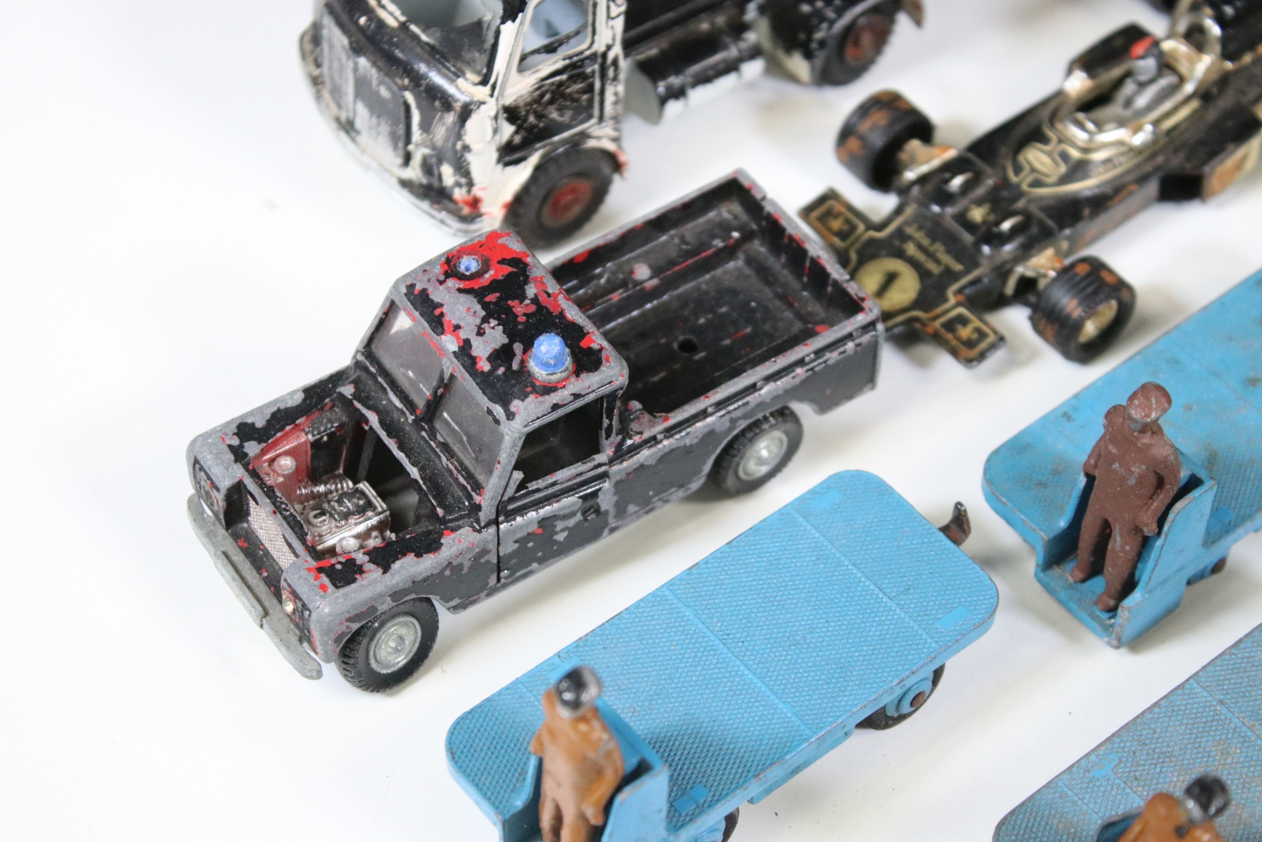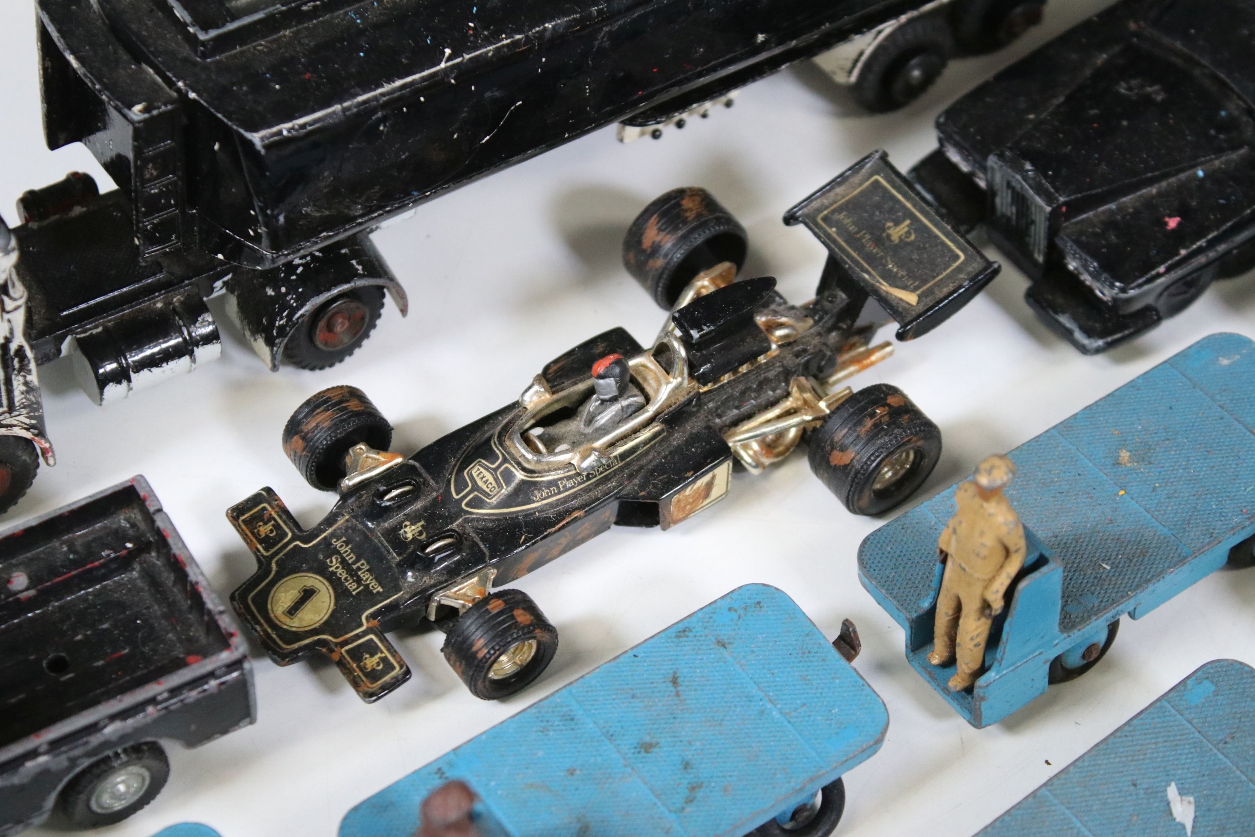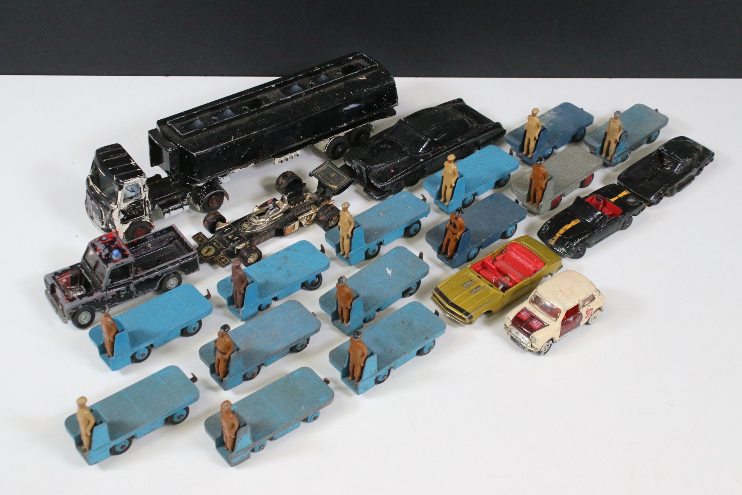 20 Mid 20th C play worn diecast models to include 13 x Dinky BEV Trucks, features some repainting