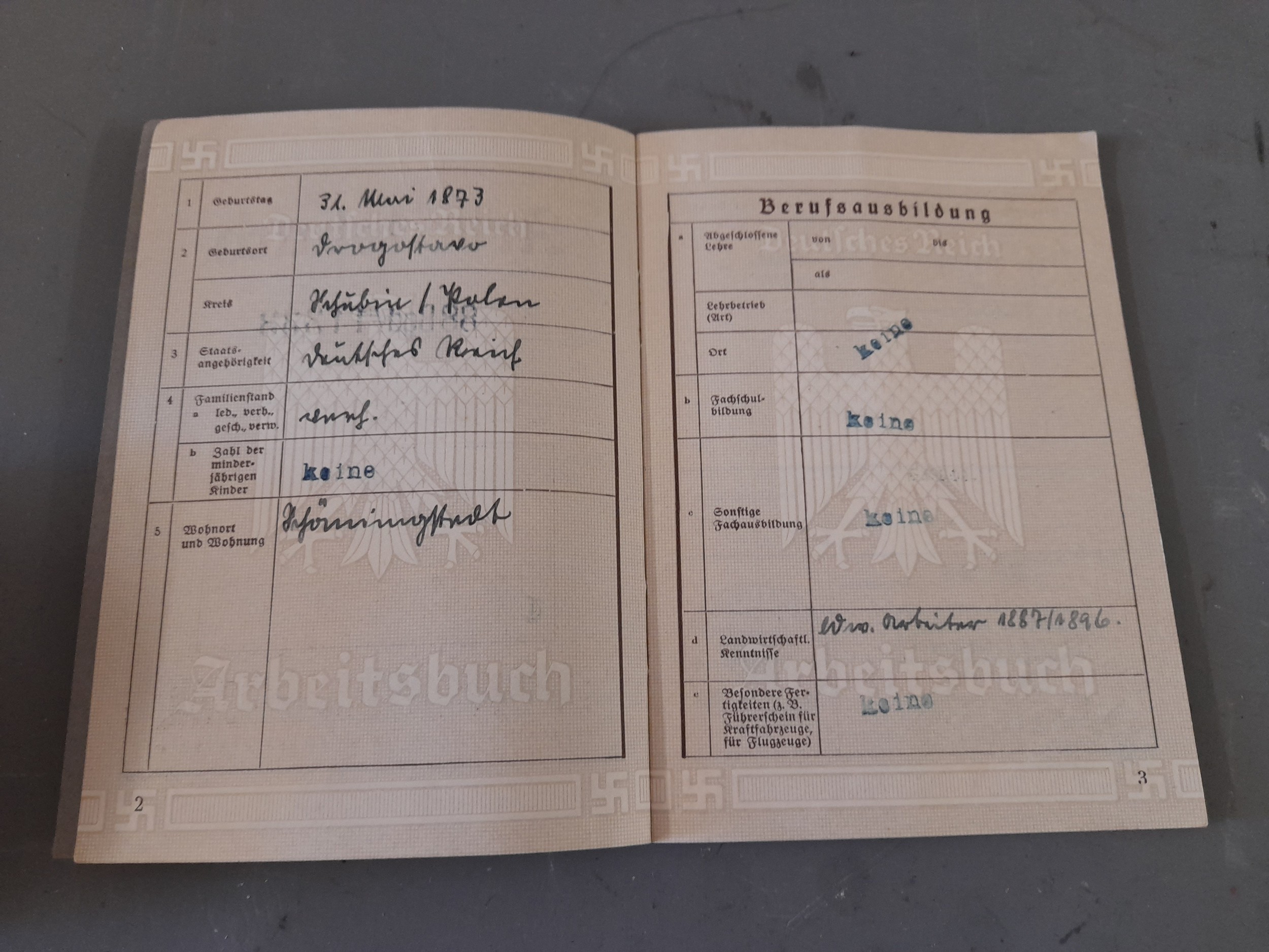 WW2 German Arbeitsbuch (employment record) Book