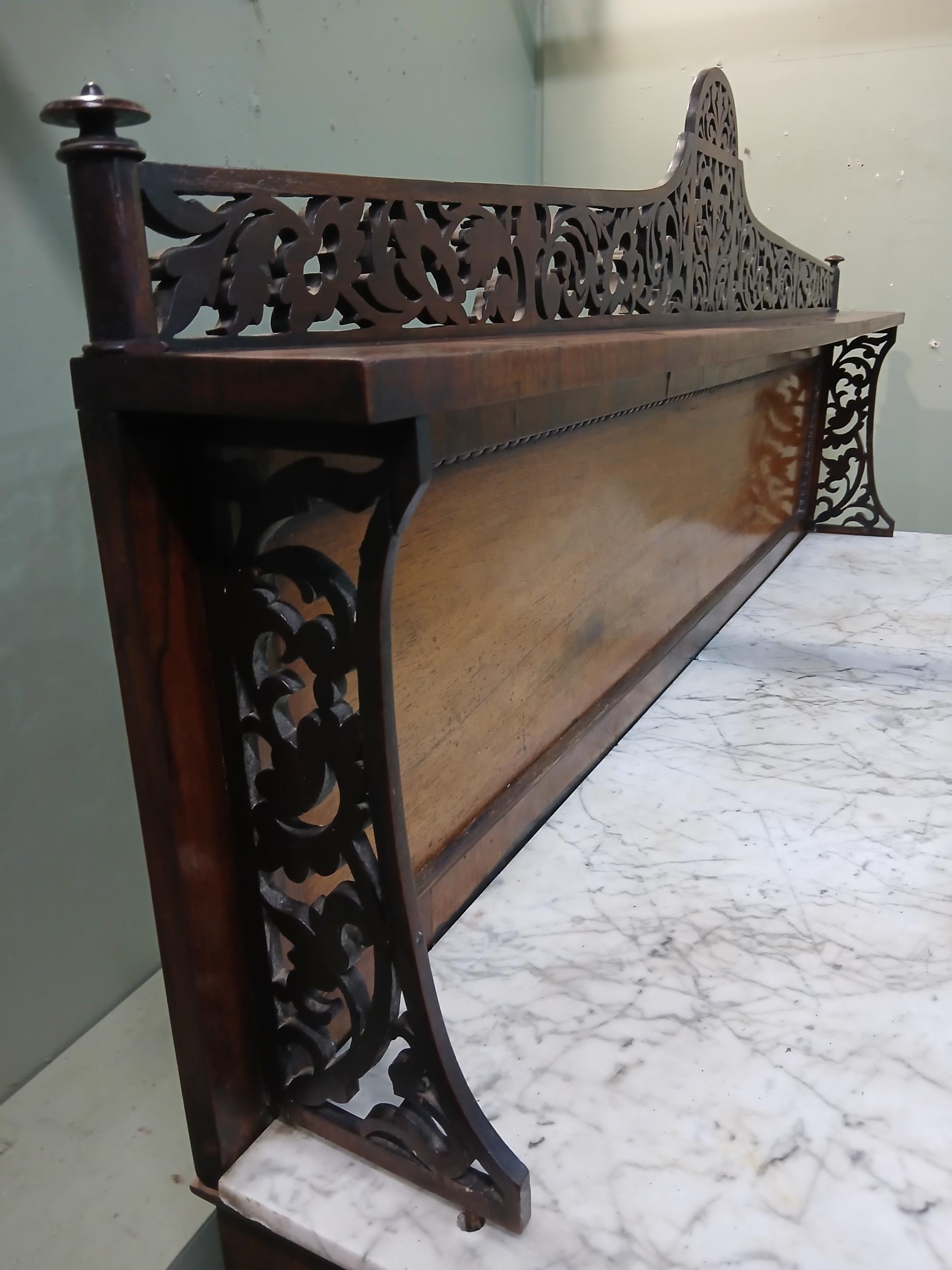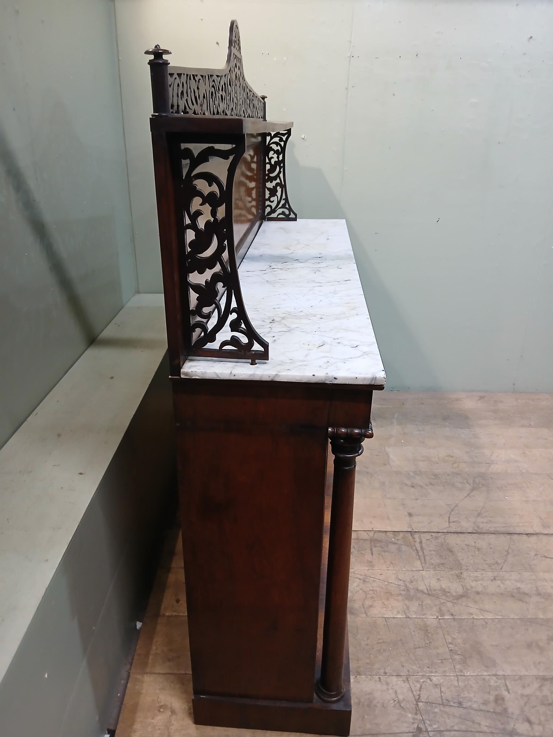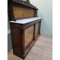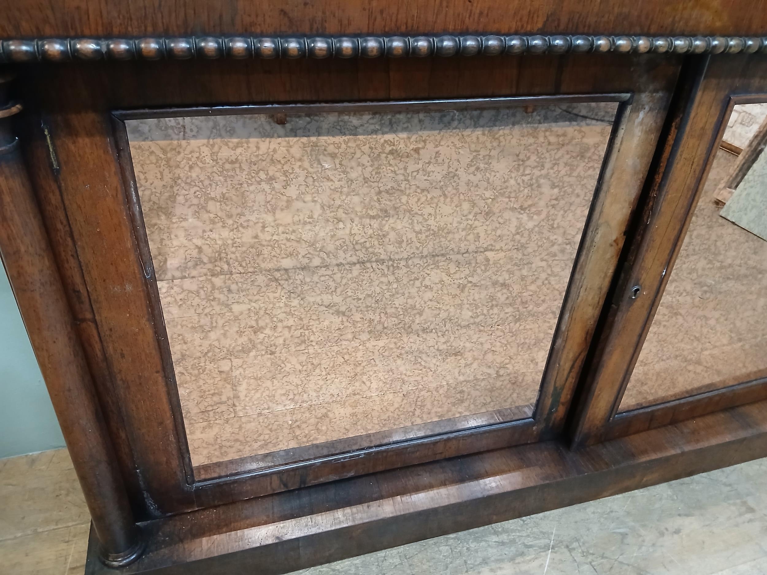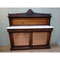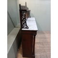 Rosewood chiffonier sideboard featuring a marble top and antique mirrored doors. {H 160cm x W 168cm x D 39cm }. NOT AVAILABLE TO VIEW IN PERSON.