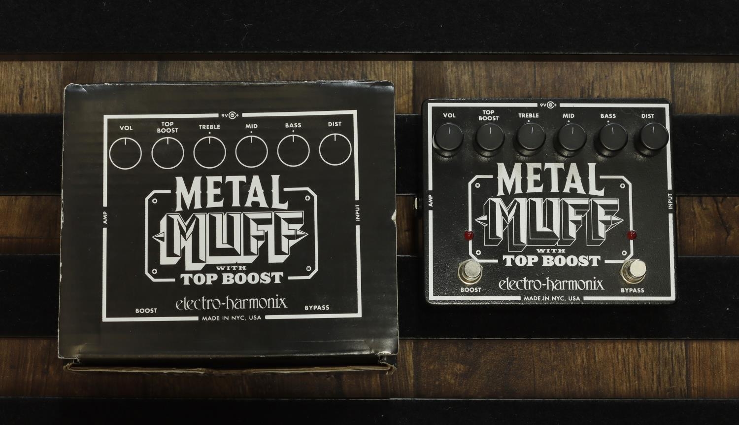 Electro-Harmonix Metal Muff with Top Boost guitar pedal, boxed