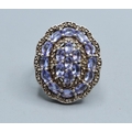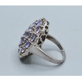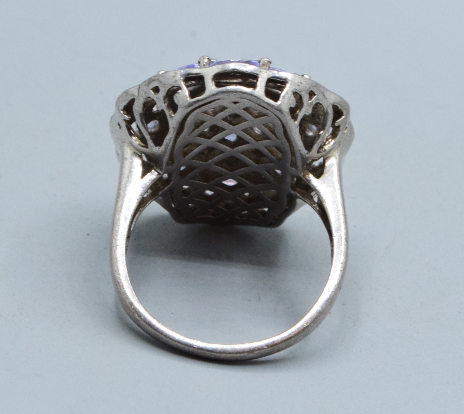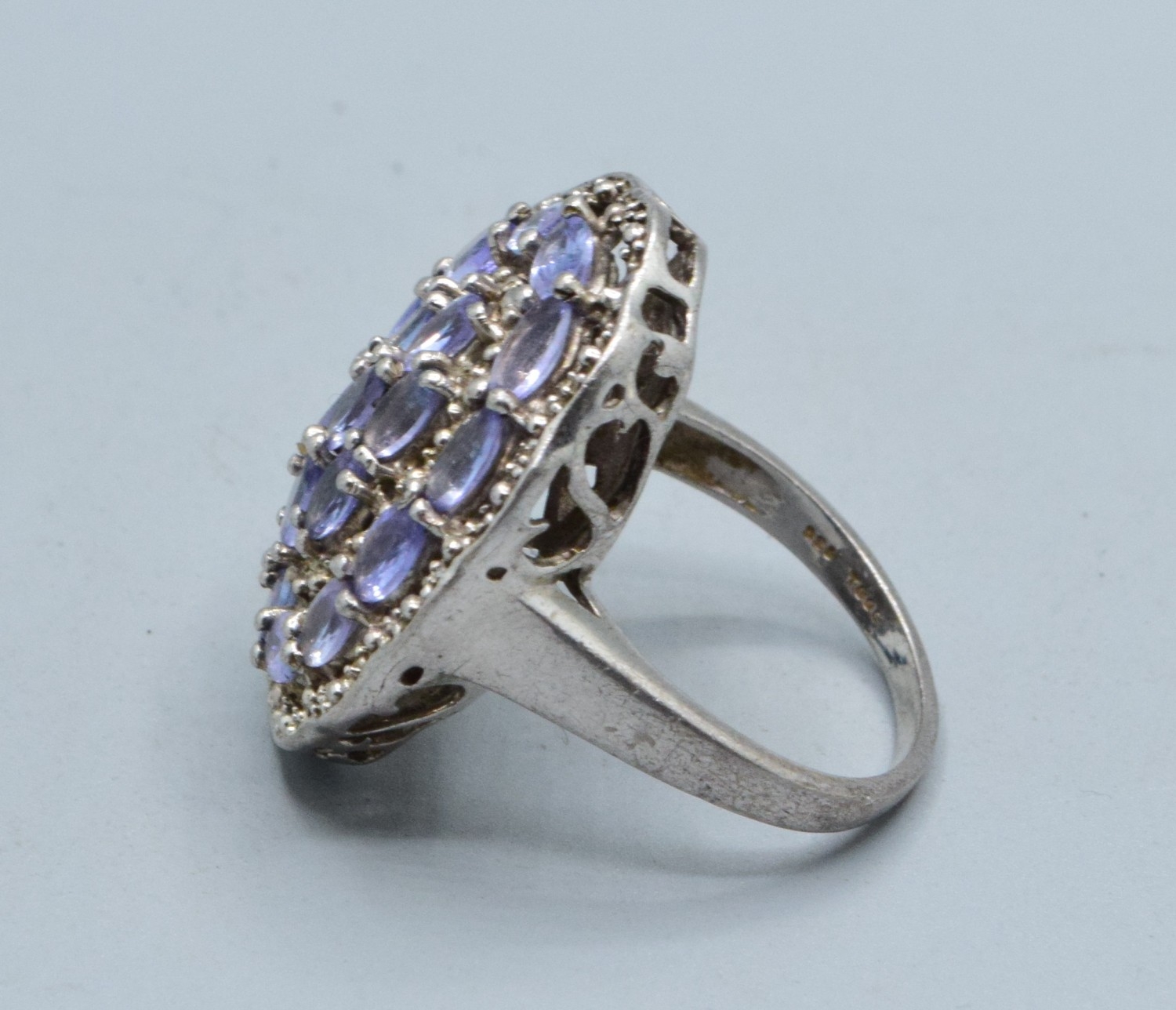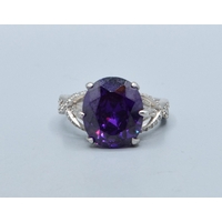 Large oval Amethyst ladies statement ring set in an open work design in 925 silver the head size being 28x24mm size T