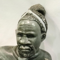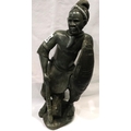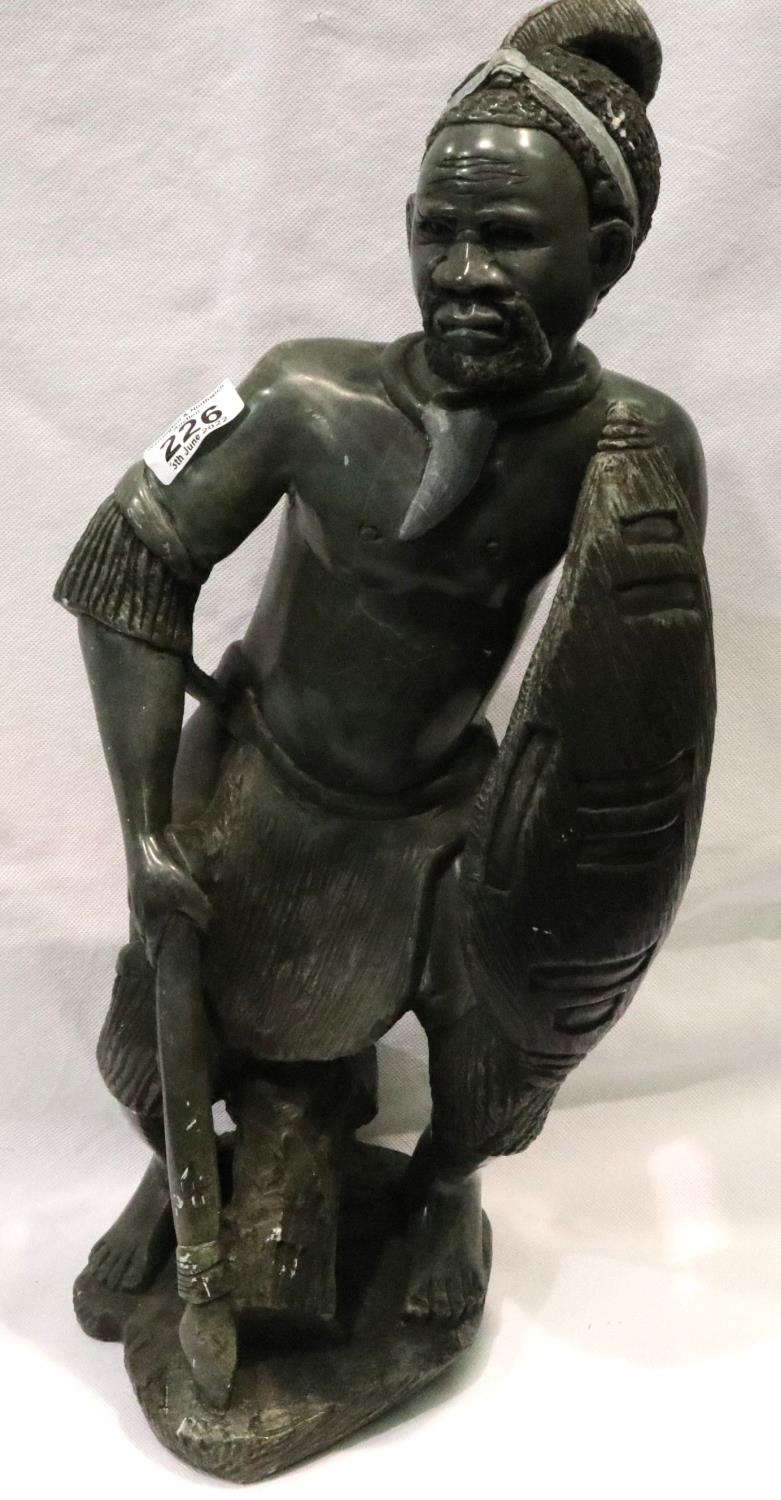 Large hand carved grey marble African warrior figurine, H: 45 cm. P&P Group 3 (£25+VAT for the first lot and £5+VAT for subsequent lots)