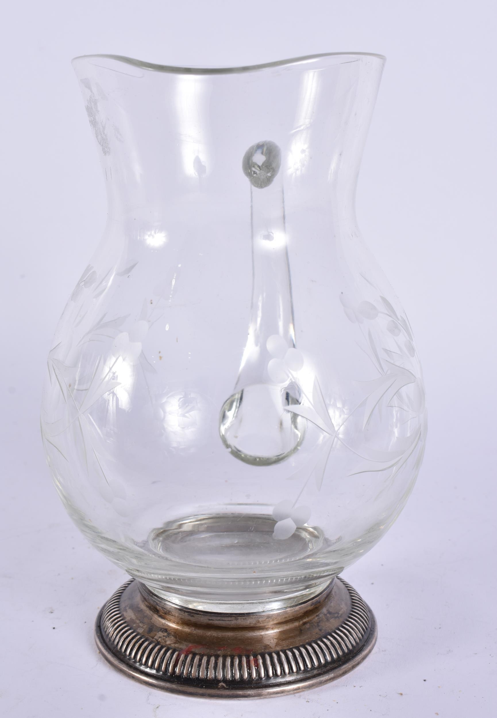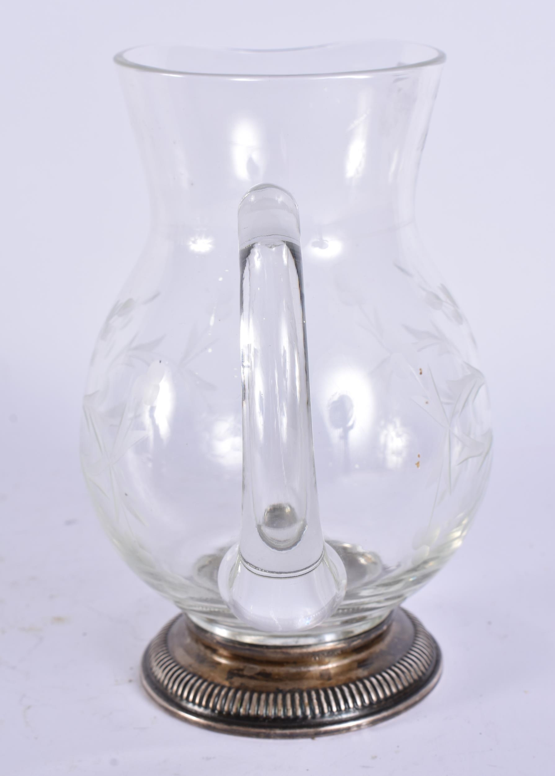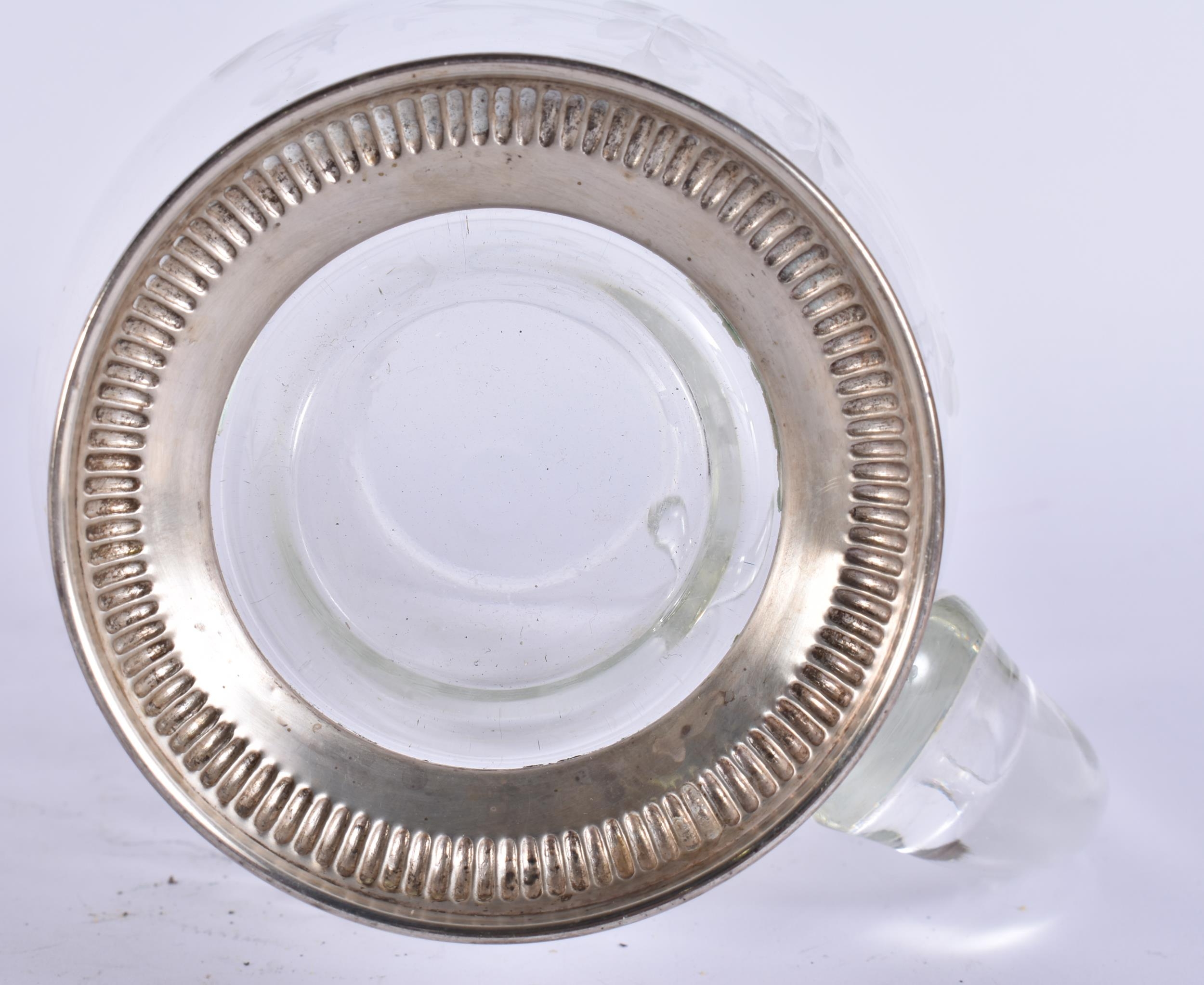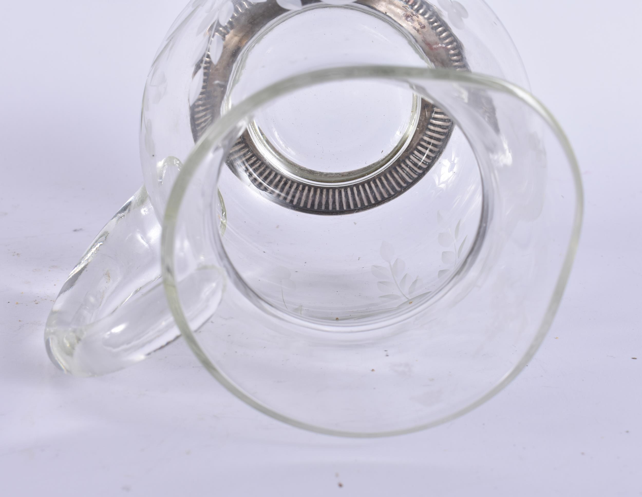 A SILVER MOUNTED GLASS JUG. 17 cm high.