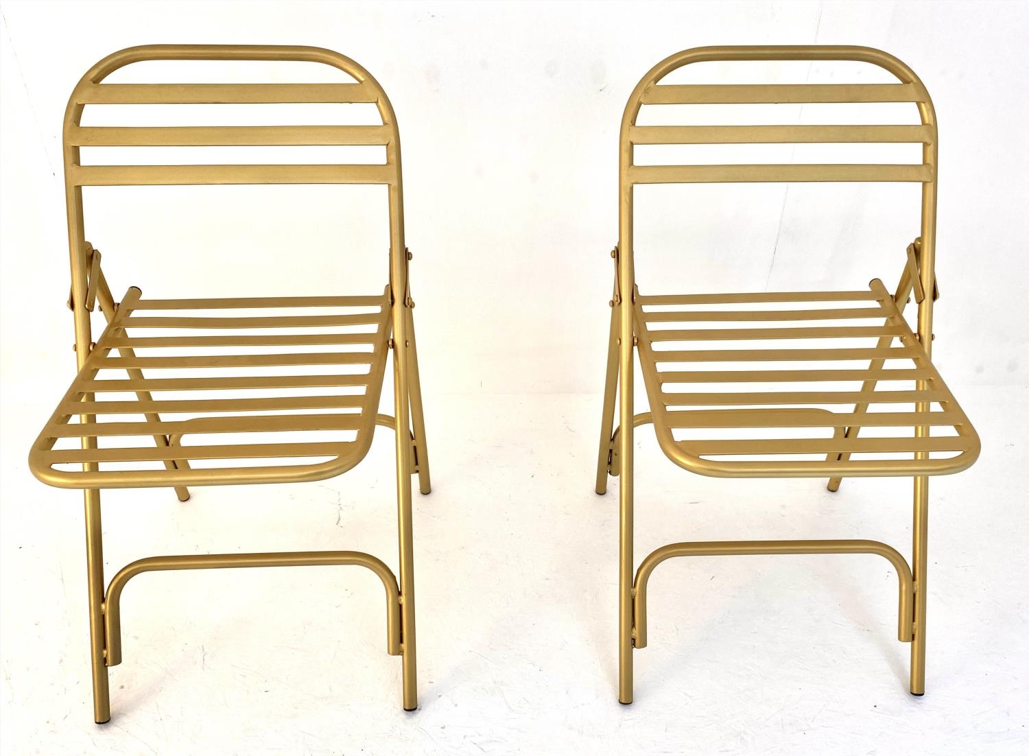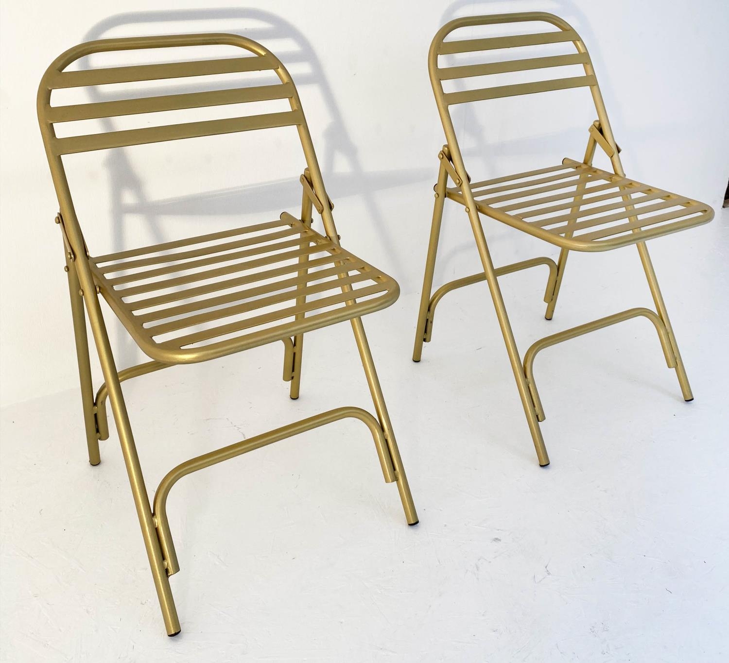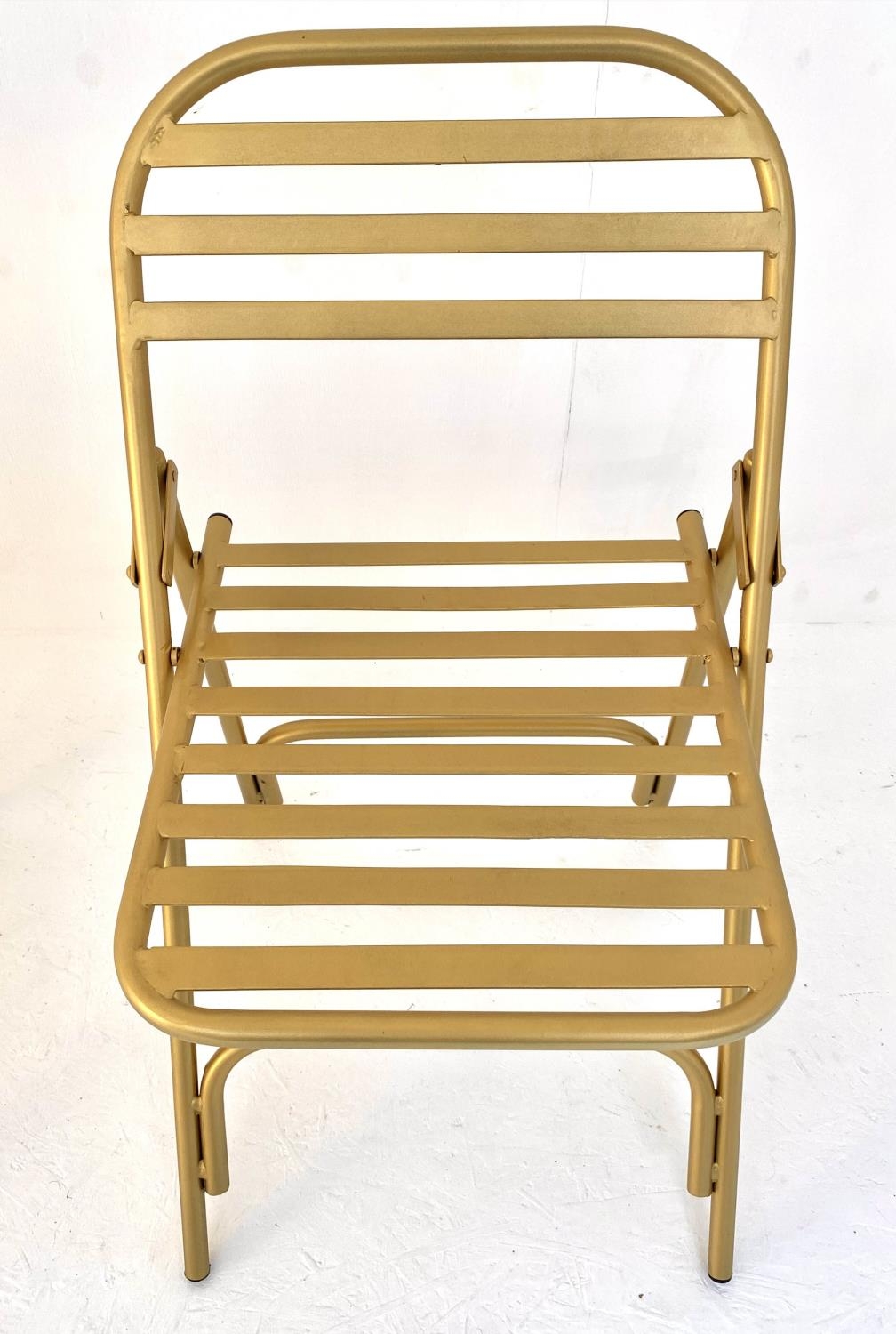 TERRACE CHAIRS, a pair, 76cm x 44cm x 45cm, 1950's French style, gilt metal. (2)