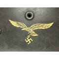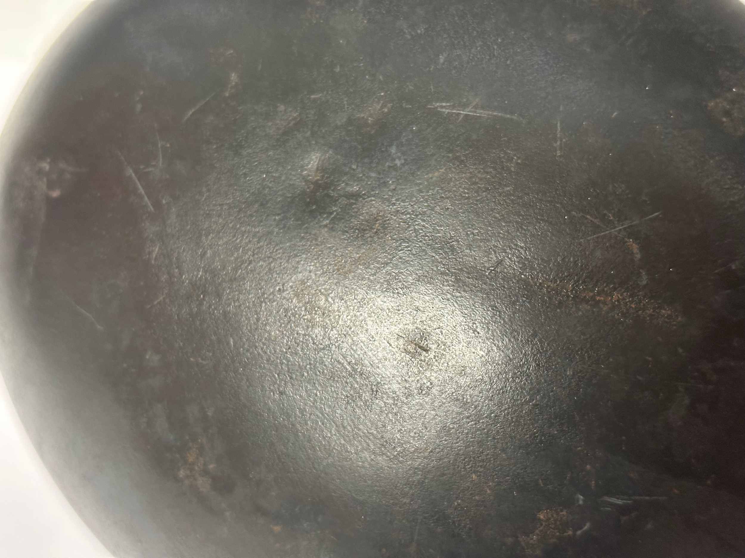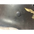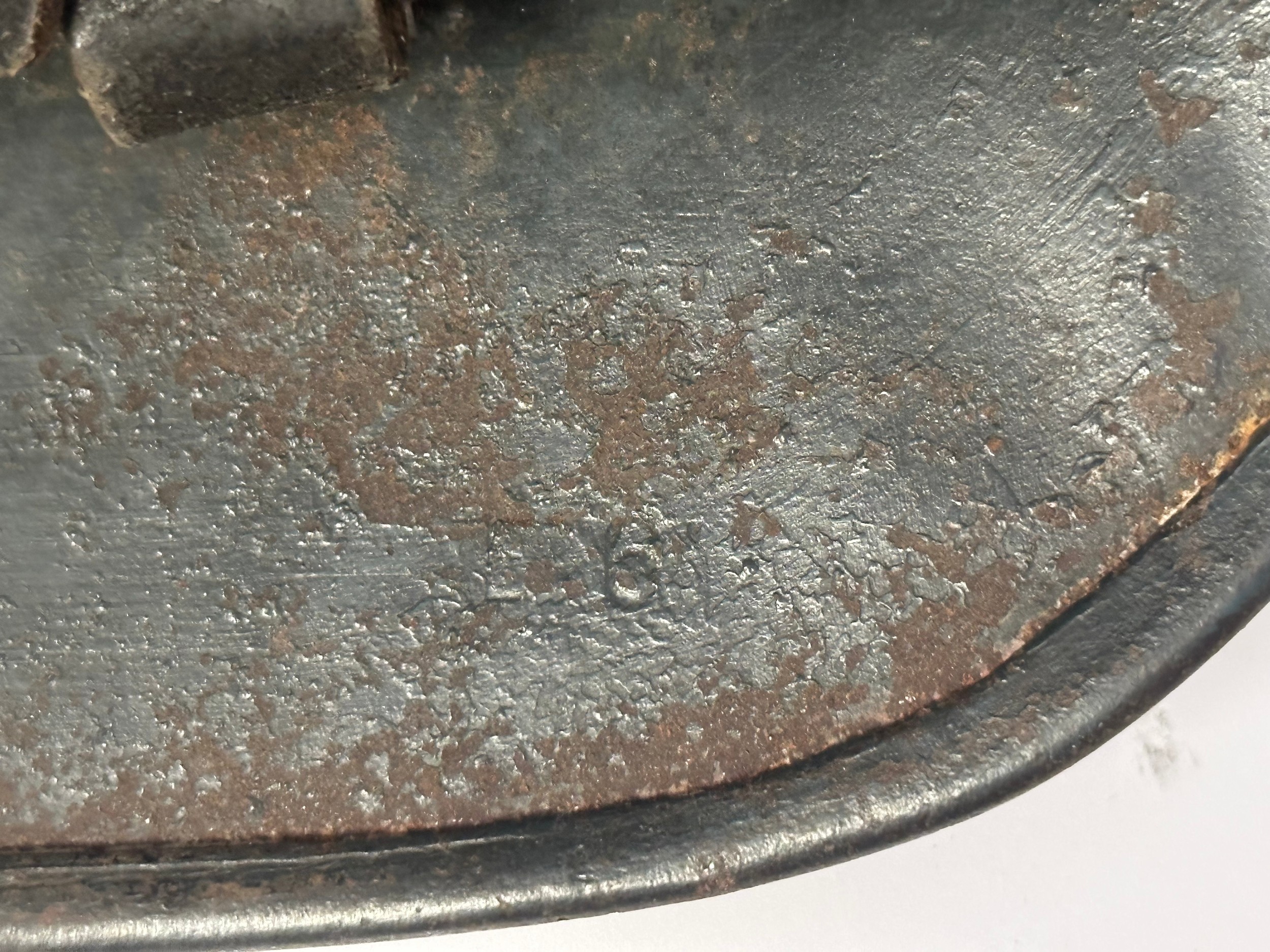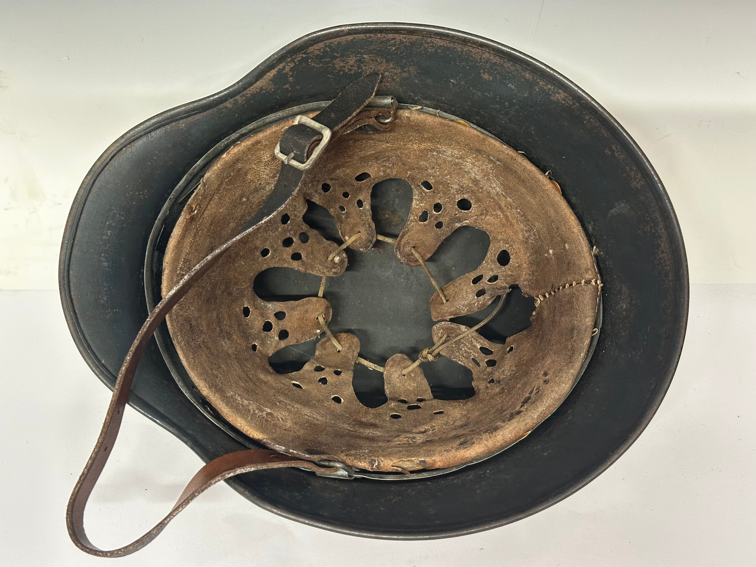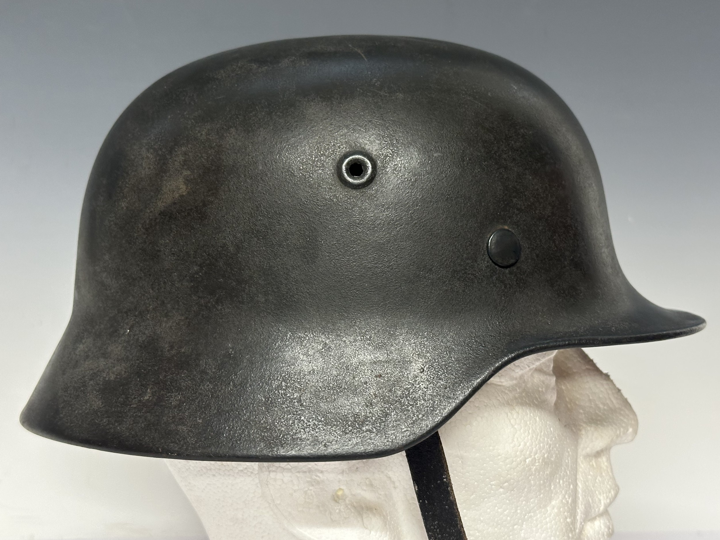 WW2 Third Reich Luftwaffe Single Decal M40 Steel Helmet. Shell is maker marked "ET64". Lot number marked 5157. Complete with liner size approx. 58. with original drawstring and with chinstrap. Original paint internally and externally. Decal 95% intact just with minor surface wear.