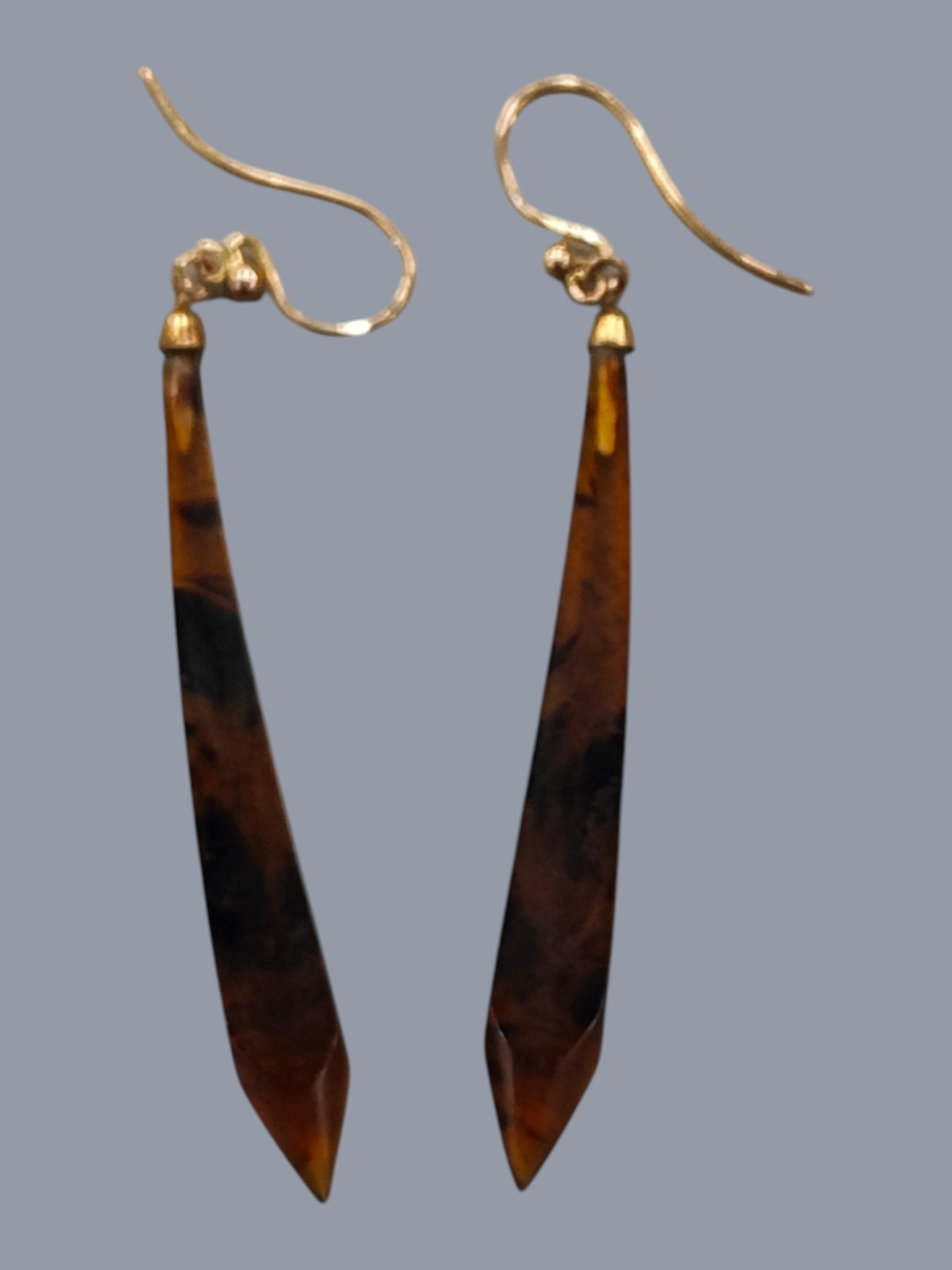 PAIR OF 9 CARAT GOLD FAUX TORTOISESHELL DROP EARRINGS