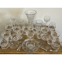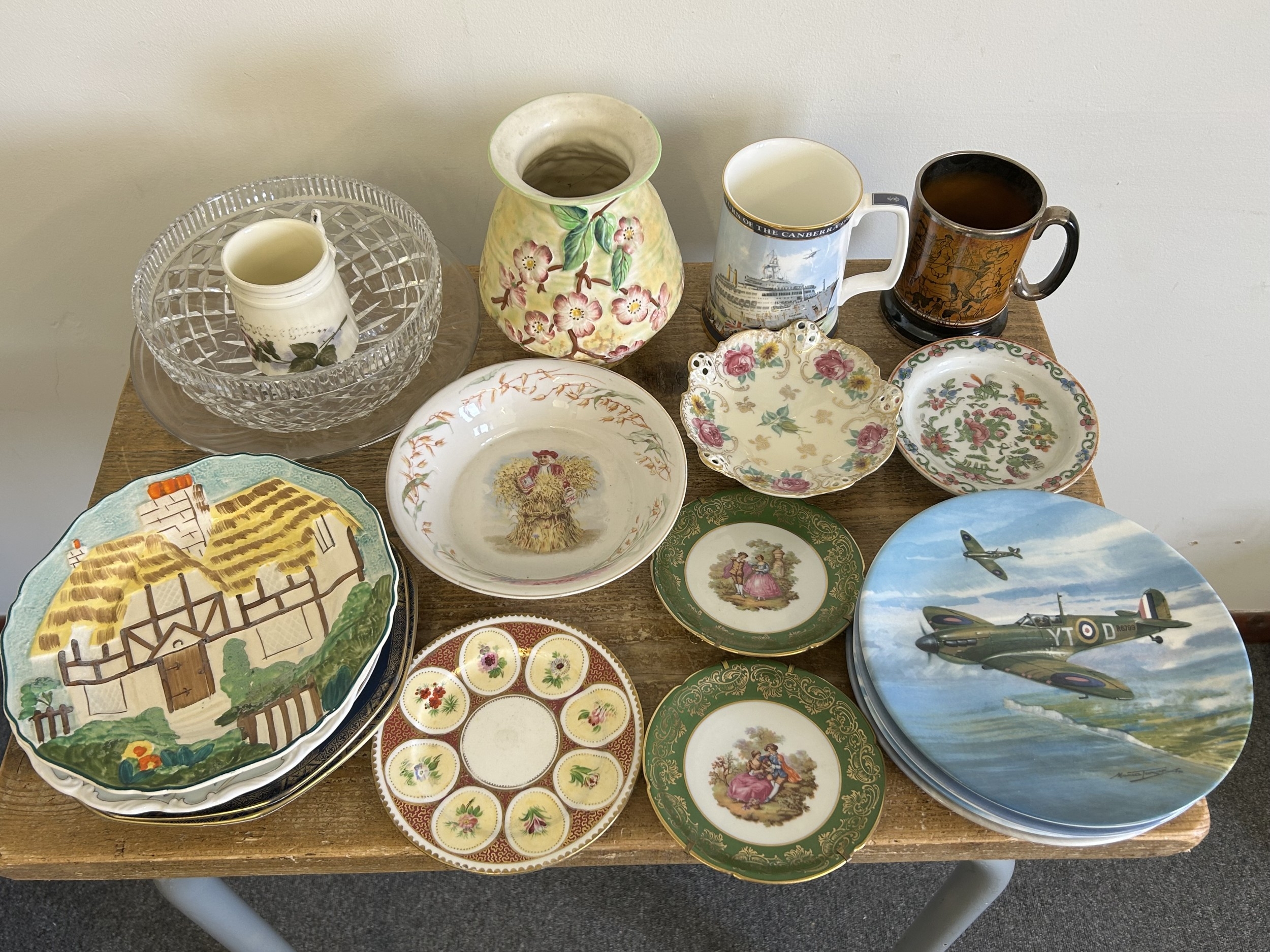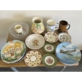 A box of mixed ceramics and glass to include a selection of Coalport WW2 themed collectors plates, Royal Doulton Falklands War mug etc