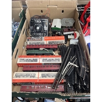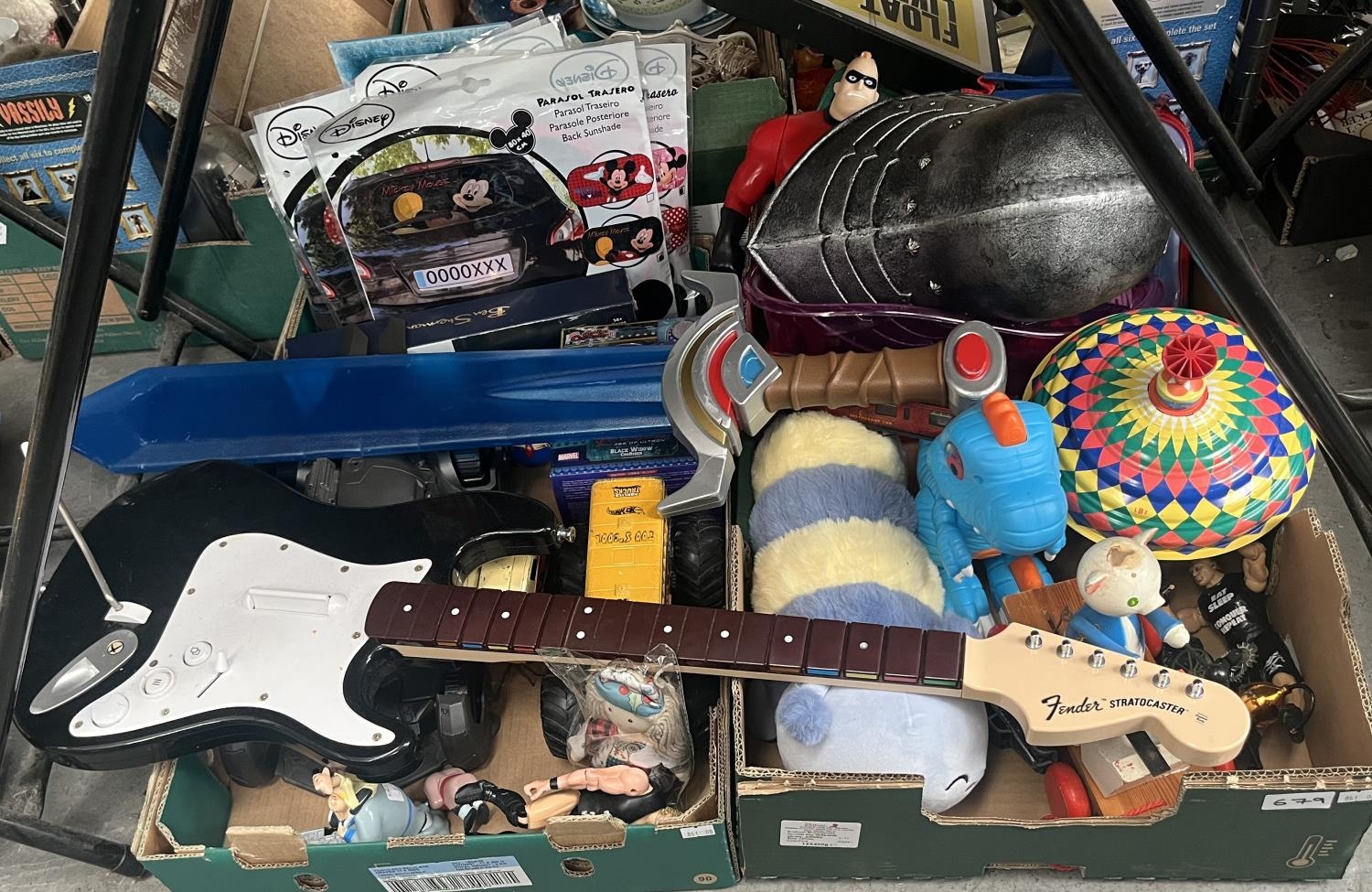 2 Boxes containing assorted toys including Fortnite Victory Royale sword, Marvel Black Widow figure etc