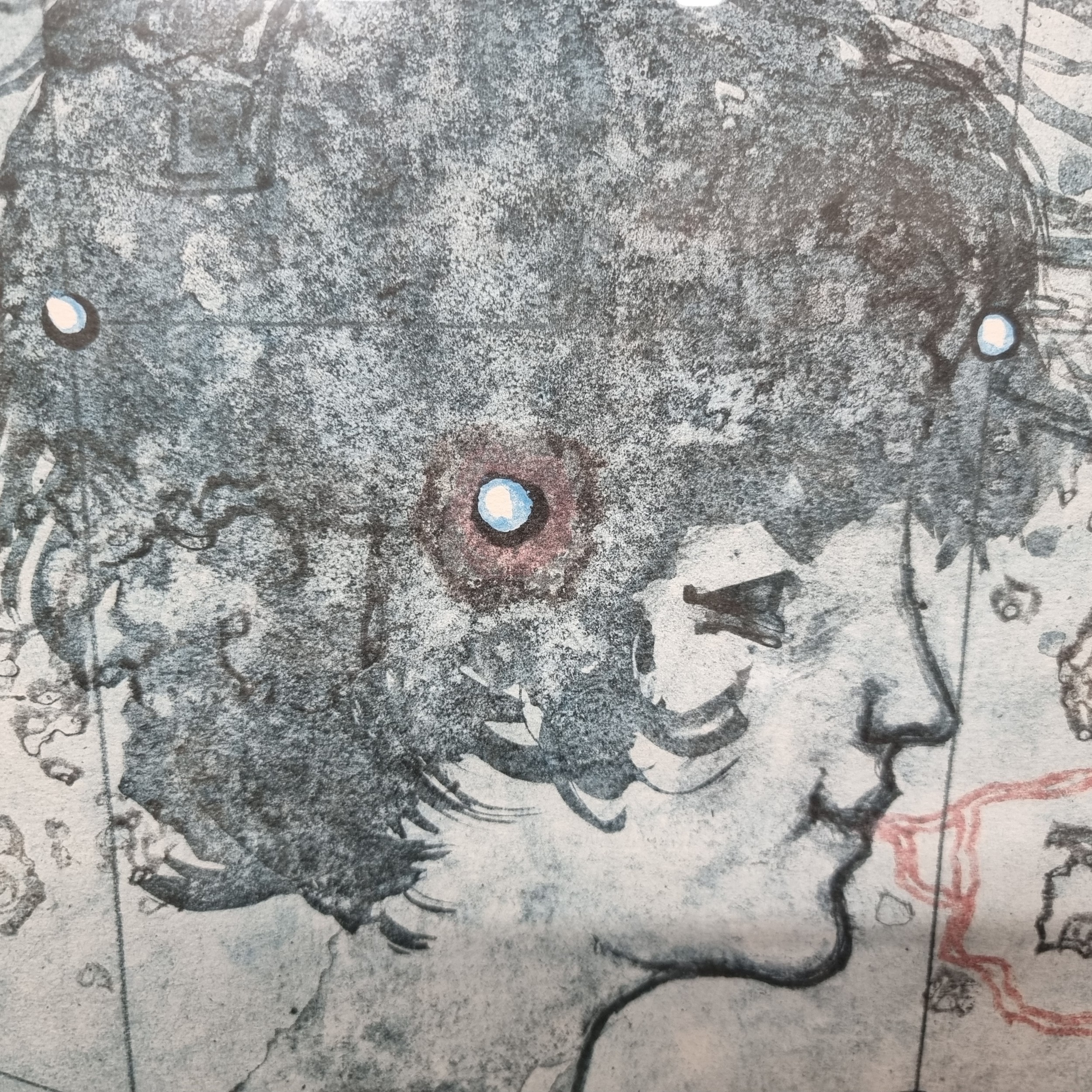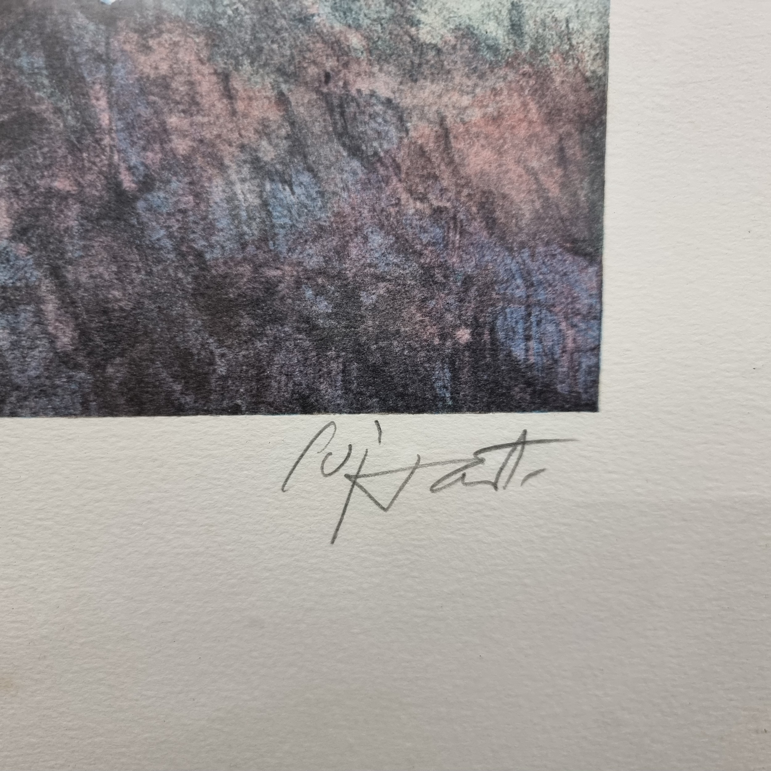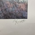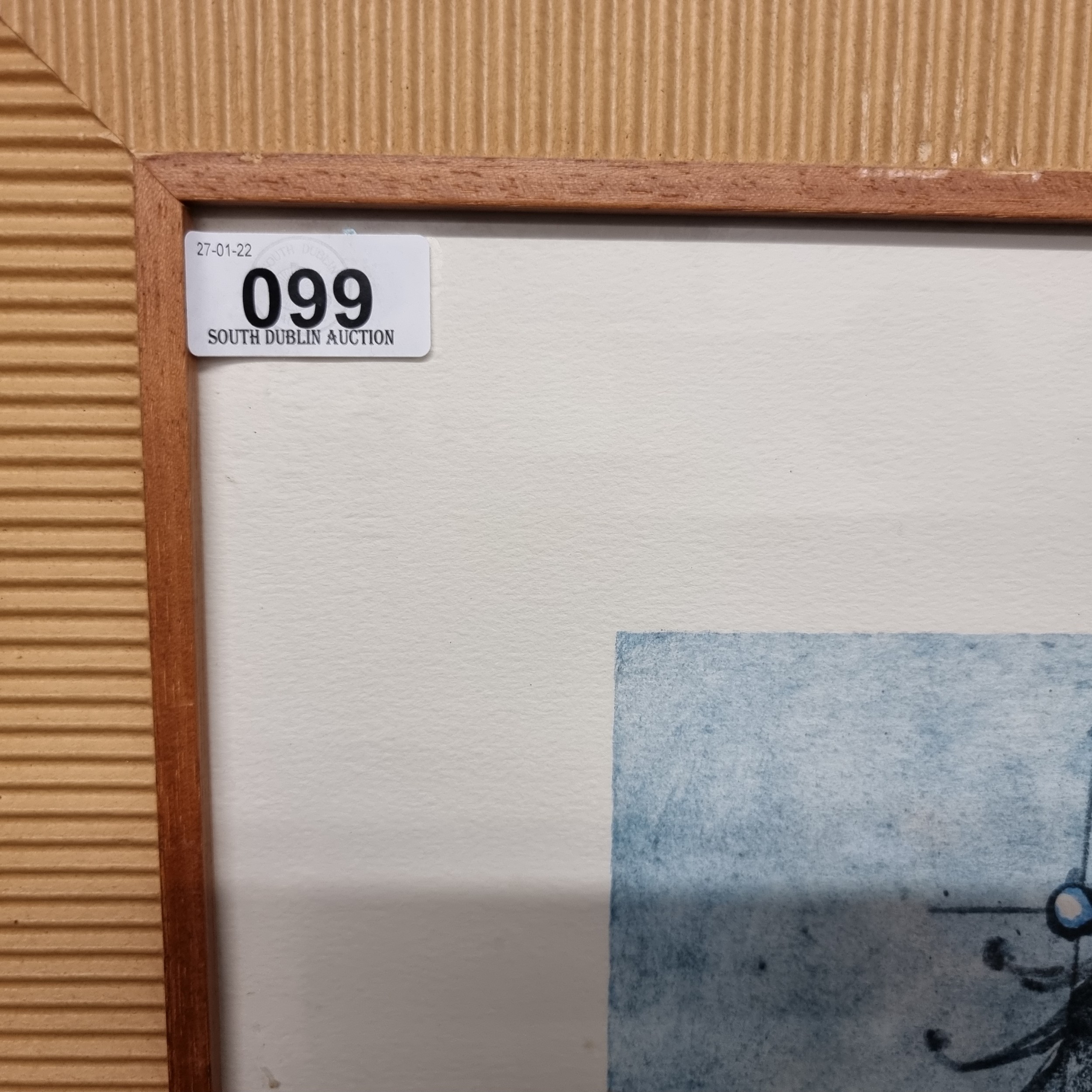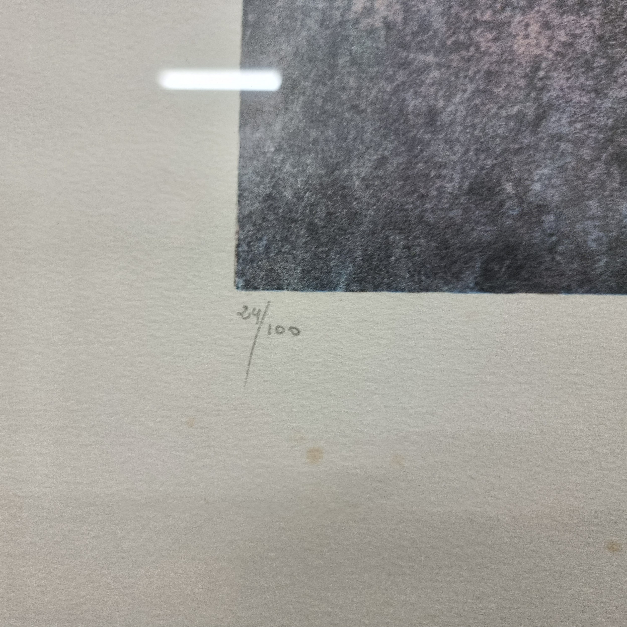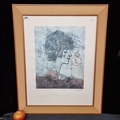 A very large original limited edition (24/100) lithograph print featuring a profile image of a boy blowing imaginary bubbles. Signed bottom right by artist in pencil. H77 x W63cm