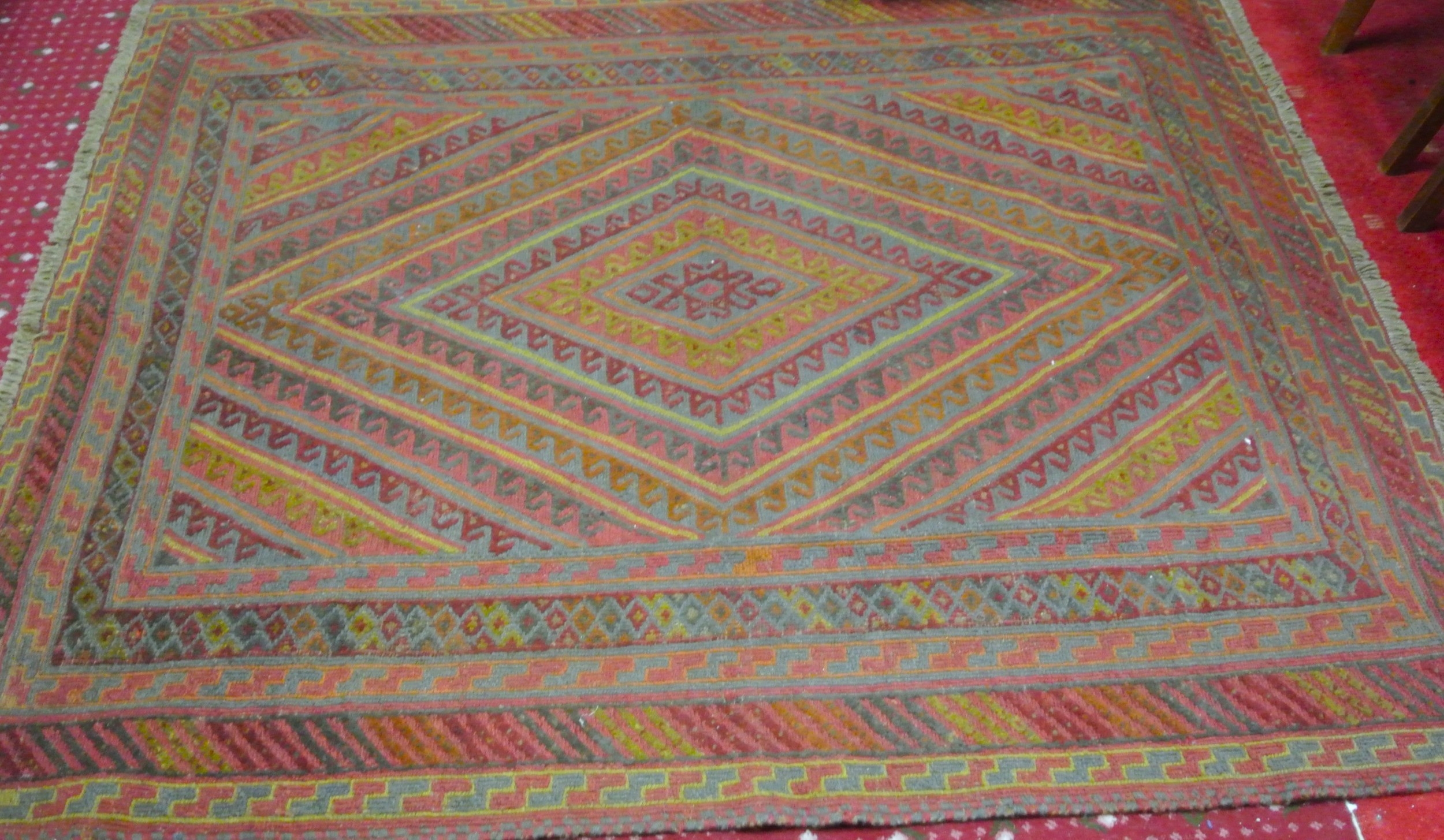 Hand woven wool full pile Afghan Moshwani tribal rug embossed, woven on wool, 188x152cm