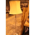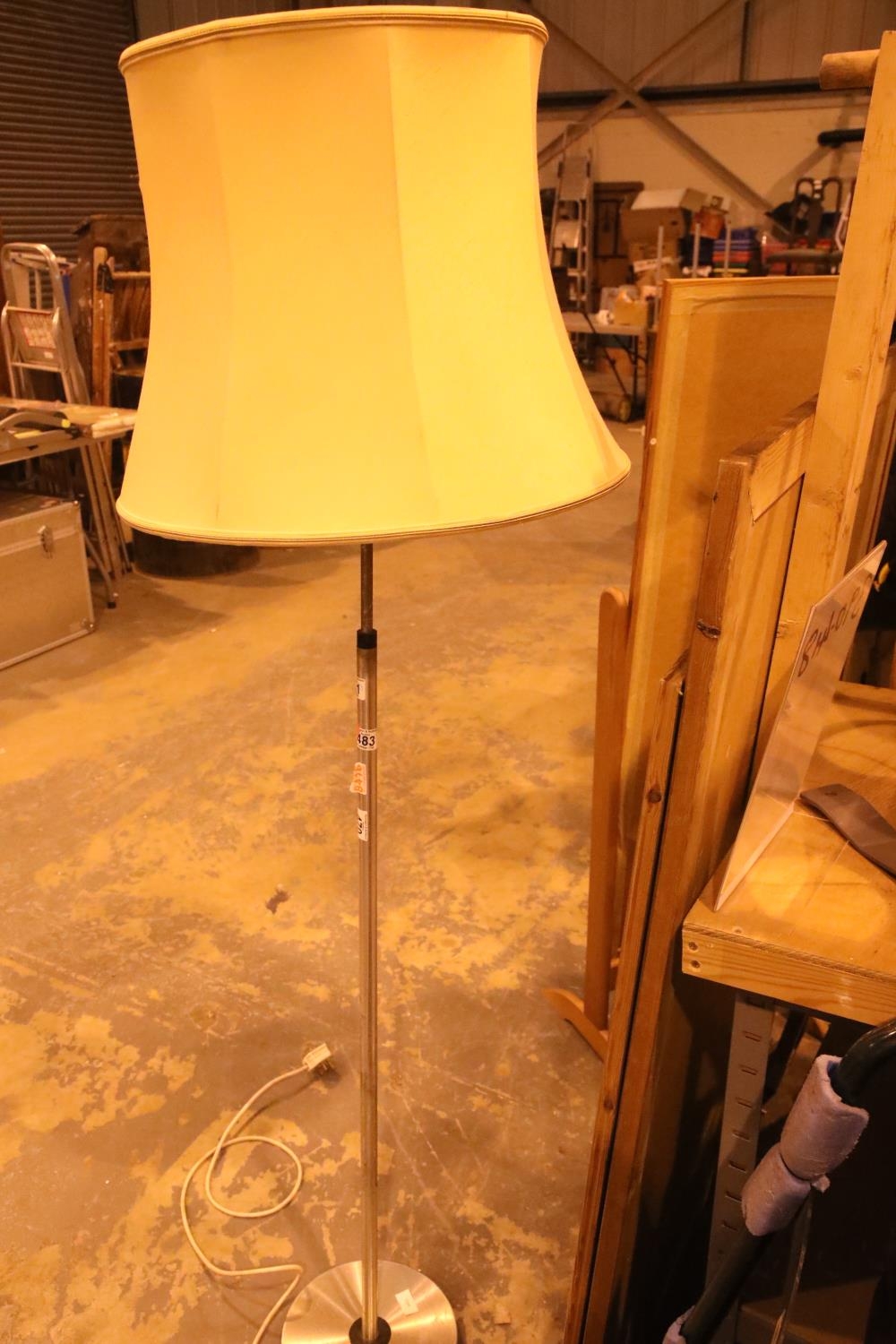 Stainless steel floor lamp with large cream shade. Not available for in-house P&P