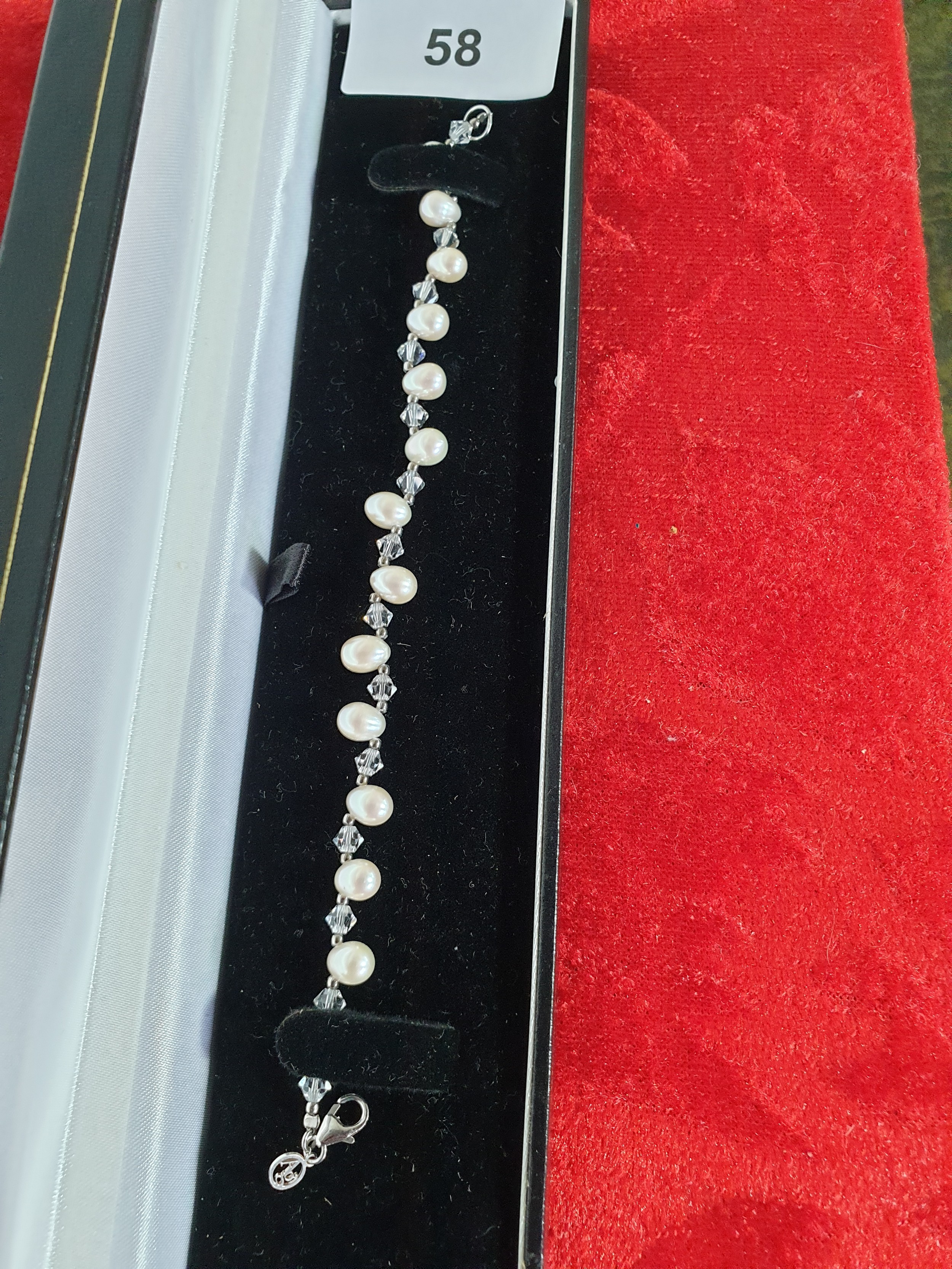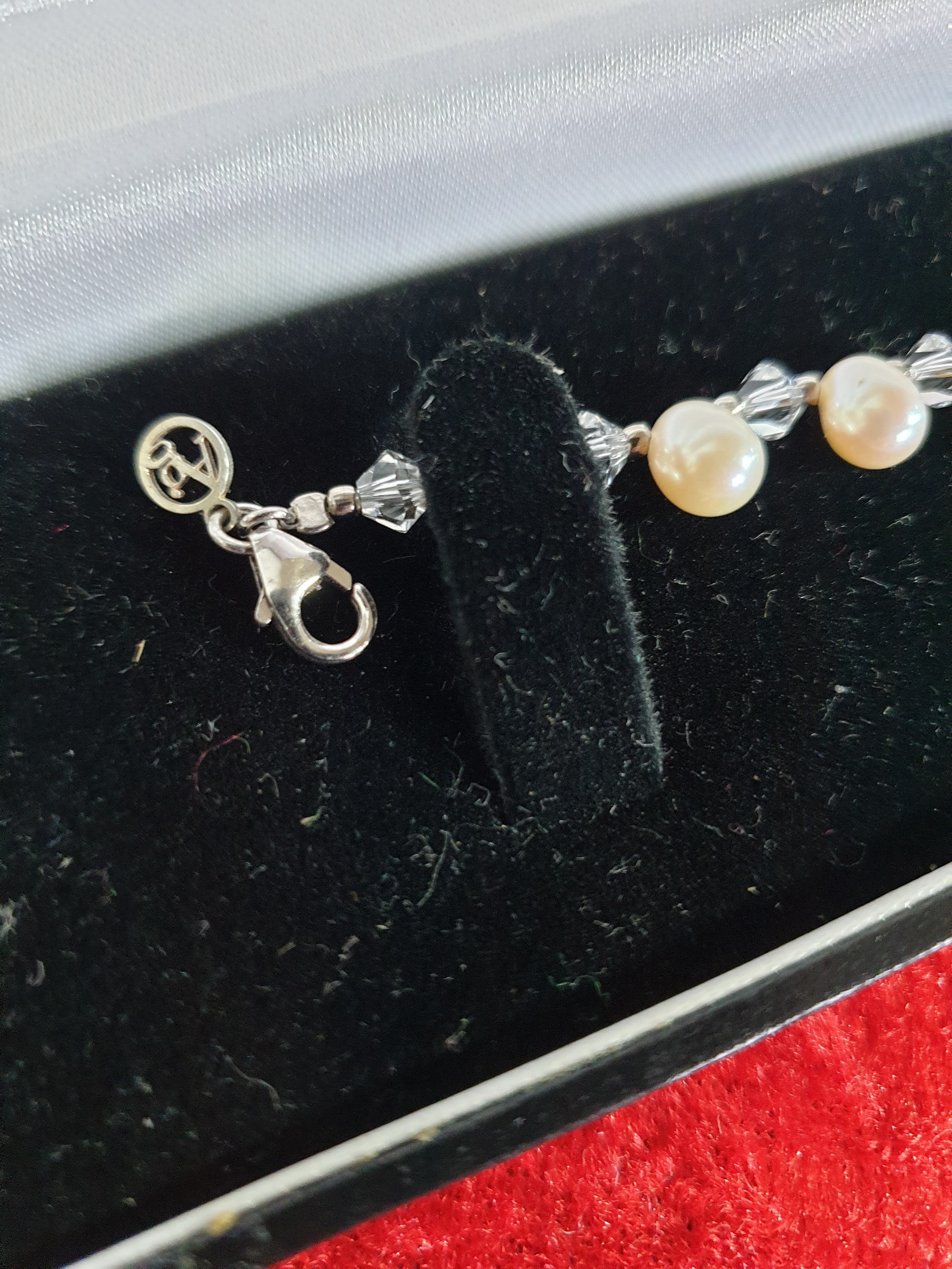 Beautiful Silver Pearl And Light Blue Stones Bracelet