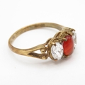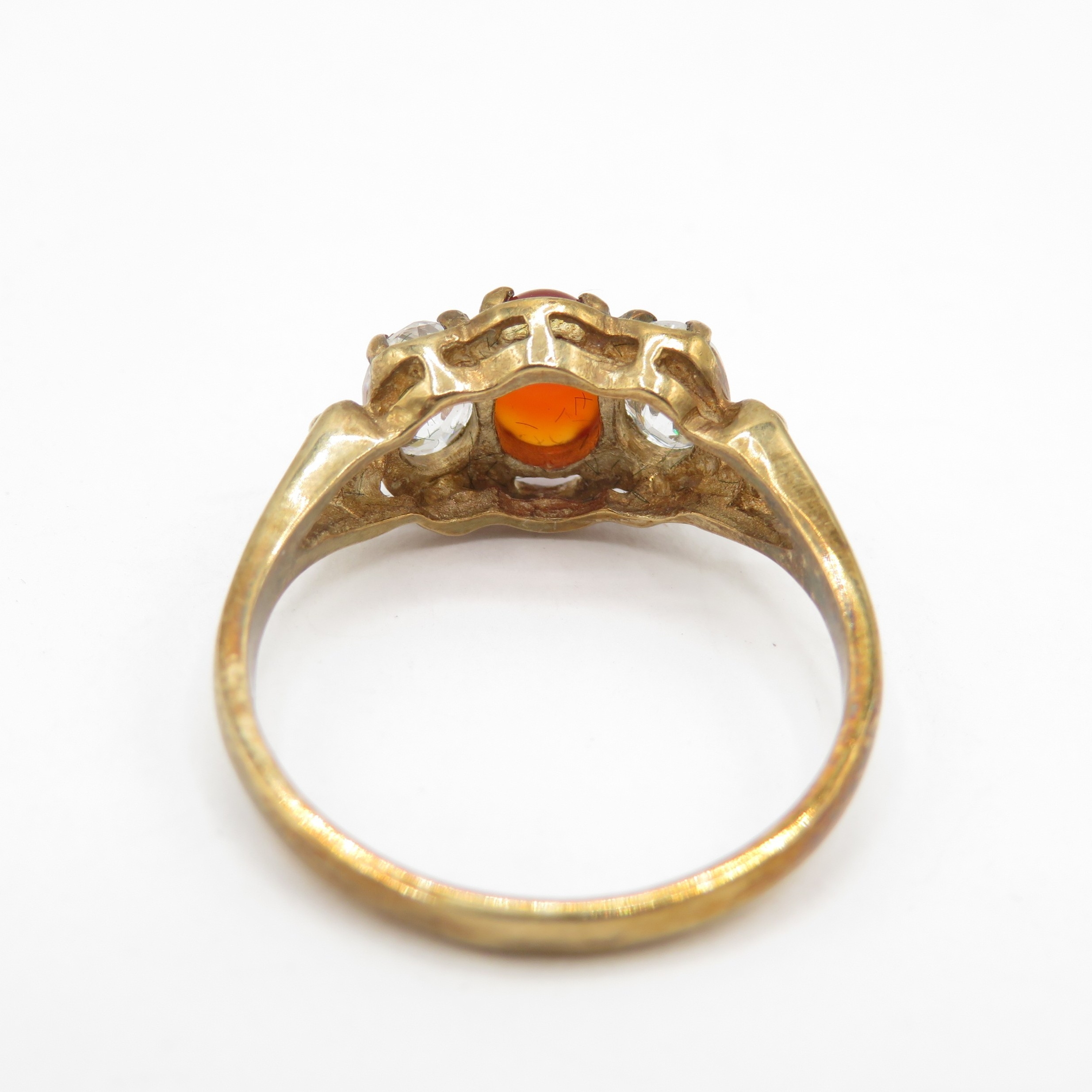 9ct gold carnelian cabochon and white gemstone ring (2.8g) size O 1/2