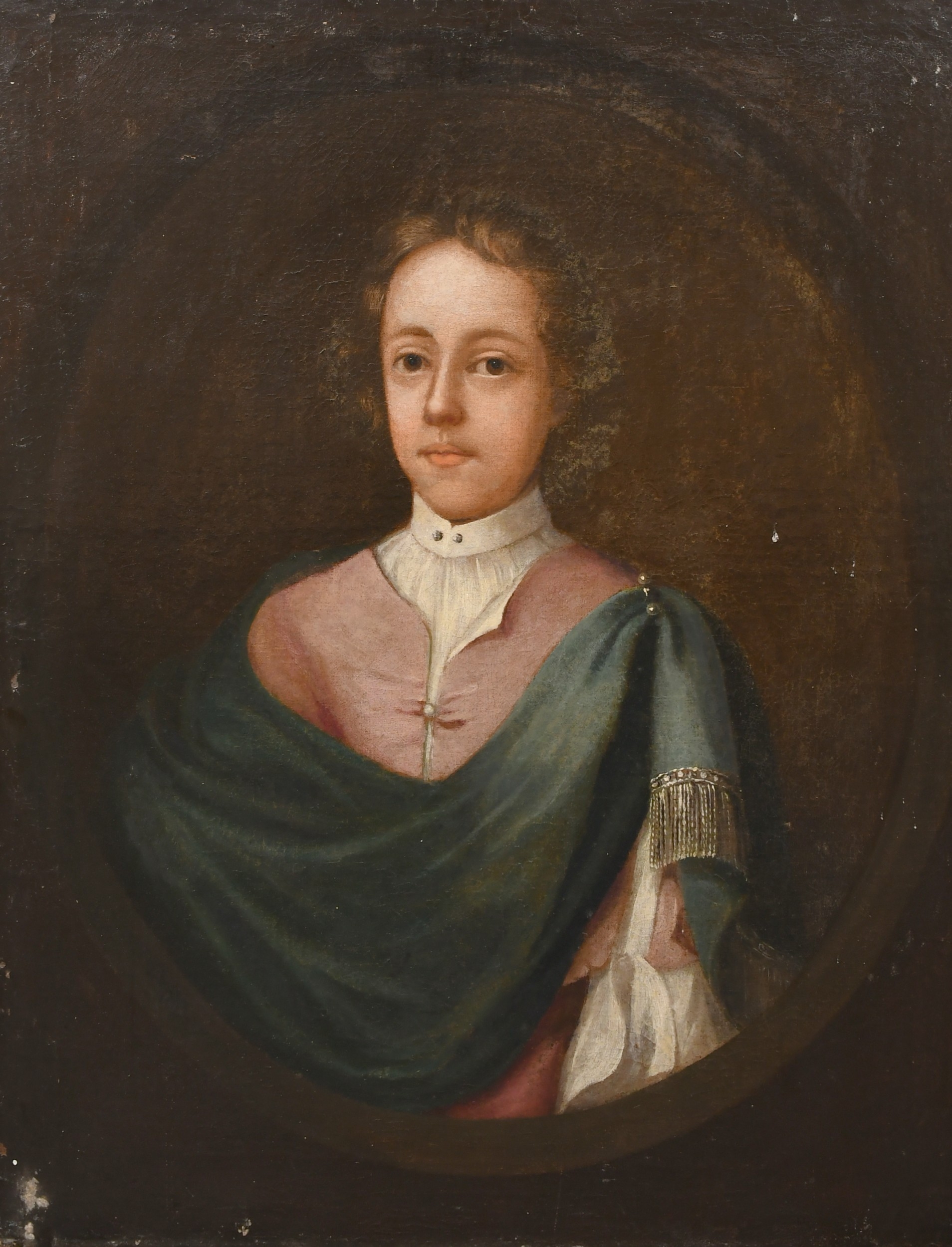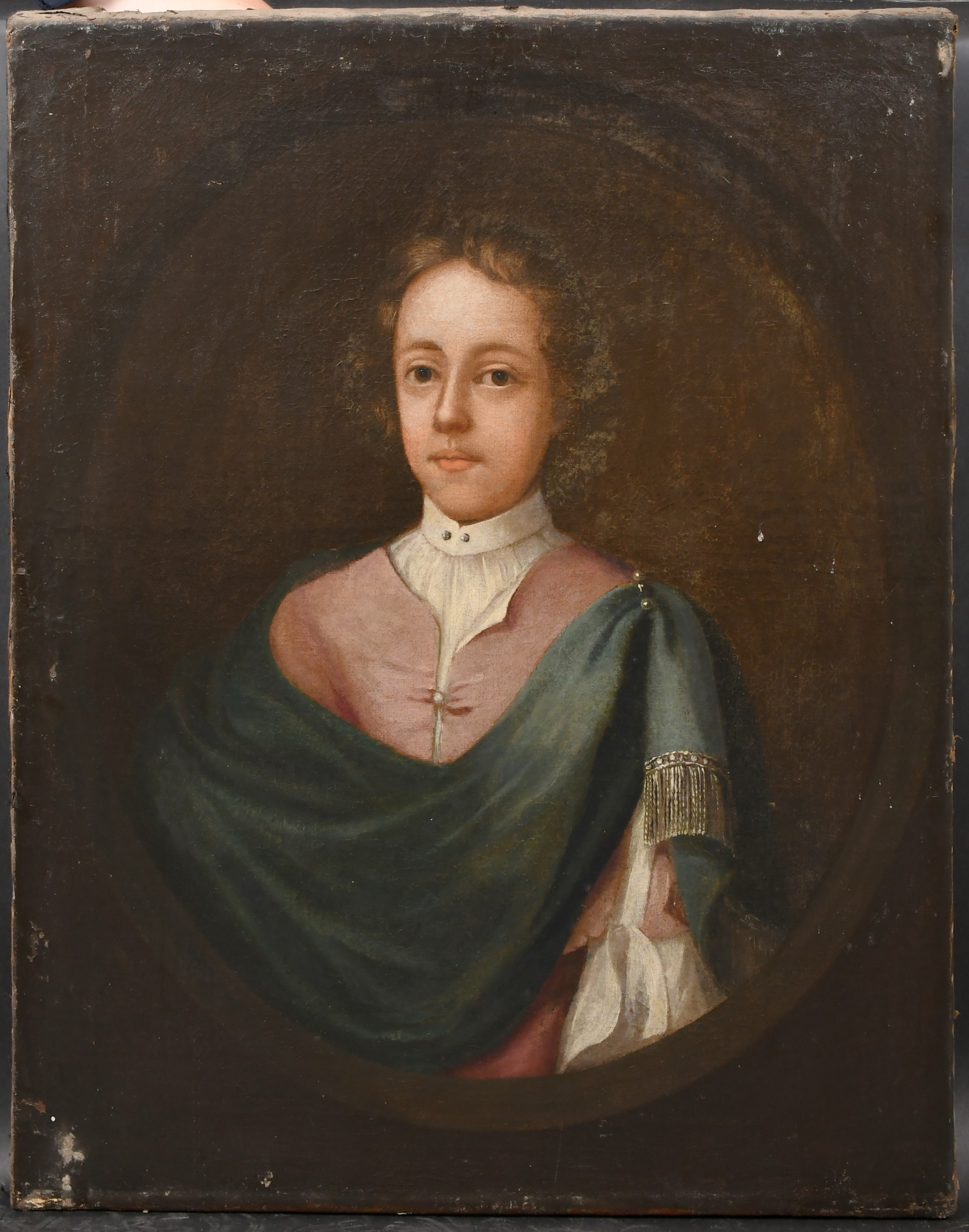 18th Century English School. Portrait of a Young Man, Oil on canvas, Painted oval, unframed 30" x 24.75" (76.2 x 68.8cm)