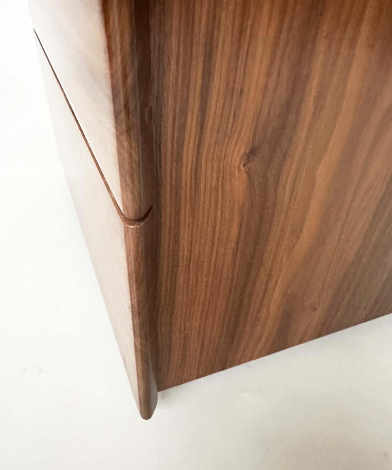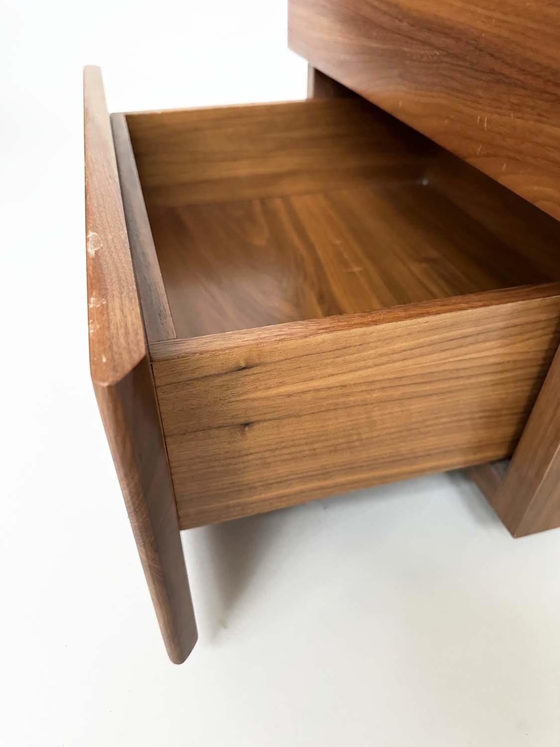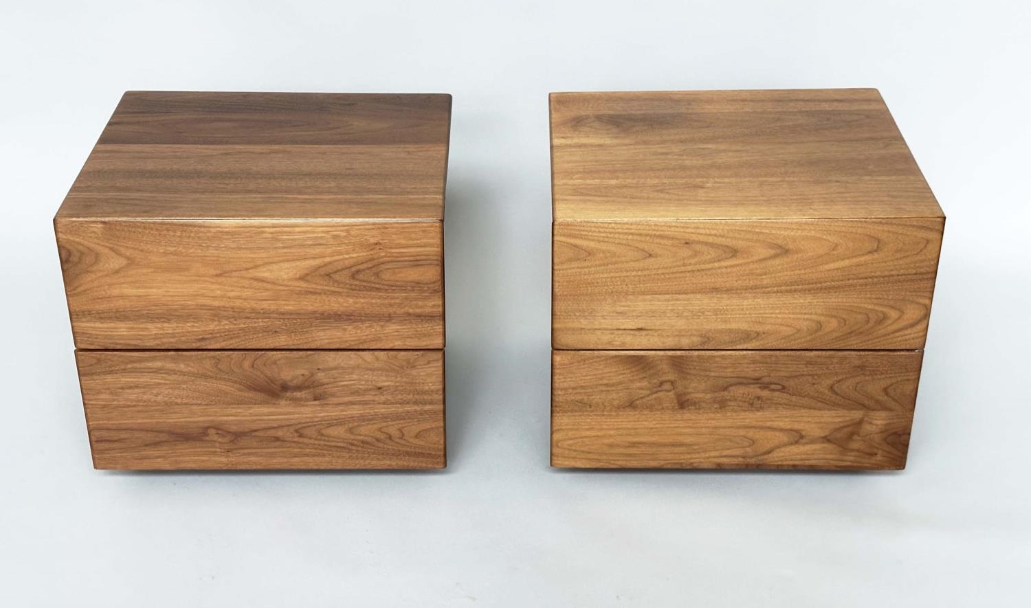 CORSINI BEDSIDE CHESTS BY ALEXANDER MILES, handmade figured walnut each with two drawers, 50cm x 43cm x 42cm H. (2)