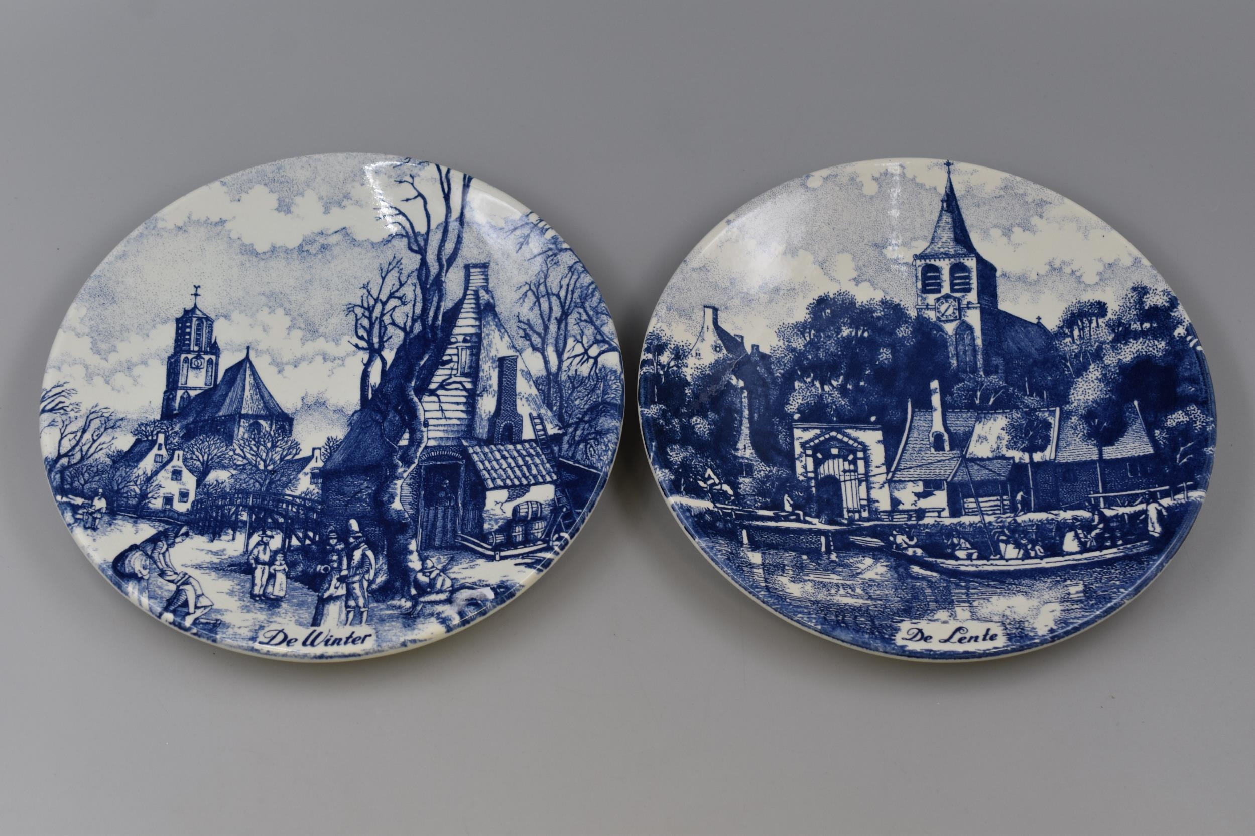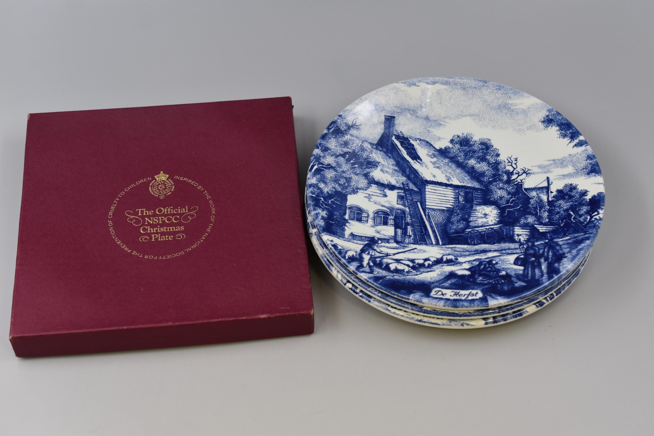 Five plates to include three Origineel Blauw Delfls and two Royal Worcester with certification of authenticity
