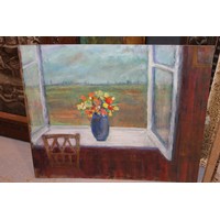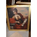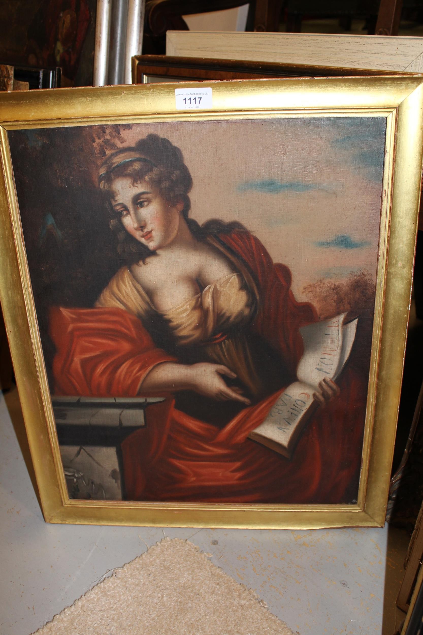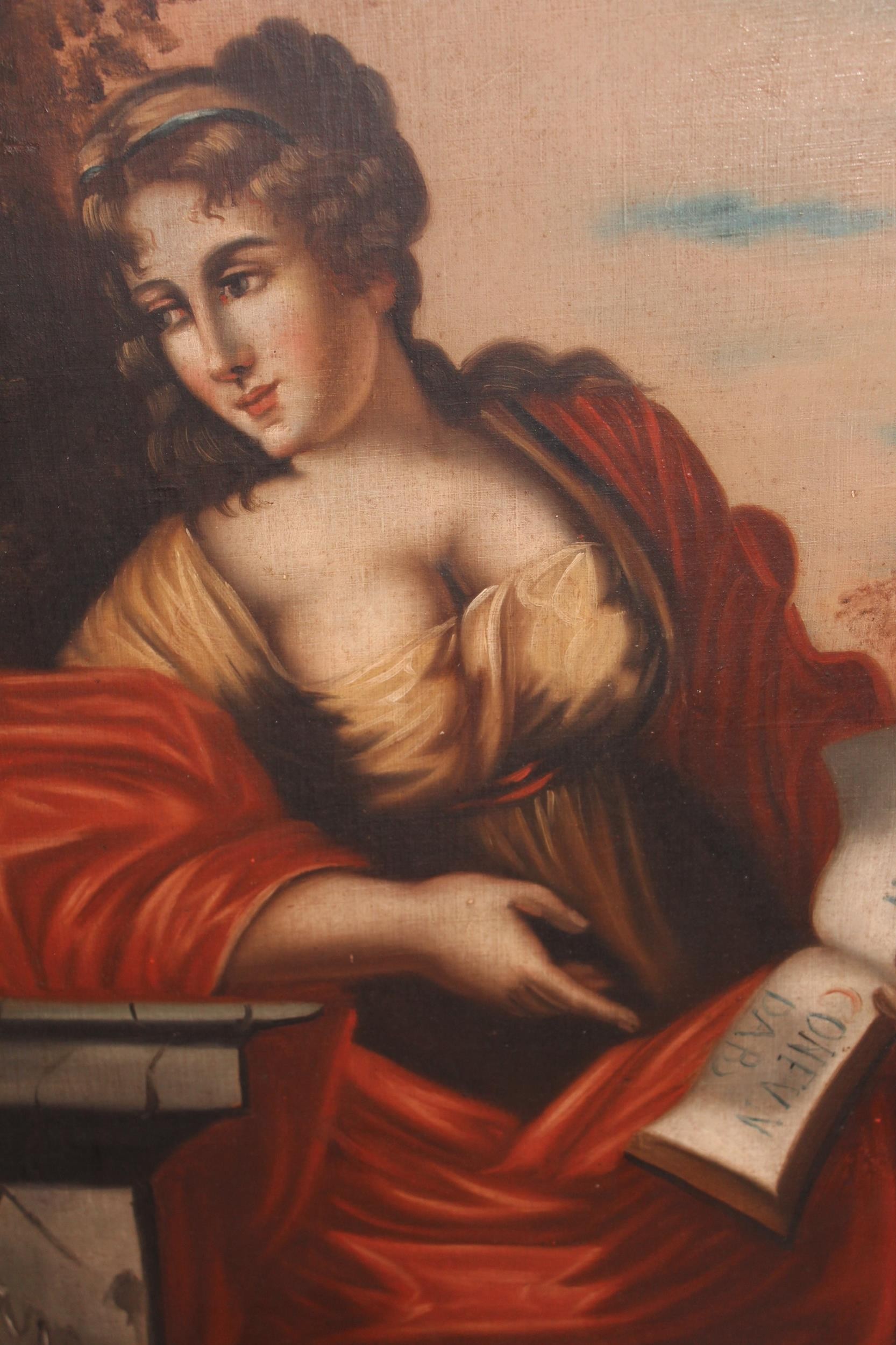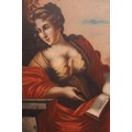 Antique oil on canvas, portrait of a classical lady holding a book, 20ins x 16ins