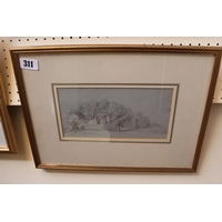 William Henry Pyne (1769-1824); Watercolour of a Road through Village. 27 x 19cm. With Receipt from Park Galleries