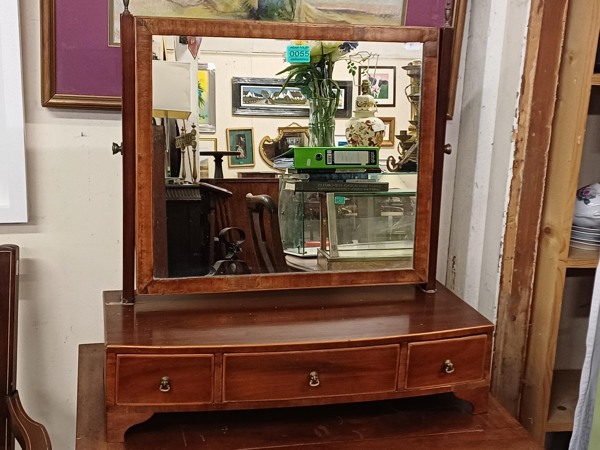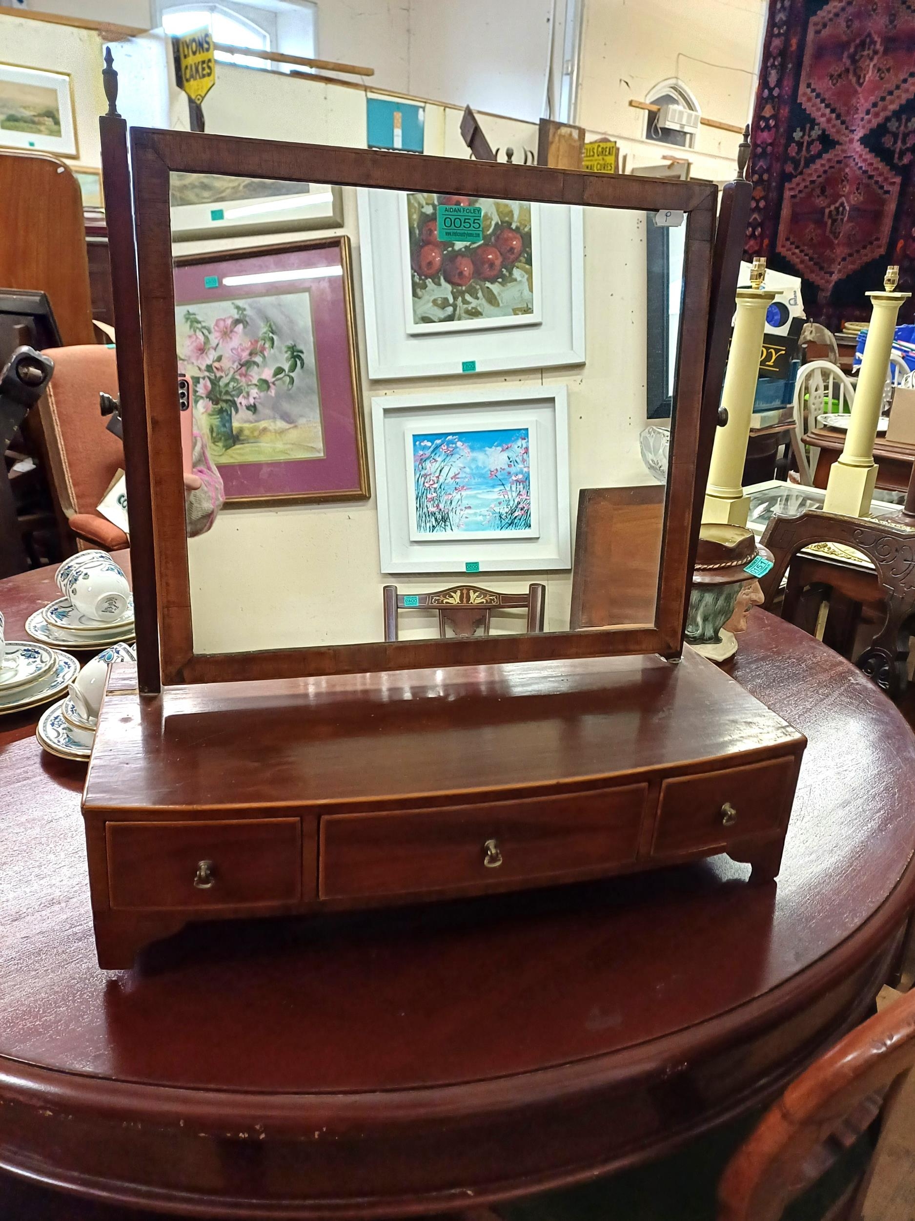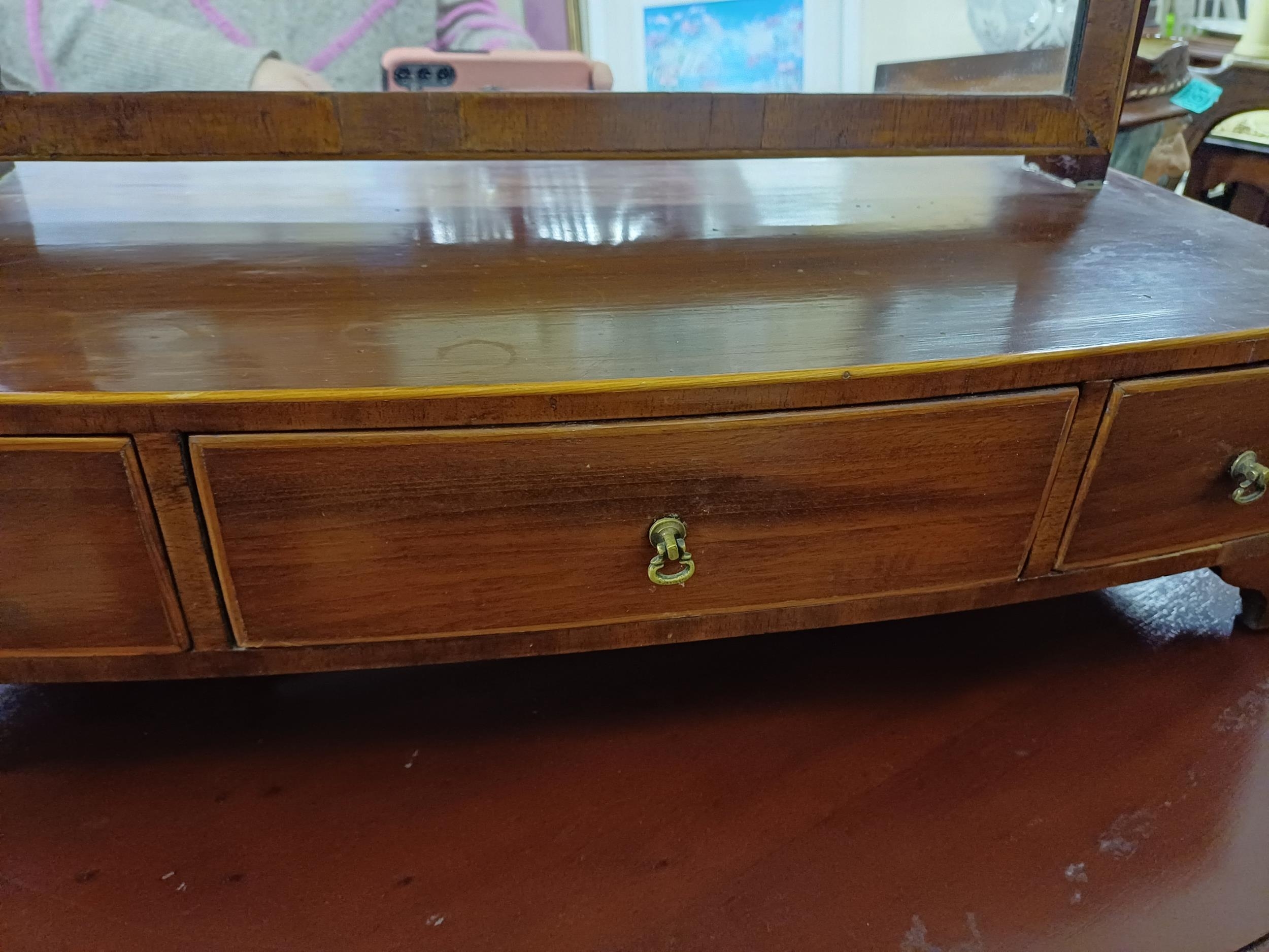 19th Century Mahogany Toilet Mirror with Boxwood String and 3 Drawer Platform Base