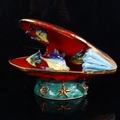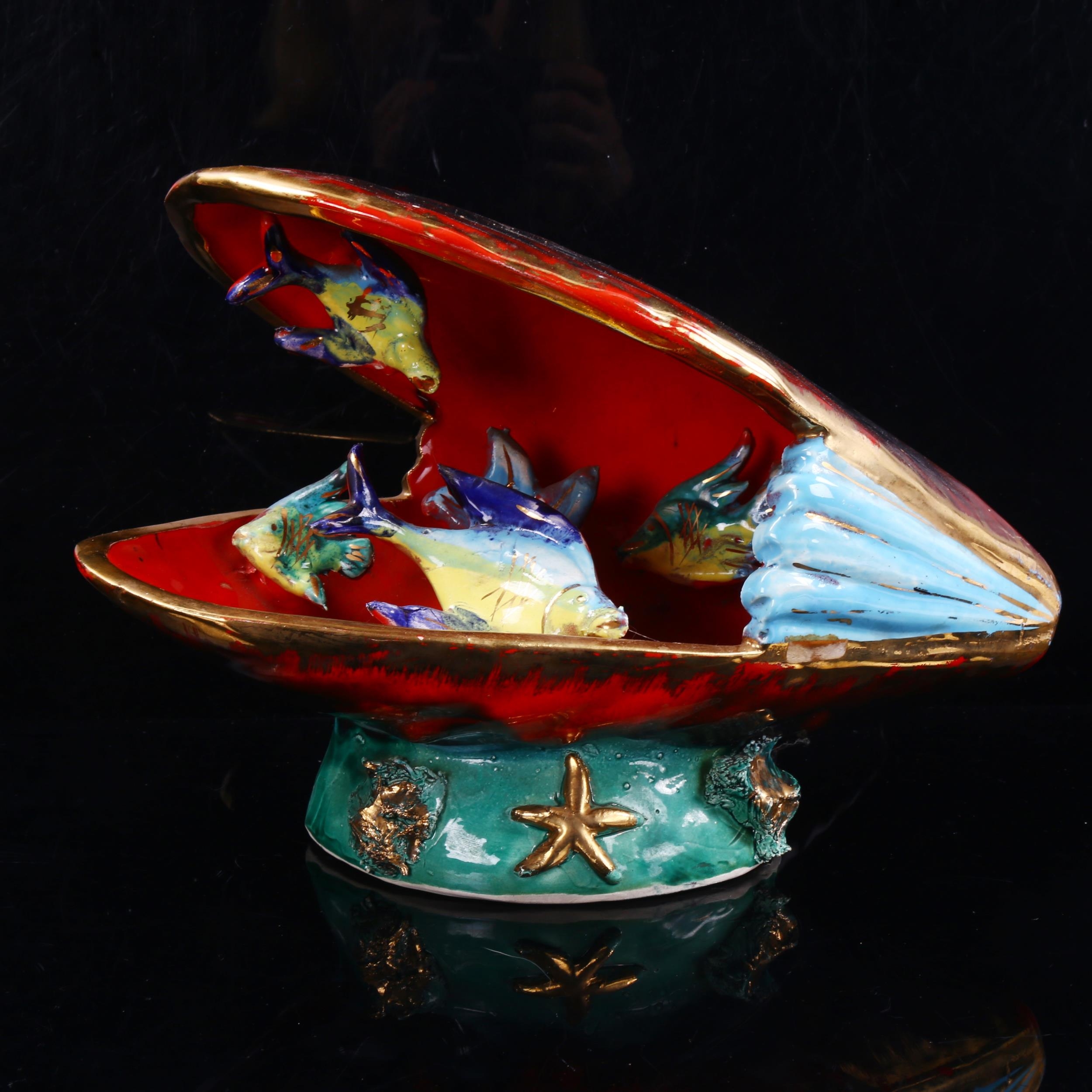 A Vallauris Pottery tropical fish and shell design lamp base, length 27cm