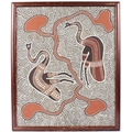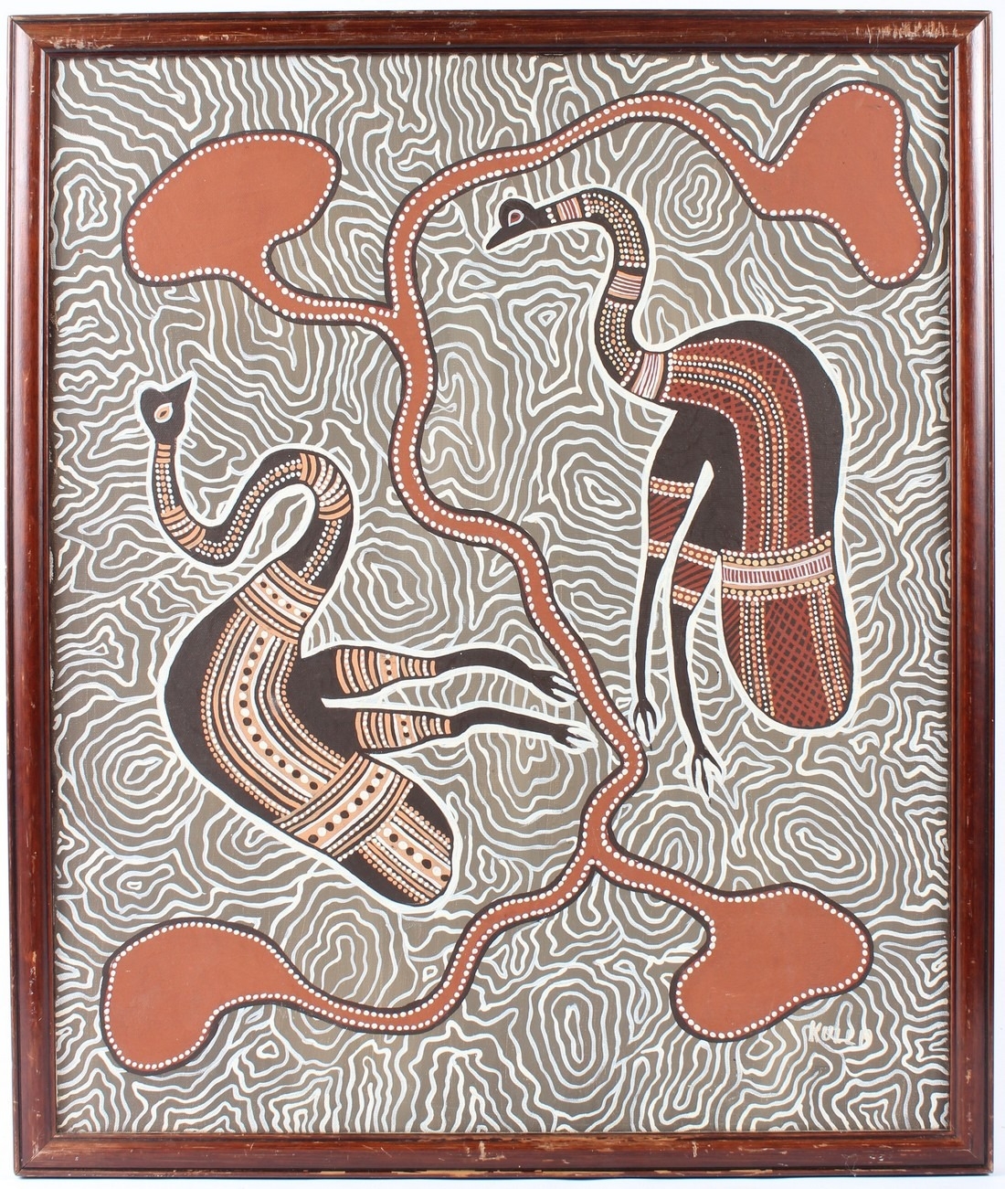 KULLA (AUSTRALIAN ABORIGINAL SCHOOL) Two birds oil on canvas signed 60 x 50cm