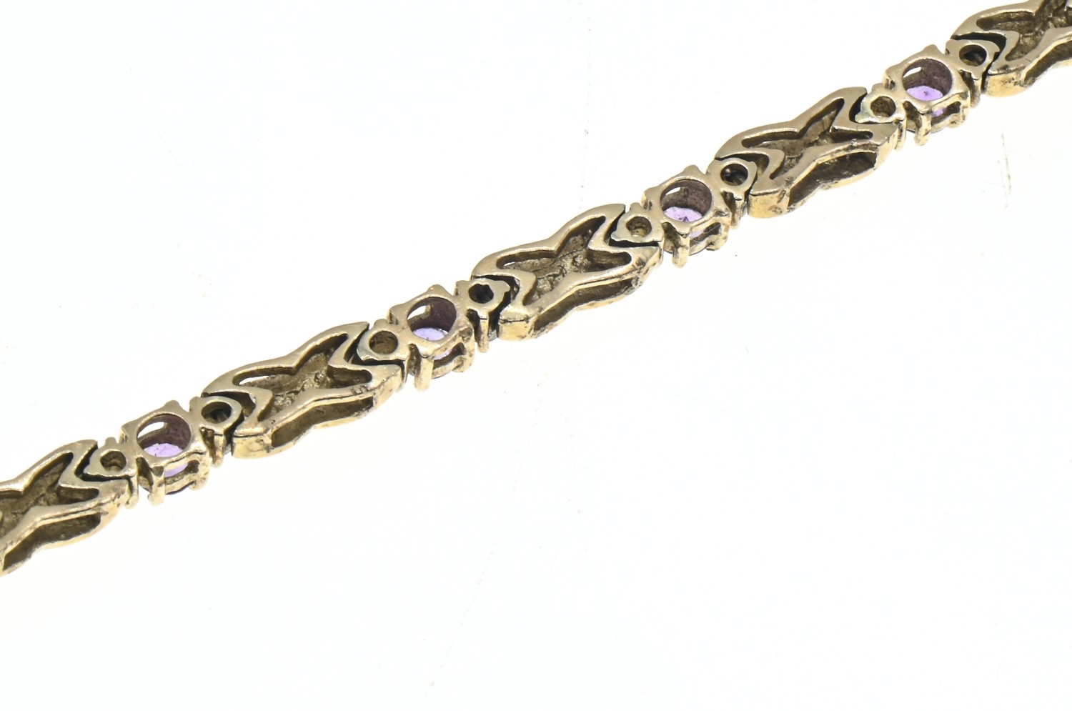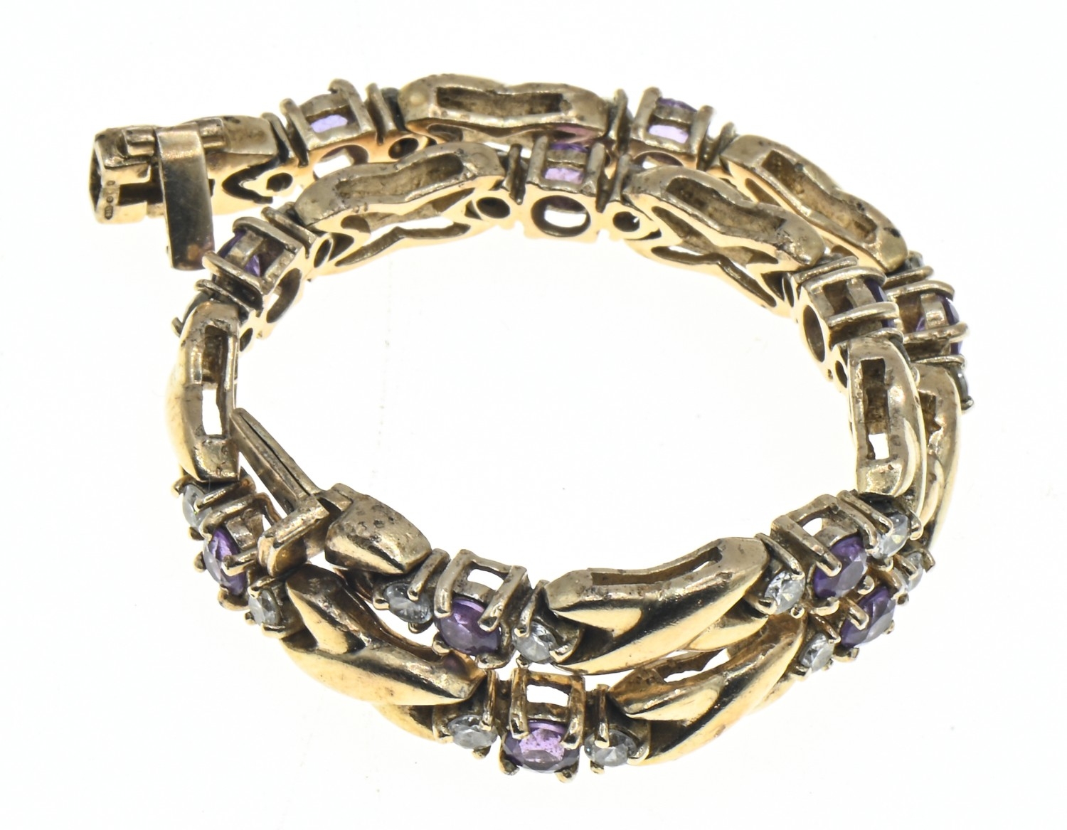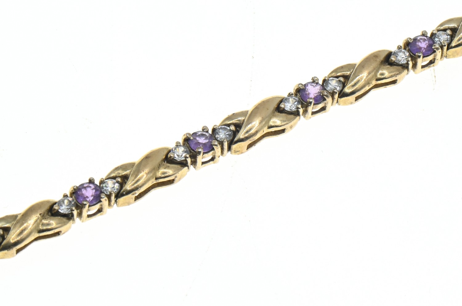 9ct gold, amethyst and white stone bracelet, hallmarked, length 195mm, gross weight 16.15 grams
