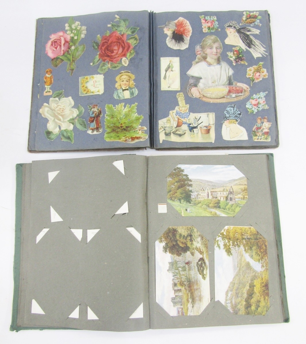 Ephemera and other collectables to include an early 20th century scrap album, postcard album including scenes of topographical interest such as Cox Cave in Cheddar Gorge and many other views, various cards and other items